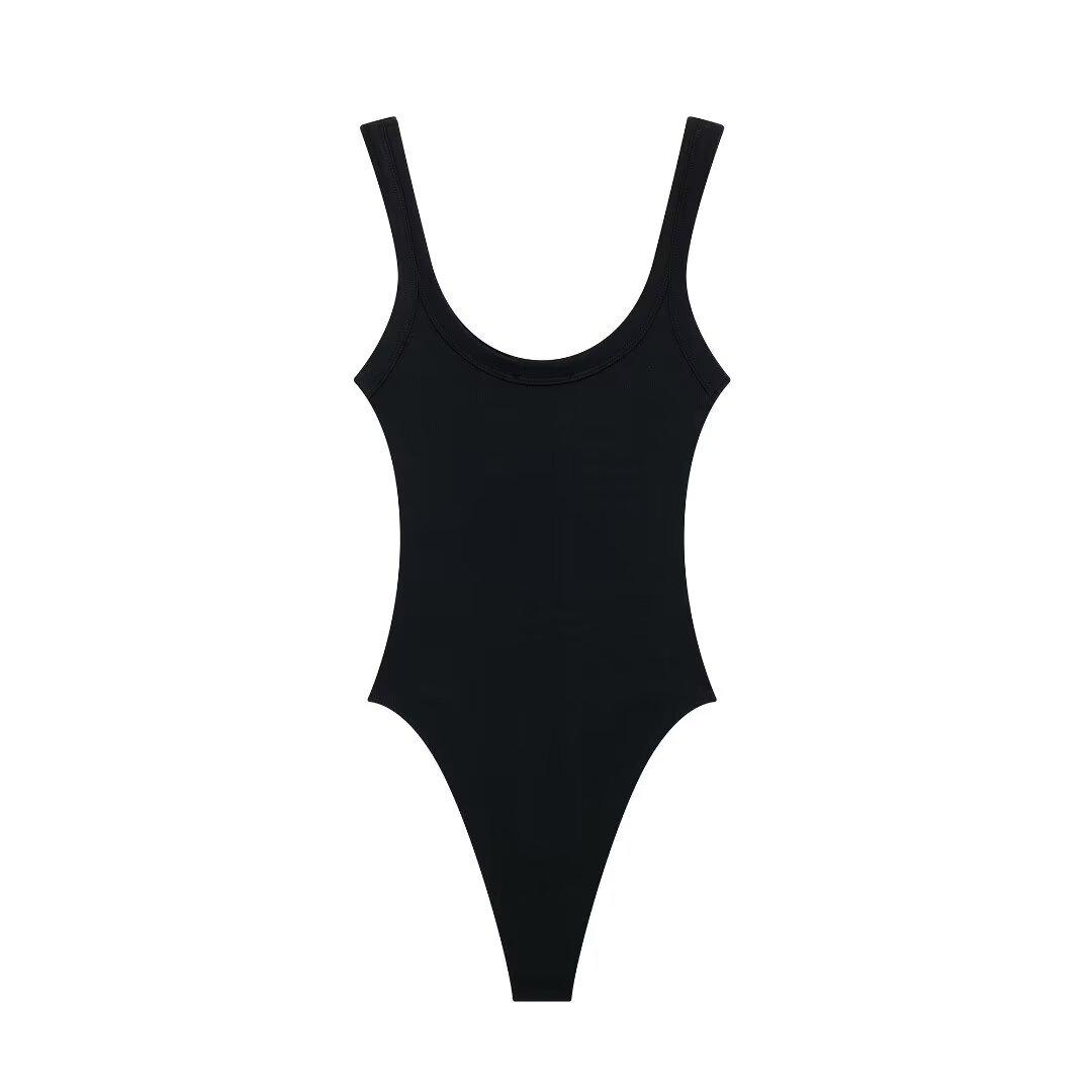 Ropa de mujer europea y americana, verano 2024, estilo Spice Girls, sexy, sin espalda, ajustada, de color liso, camisola, pantalones para mujer