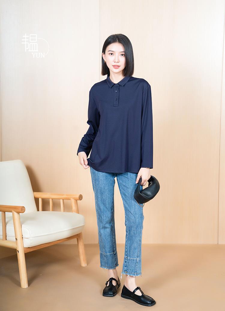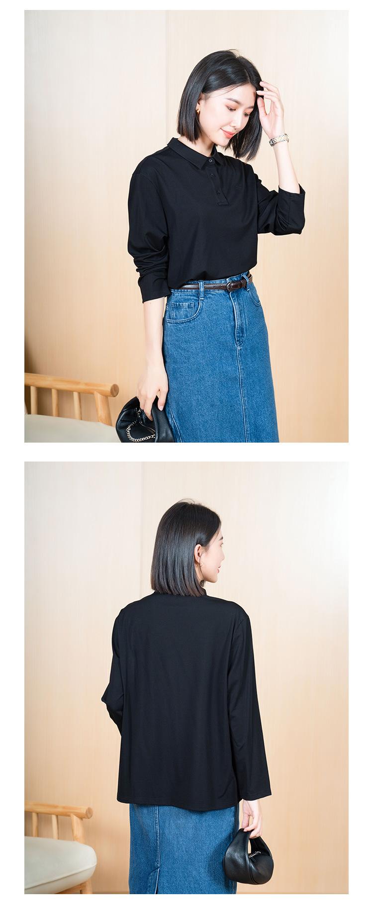 Camisa de Otoño de Manga Larga de Yun Yun con Cuello Vuelto, Nueva Camisa Holgada Casual Versátil de Estilo Coreano para Mujer