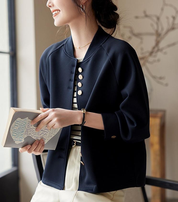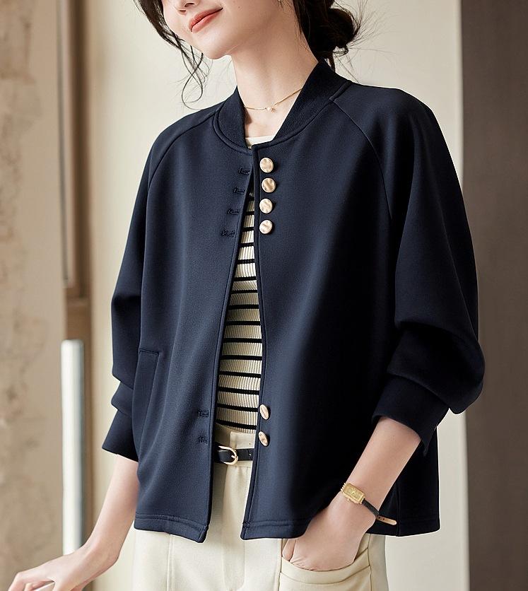 Chaqueta de béisbol de manga raglán de moda para comercio exterior para mujer, primavera, casual, temperamento simple, combina con todo, chaqueta corta, top