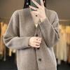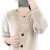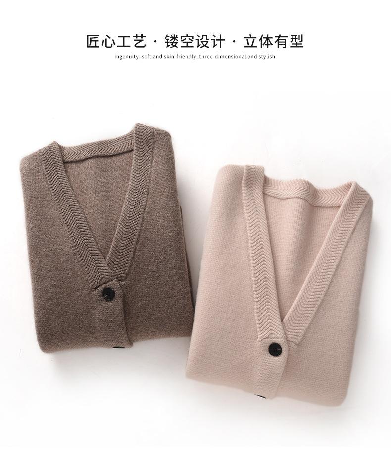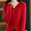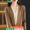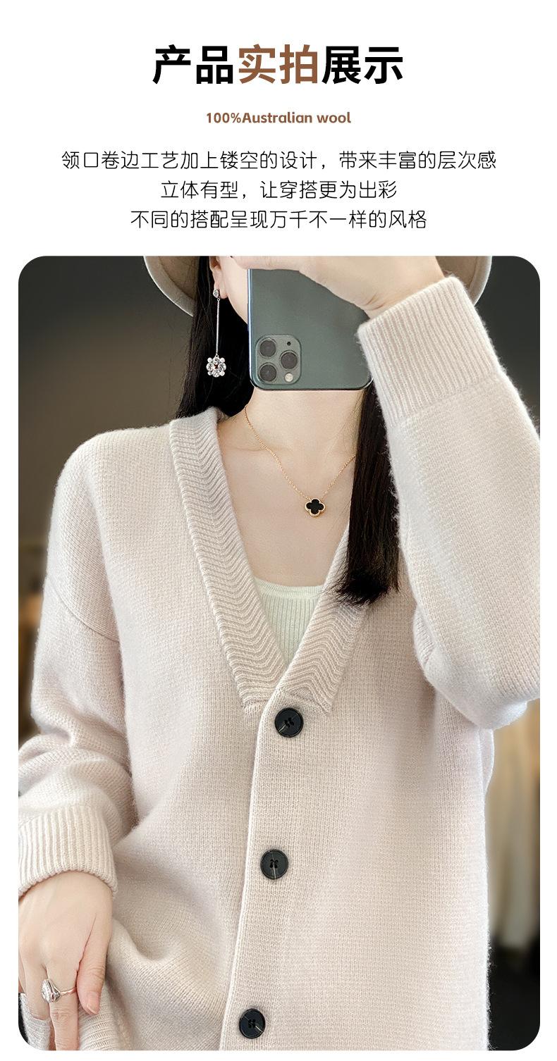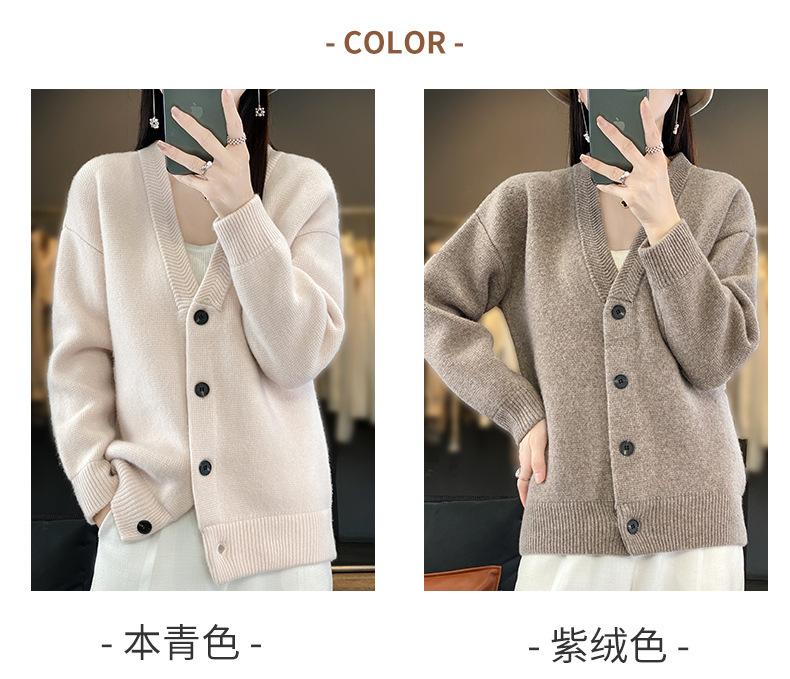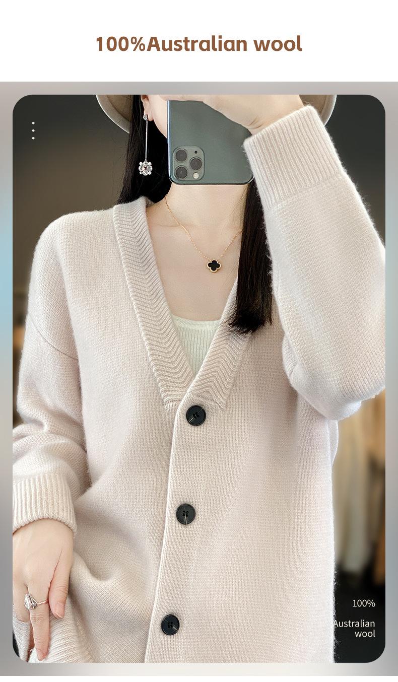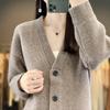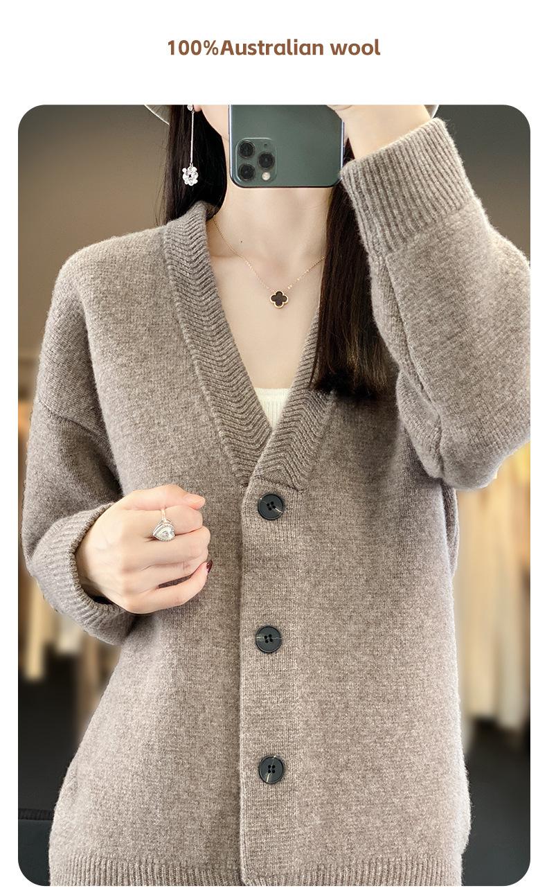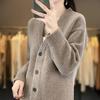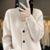Suéter de lana pura con cuello en V para mujer, chaqueta tipo cárdigan, holgado, combinable con todo, 100% lana pura, otoño e invierno.