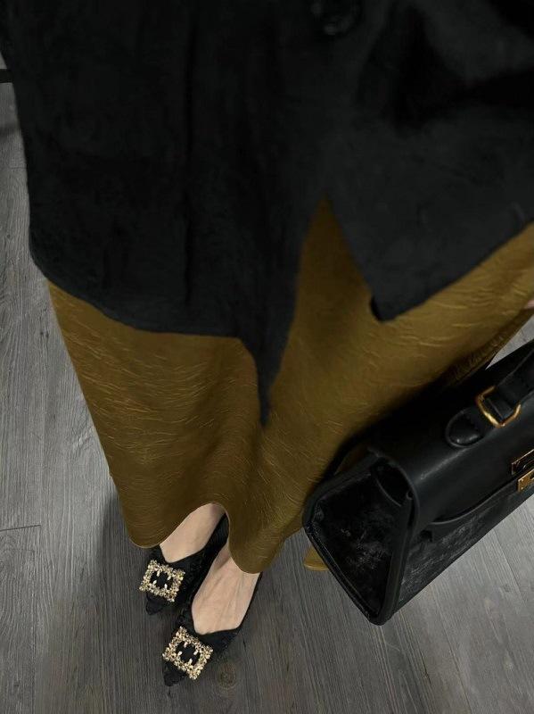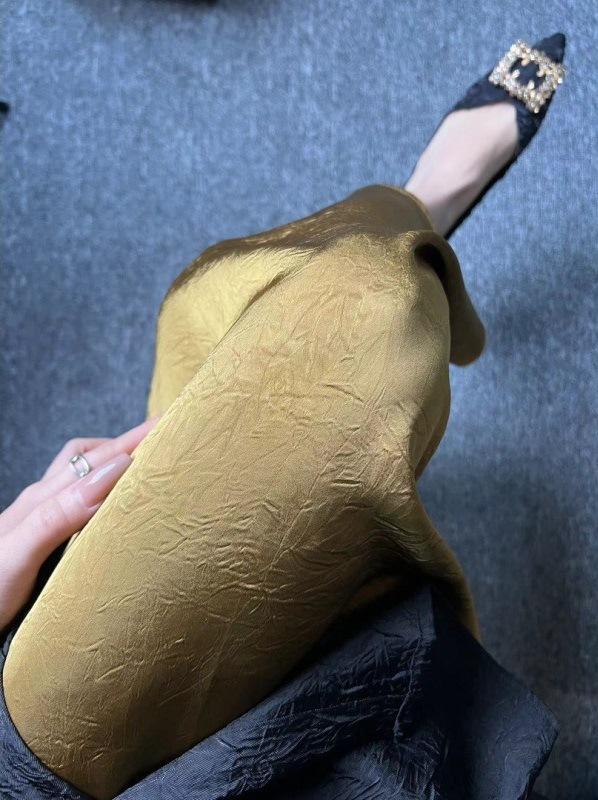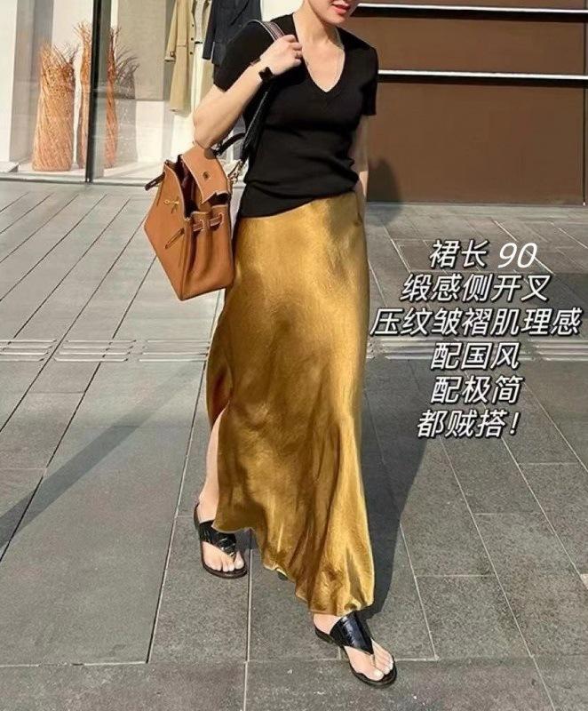 Falda de Moda de Estilo Chino Nuevo para Mujer Verano Nuevo Satén Acético Pera Ajustada Elegante Abertura Falda Larga