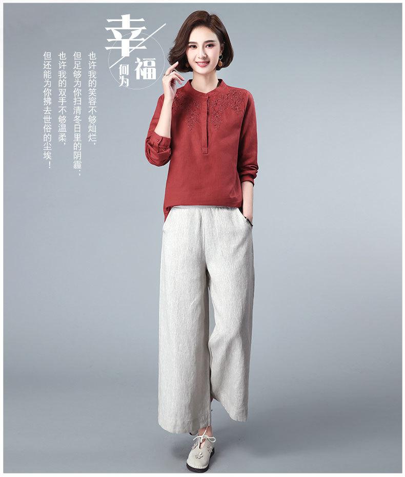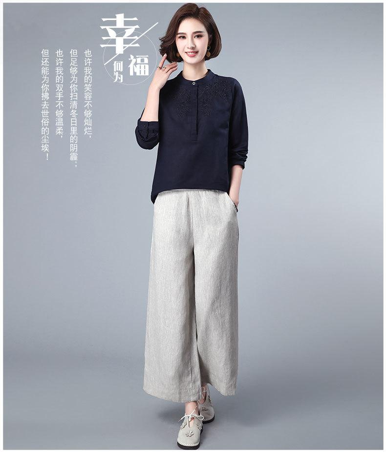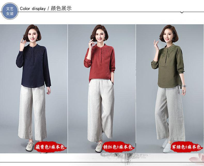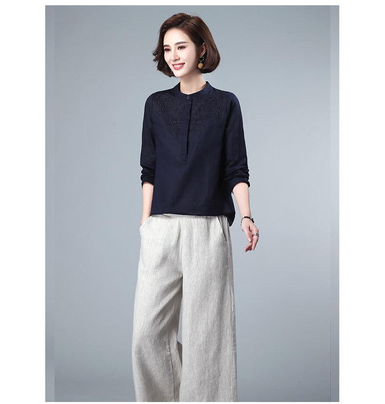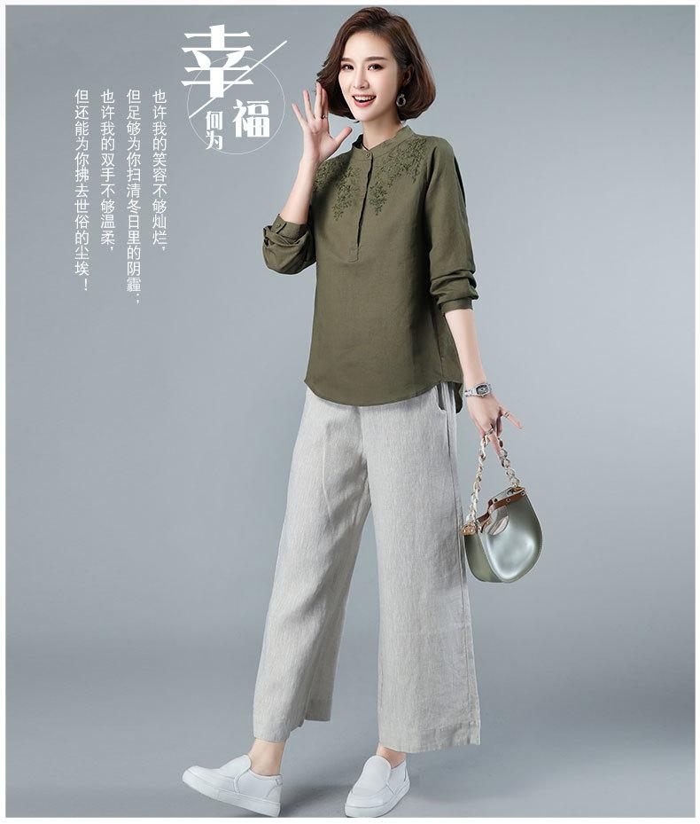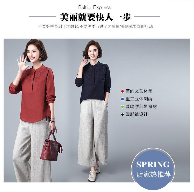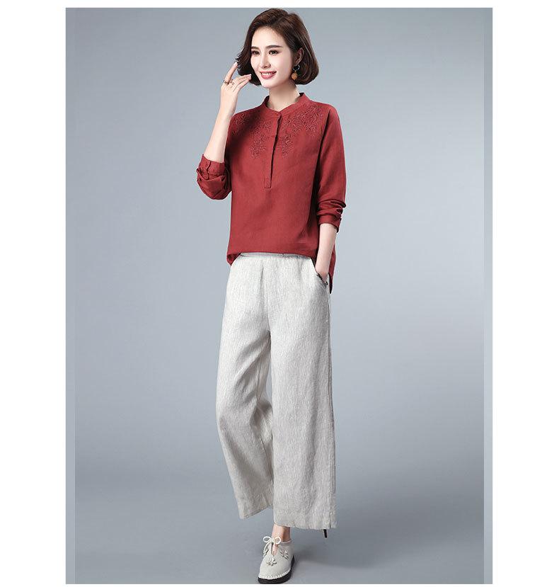 Traje de algodón y lino para mujer, nueva moda de otoño 2024, informal, antiedad, para madres de mediana edad, principios de otoño, conjunto de dos piezas de lino de alta gama