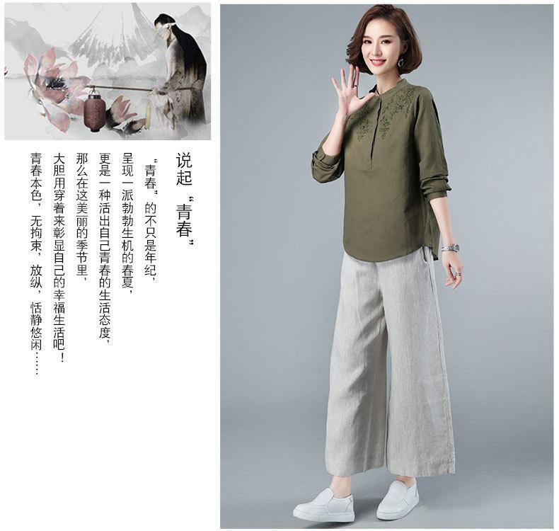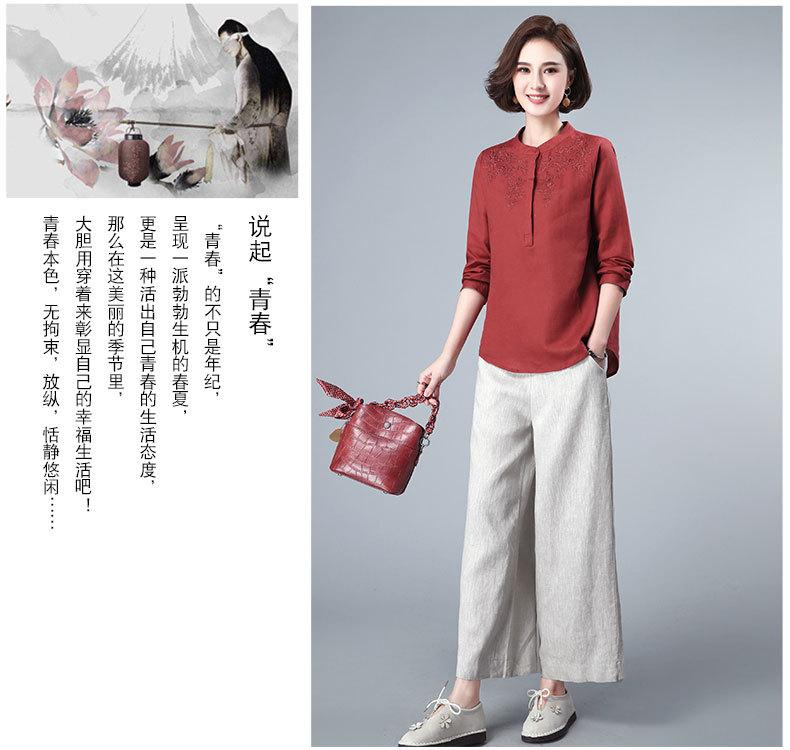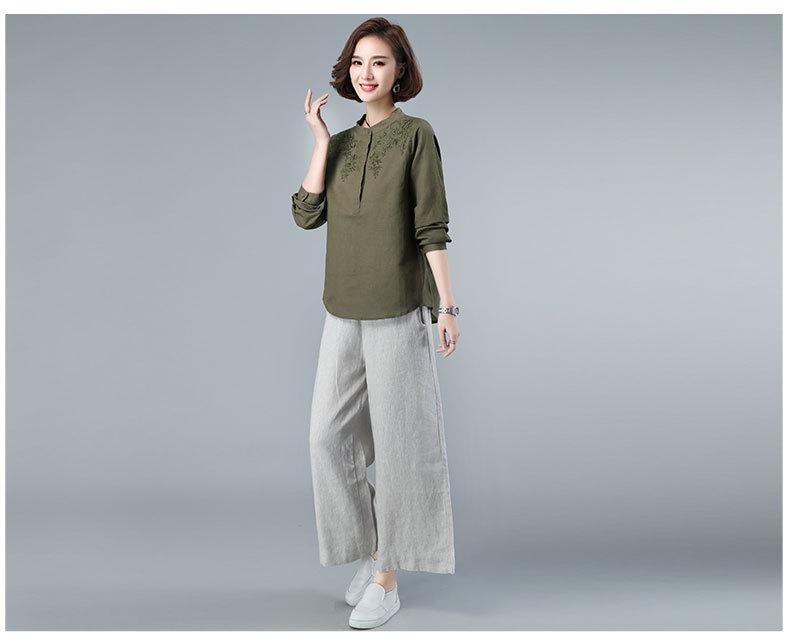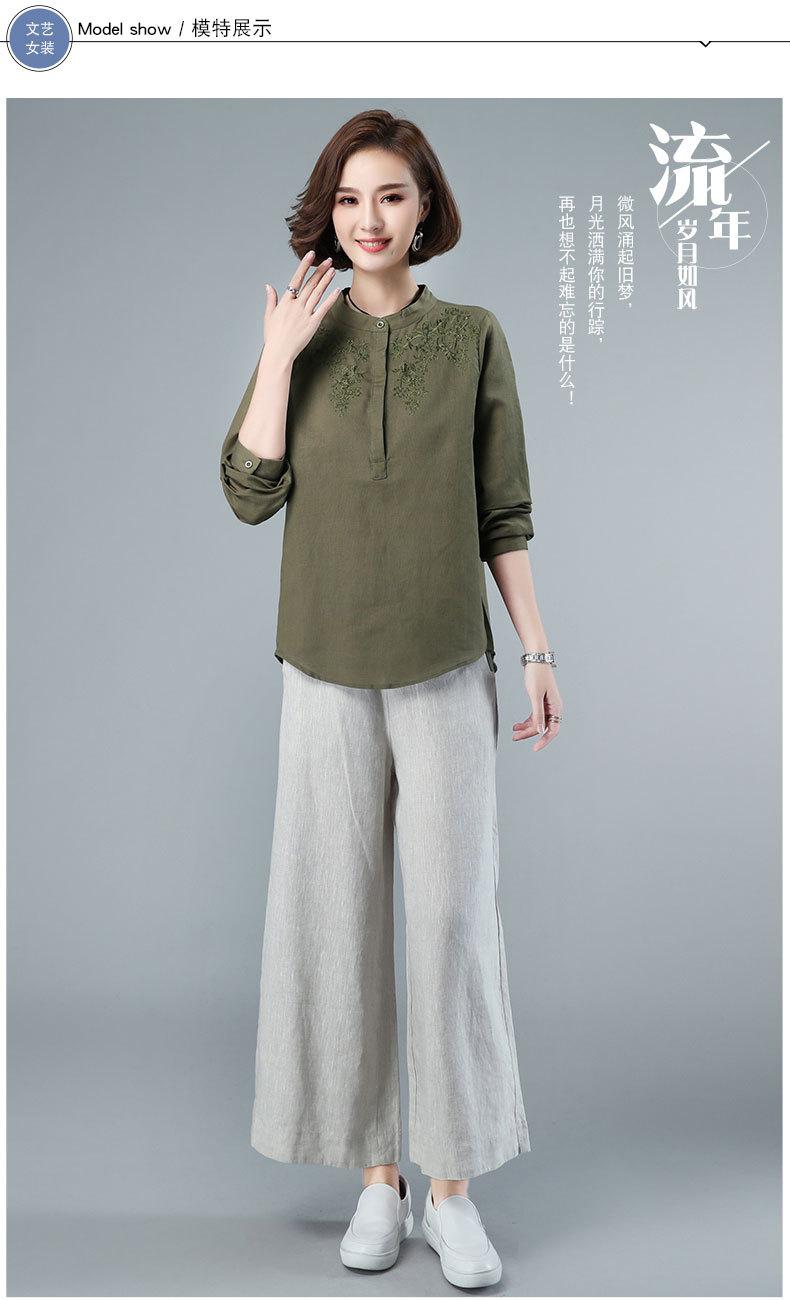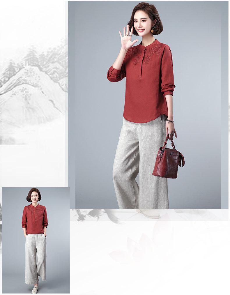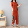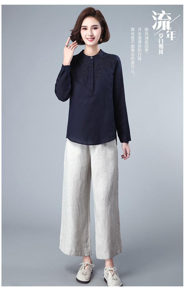 Traje de algodón y lino para mujer, nueva moda de otoño 2024, informal, antiedad, para madres de mediana edad, principios de otoño, conjunto de dos piezas de lino de alta gama