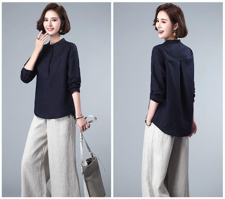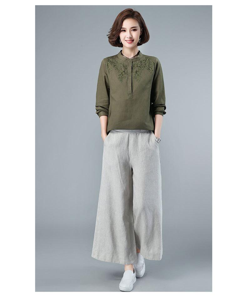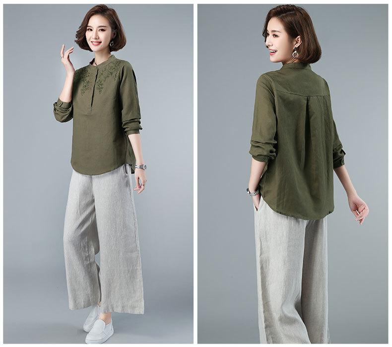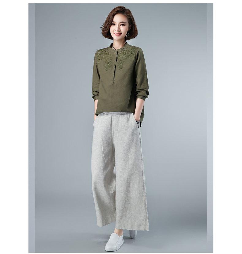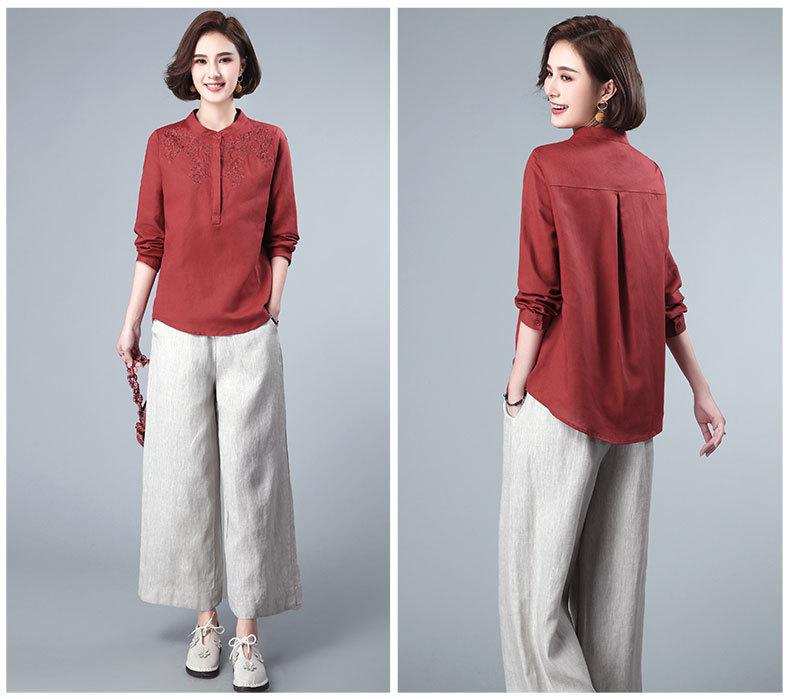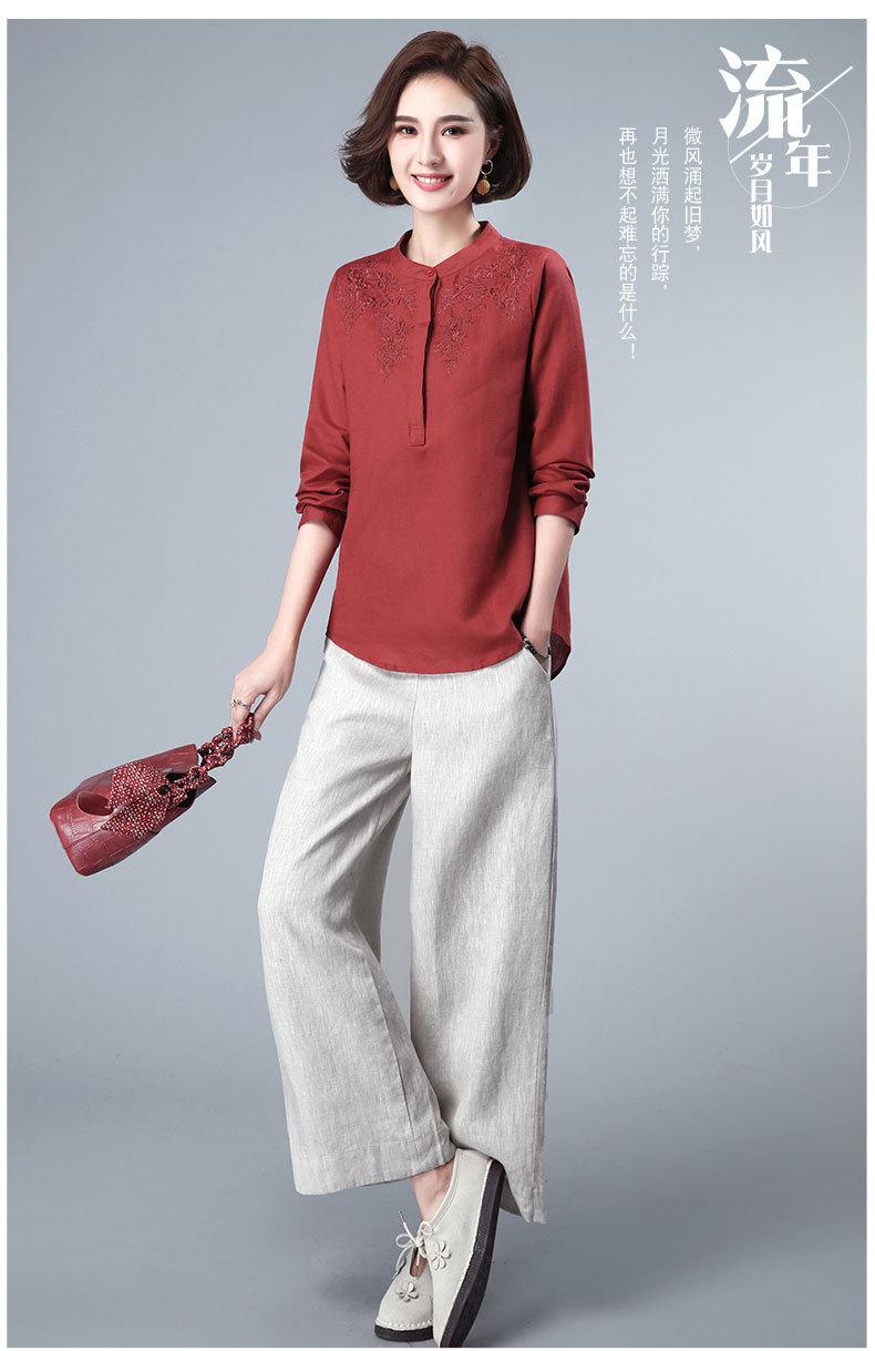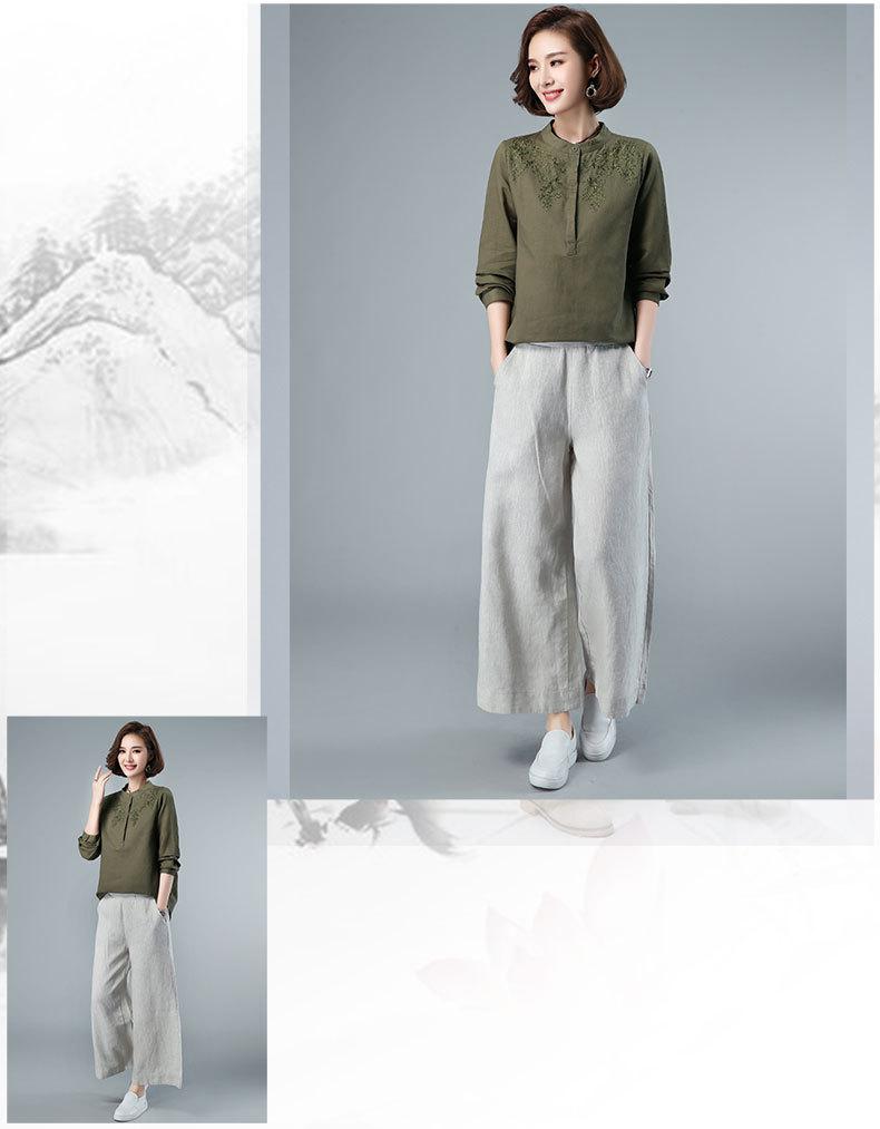 Traje de algodón y lino para mujer, nueva moda de otoño 2024, informal, antiedad, para madres de mediana edad, principios de otoño, conjunto de dos piezas de lino de alta gama