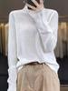 Camisa elegante de punto de lana peinada con cuello alto simulado y ribete de encaje, suéter holgado de corte entallado para mujer con mangas de hoja de loto, camisa de capa base