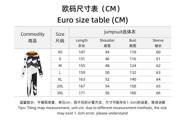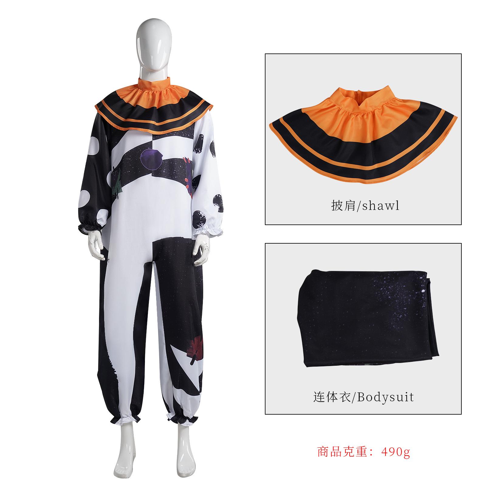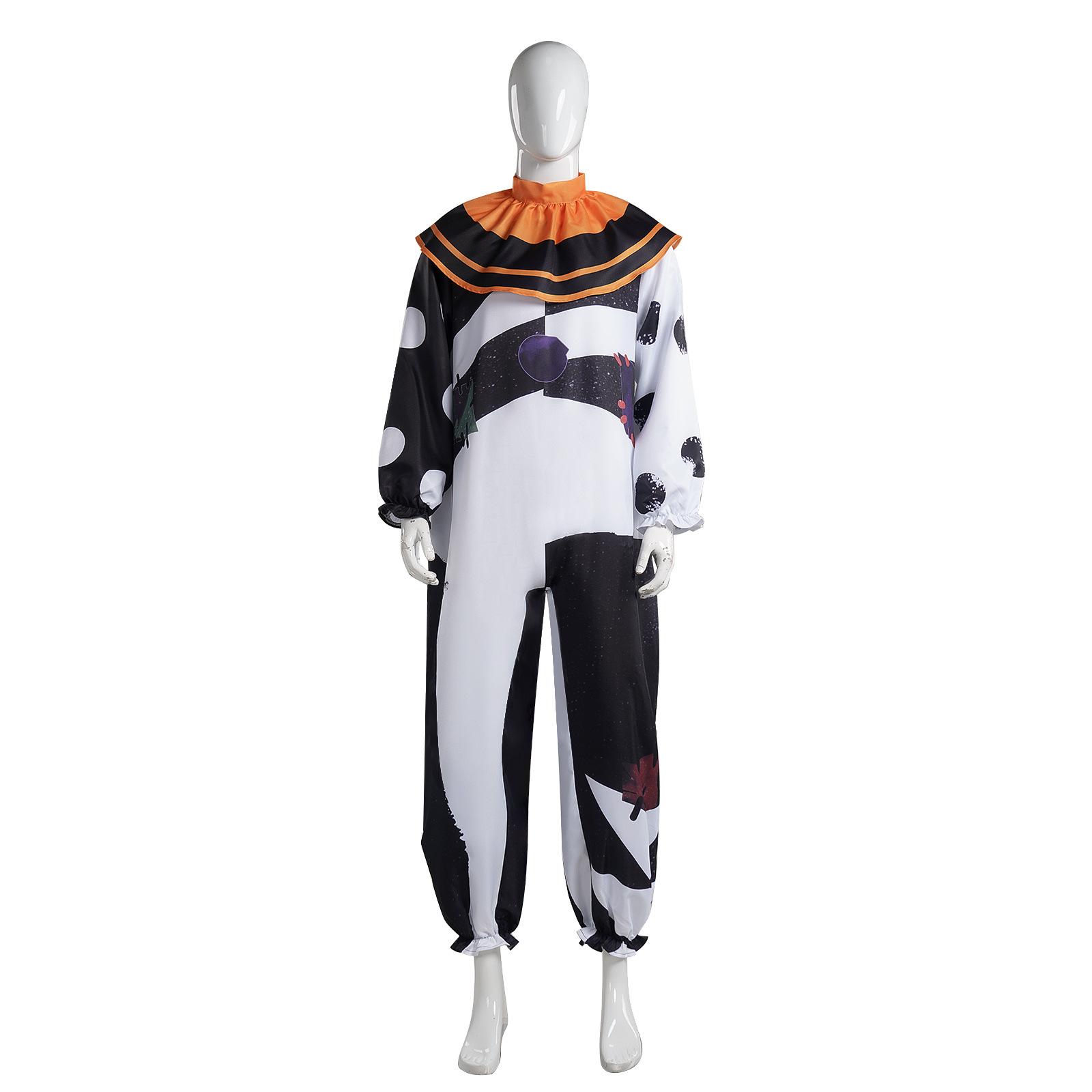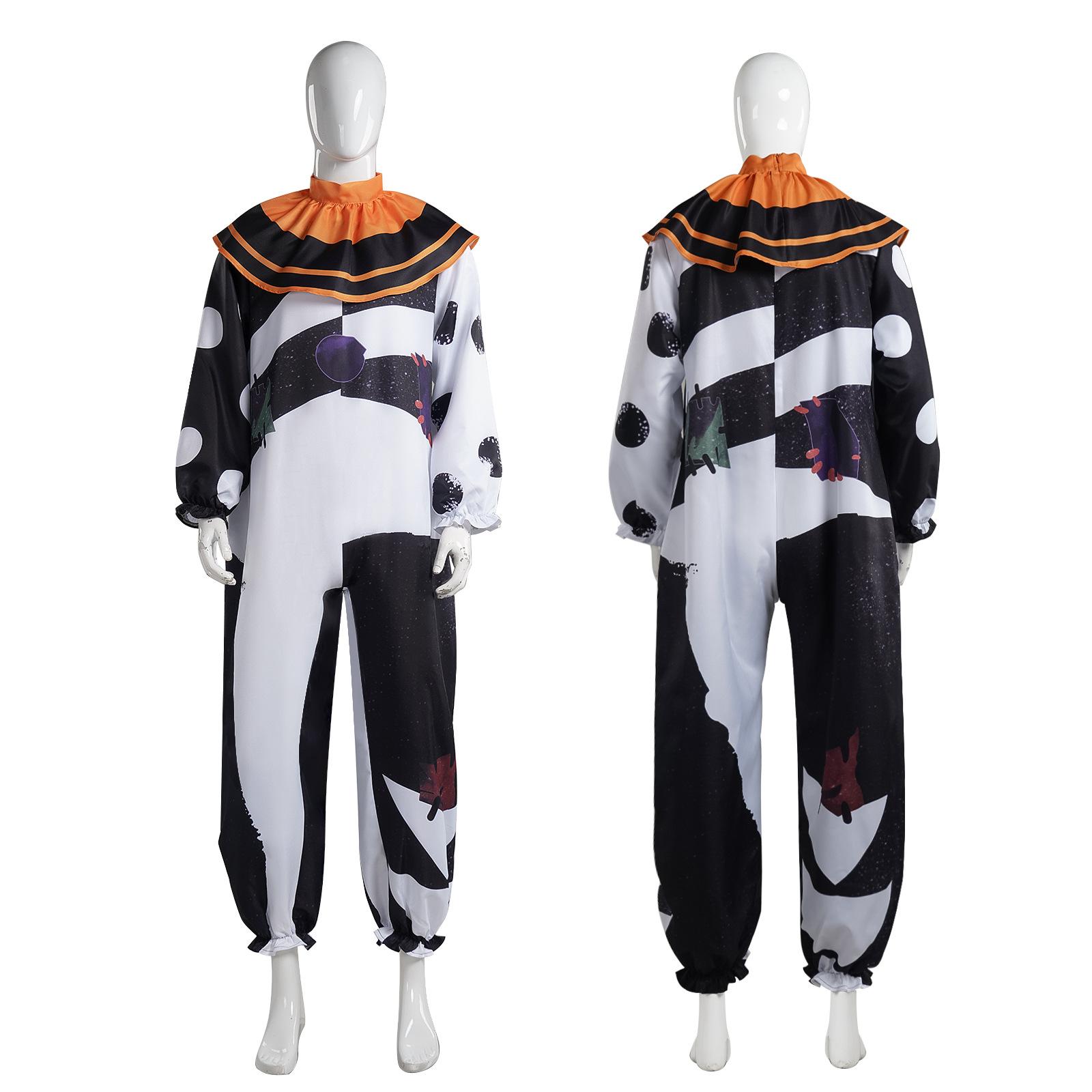 Halloween Mono de Payaso Blanco y Negro Disfraz Cos Estampado Cosplay Personaje de Terror Traje para Actuación Escénica