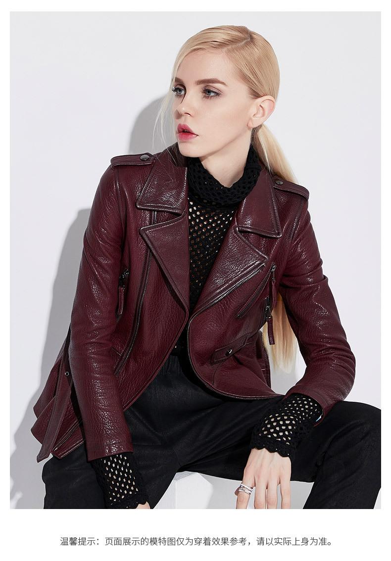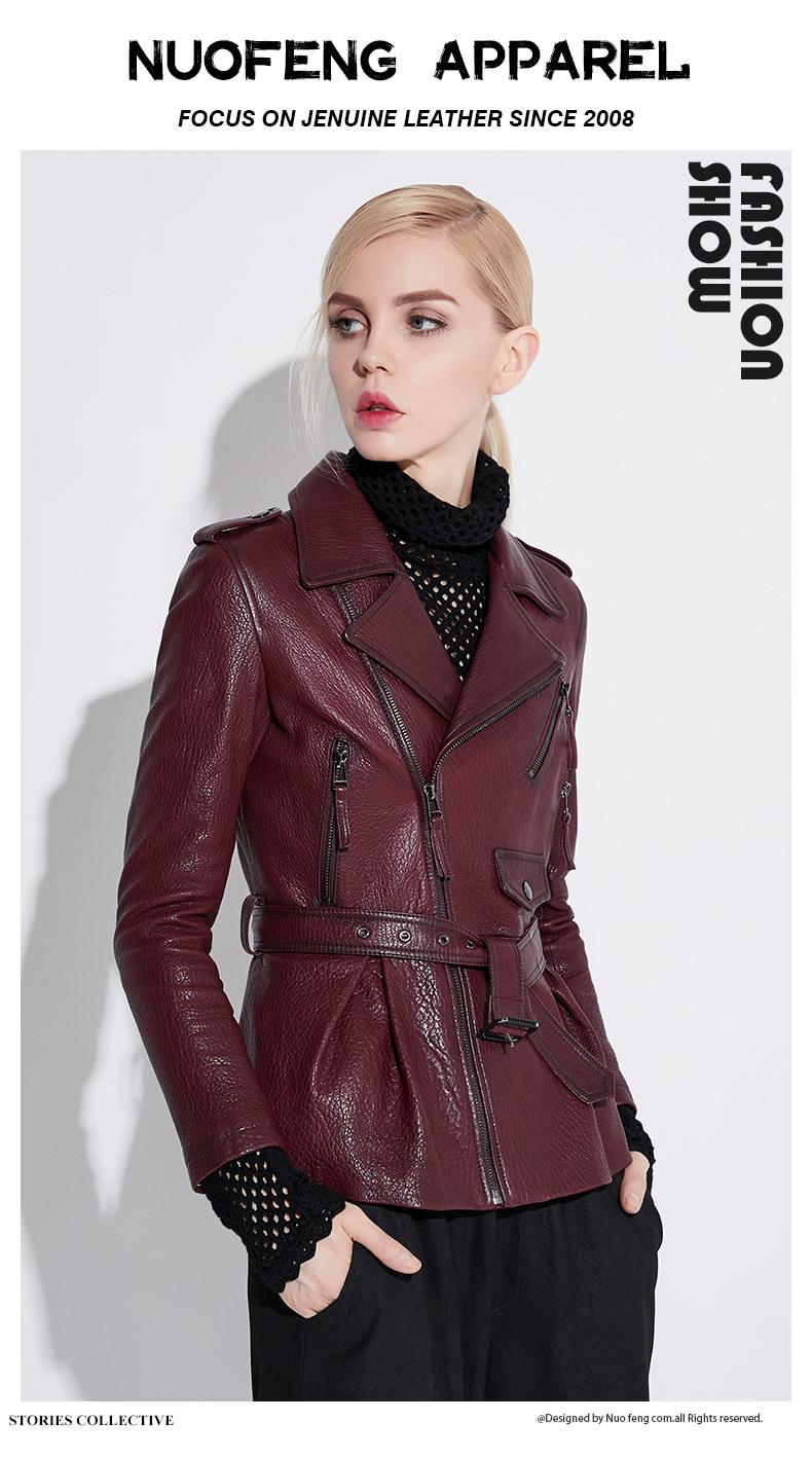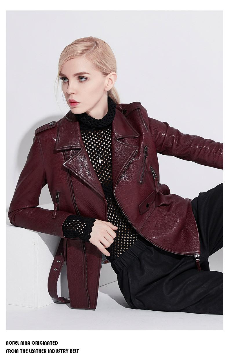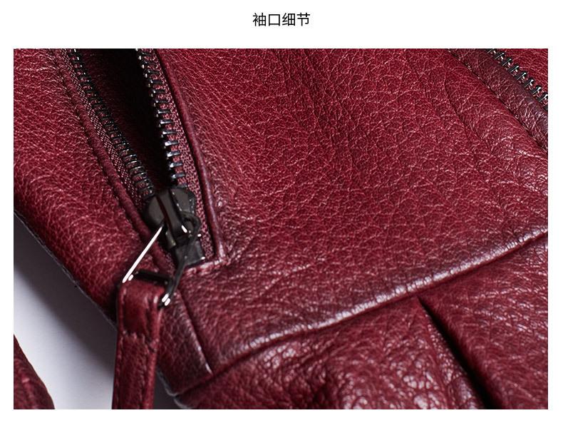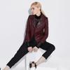 Chaqueta de Piel Genuina Borgoña Nueva de Primavera Haining para Mujer Estilo Coreano Slim Corta Piel de Oveja Retro Chaqueta de Cuero de Motociclista