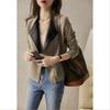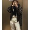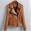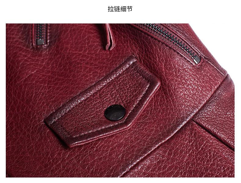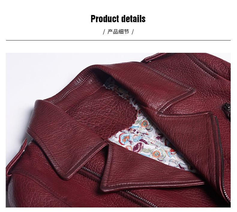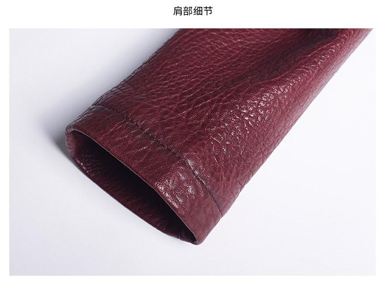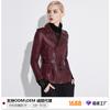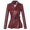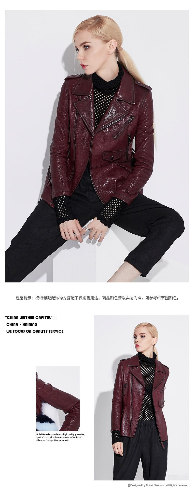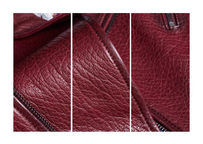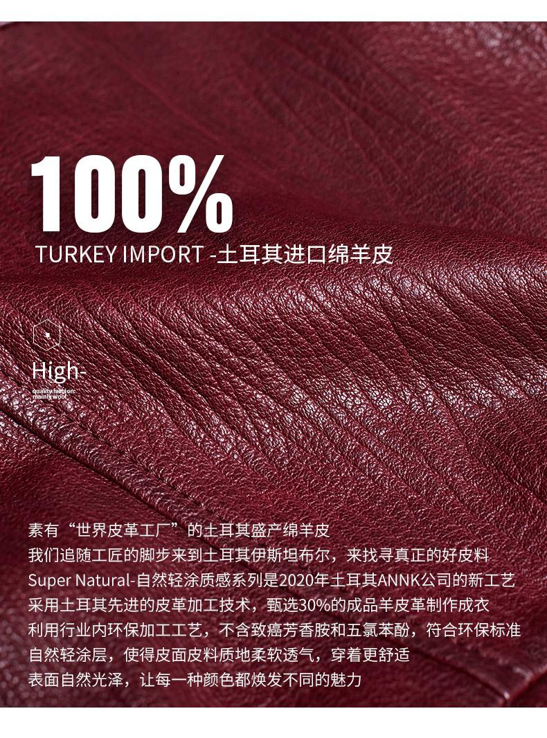 Chaqueta de Piel Genuina Borgoña Nueva de Primavera Haining para Mujer Estilo Coreano Slim Corta Piel de Oveja Retro Chaqueta de Cuero de Motociclista