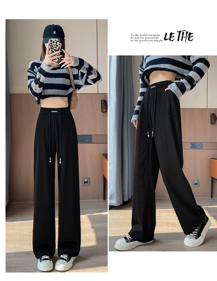Pantalones de mujer con colgante, nueva moda de otoño e invierno 2024, pantalones negros de pierna recta, edición estrecha, pantalones de pierna ancha para mujer, A1318