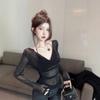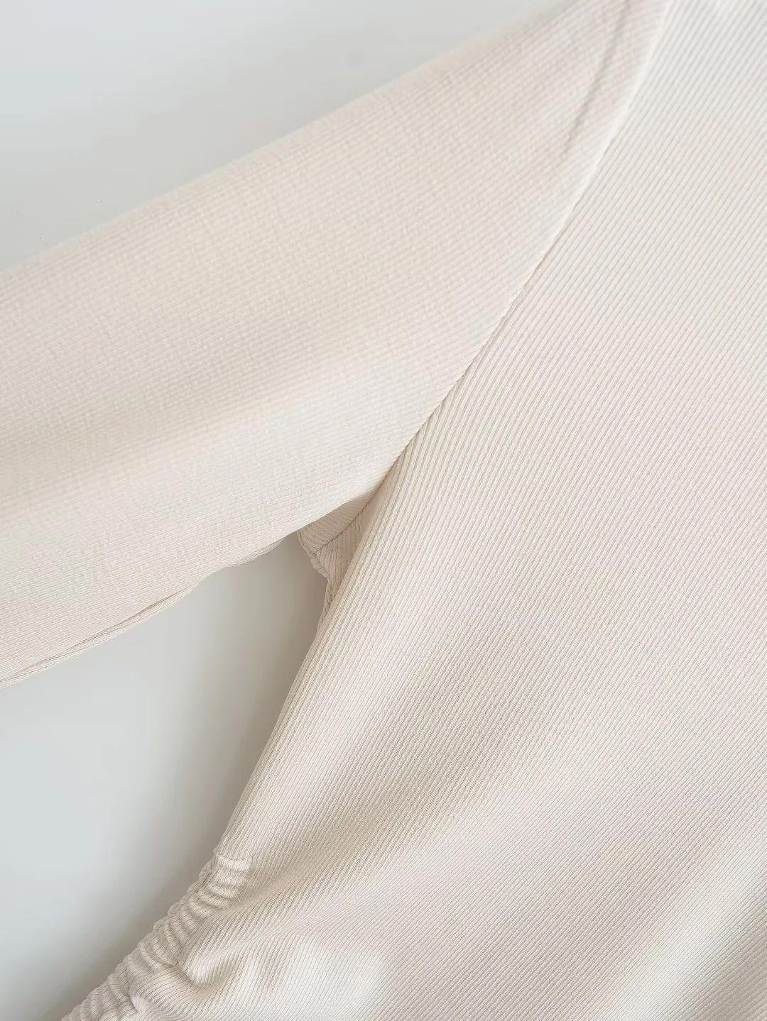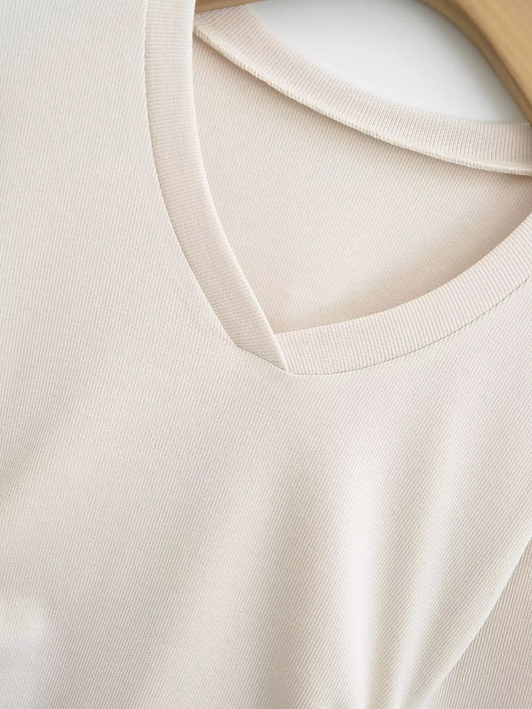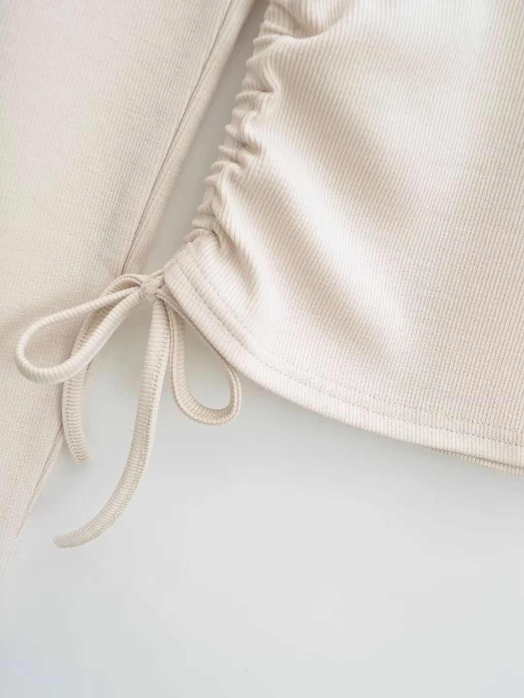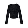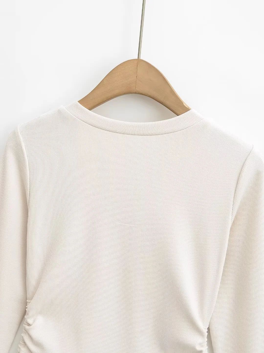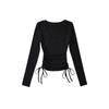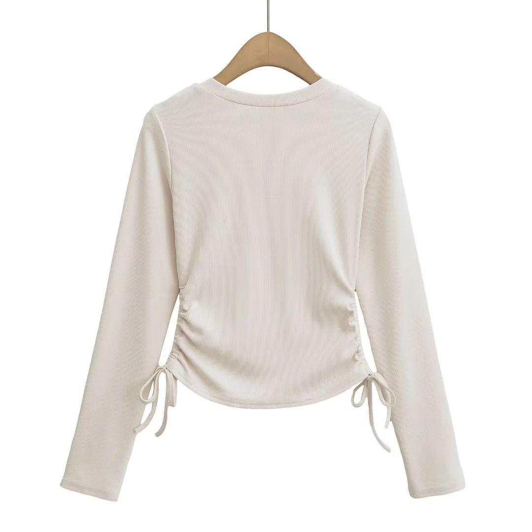 Top sexy de manga larga con cuello en V y color liso para mujer, diseño de Spice Girl, con pliegues laterales, ajustado y con cordones, para otoño