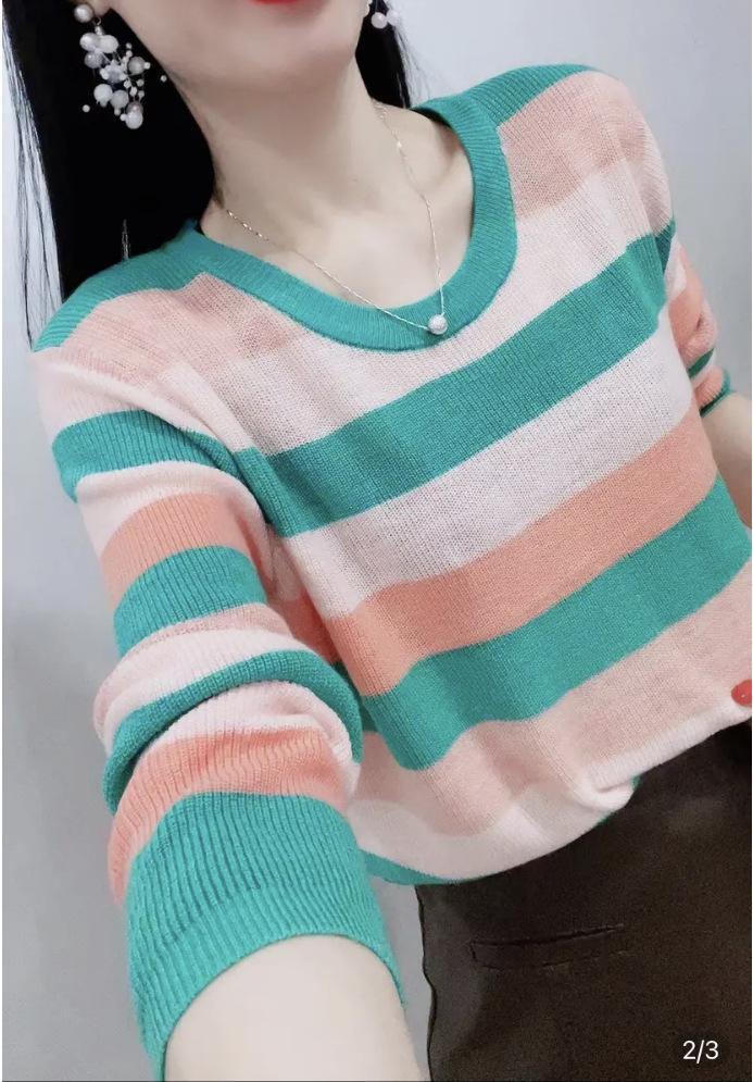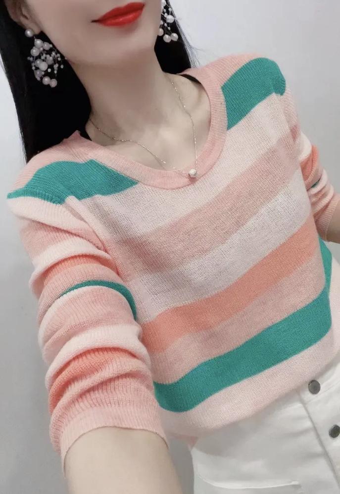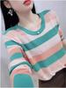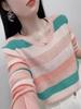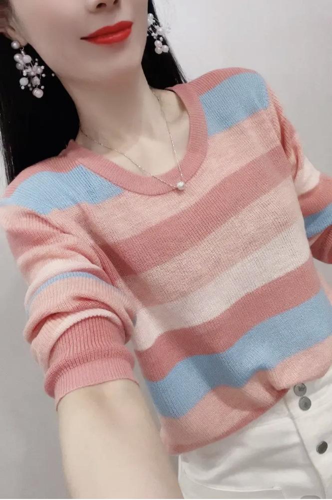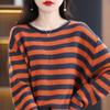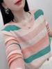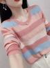 Suéter a rayas de otoño 2024, top de manga larga, camisa de cuello redondo para mujer, suéter elegante adelgazante que combina con todo, moda coreana
