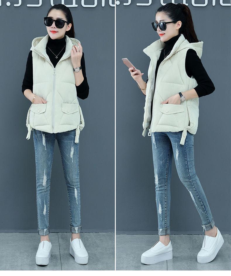 Chaleco de algodón de plumón coreano con clip de caballo blanco para mujer, ropa exterior de otoño e invierno, chaqueta corta de algodón