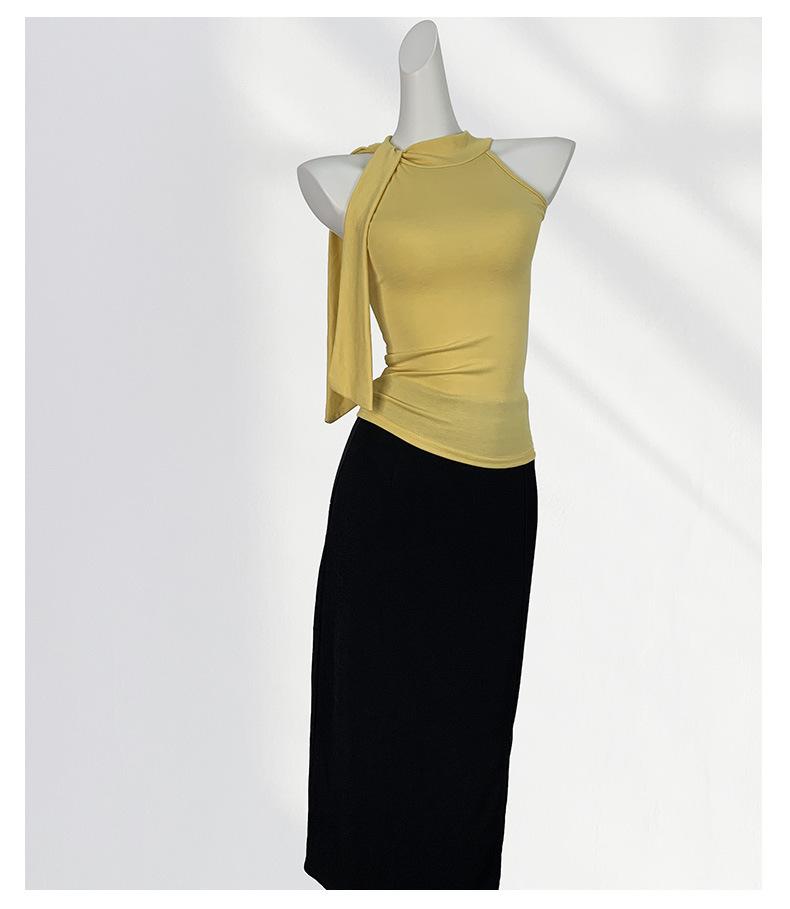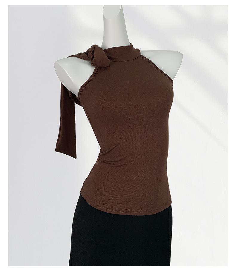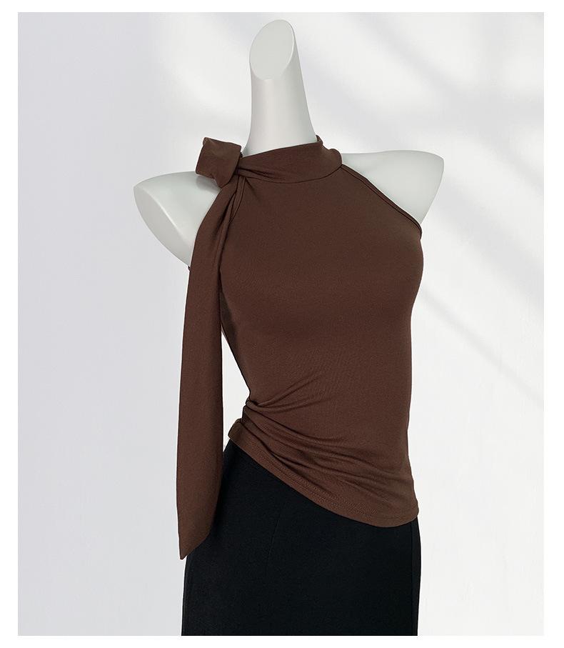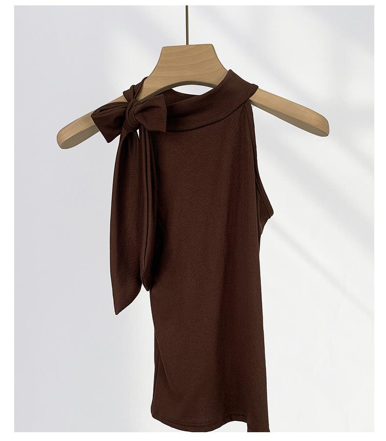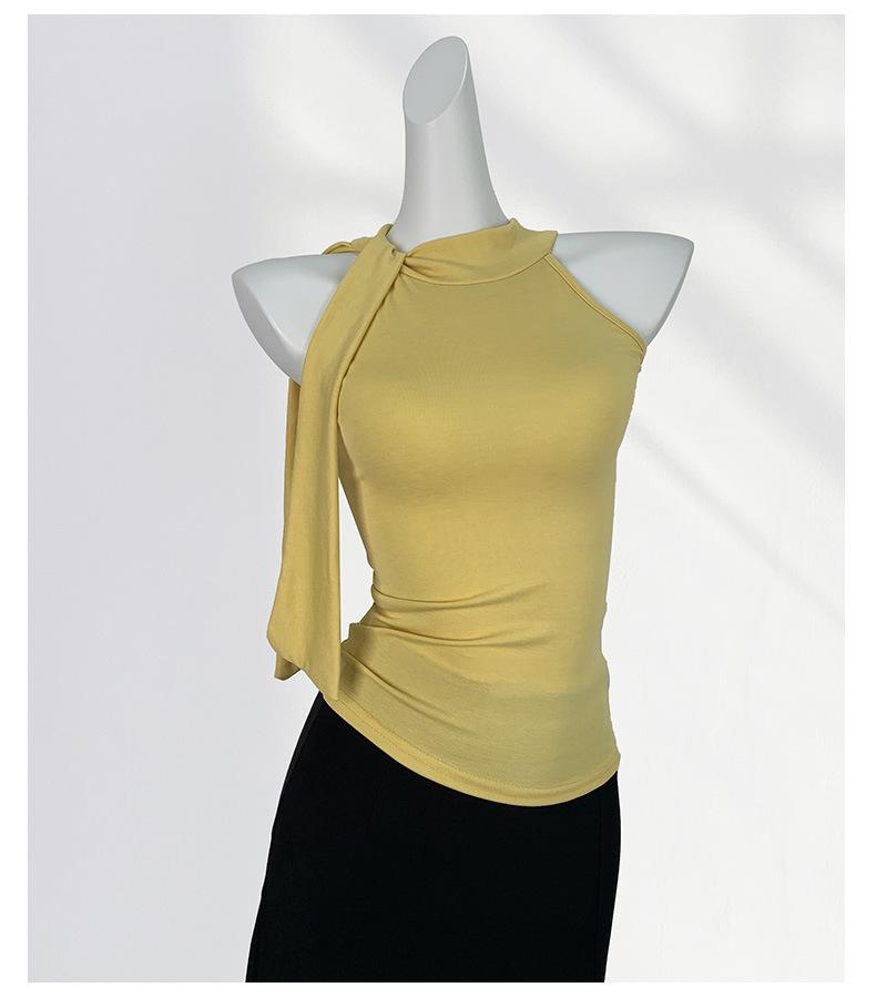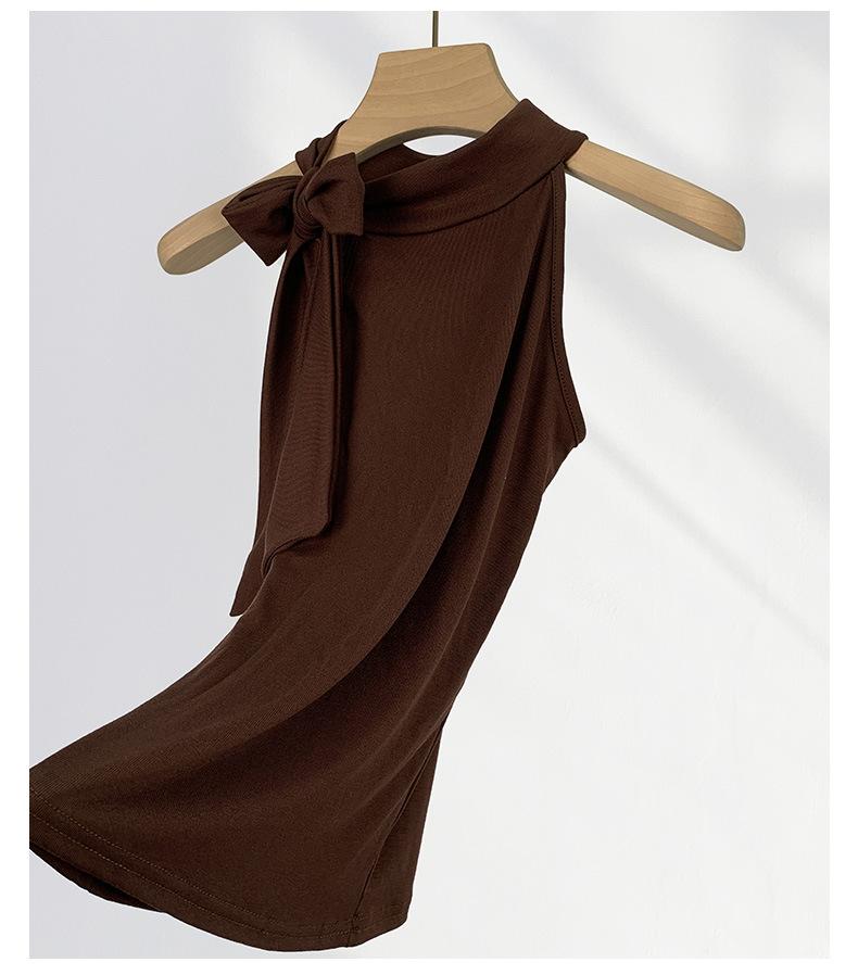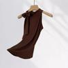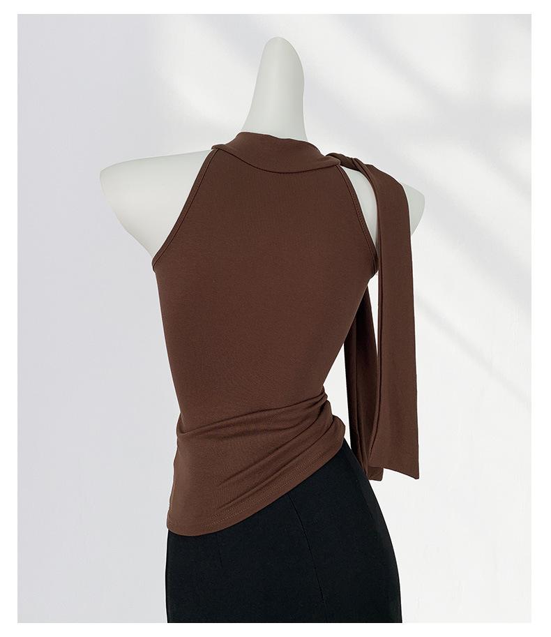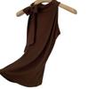 Diosa Tirante Hombro Sin Mangas Top Elegante Algodón Mohoso Sexy Ajustado Elástico Cuello Bufanda Chaleco