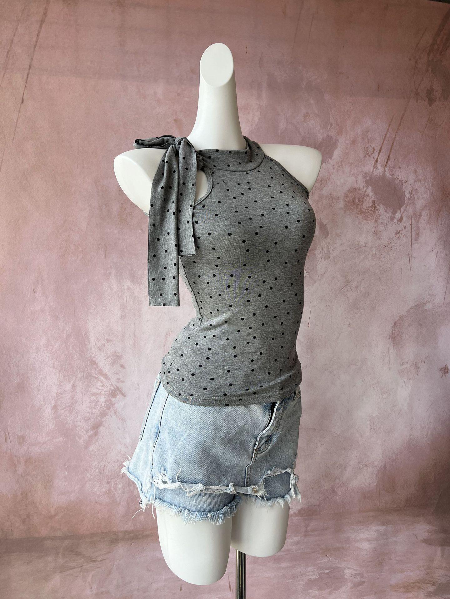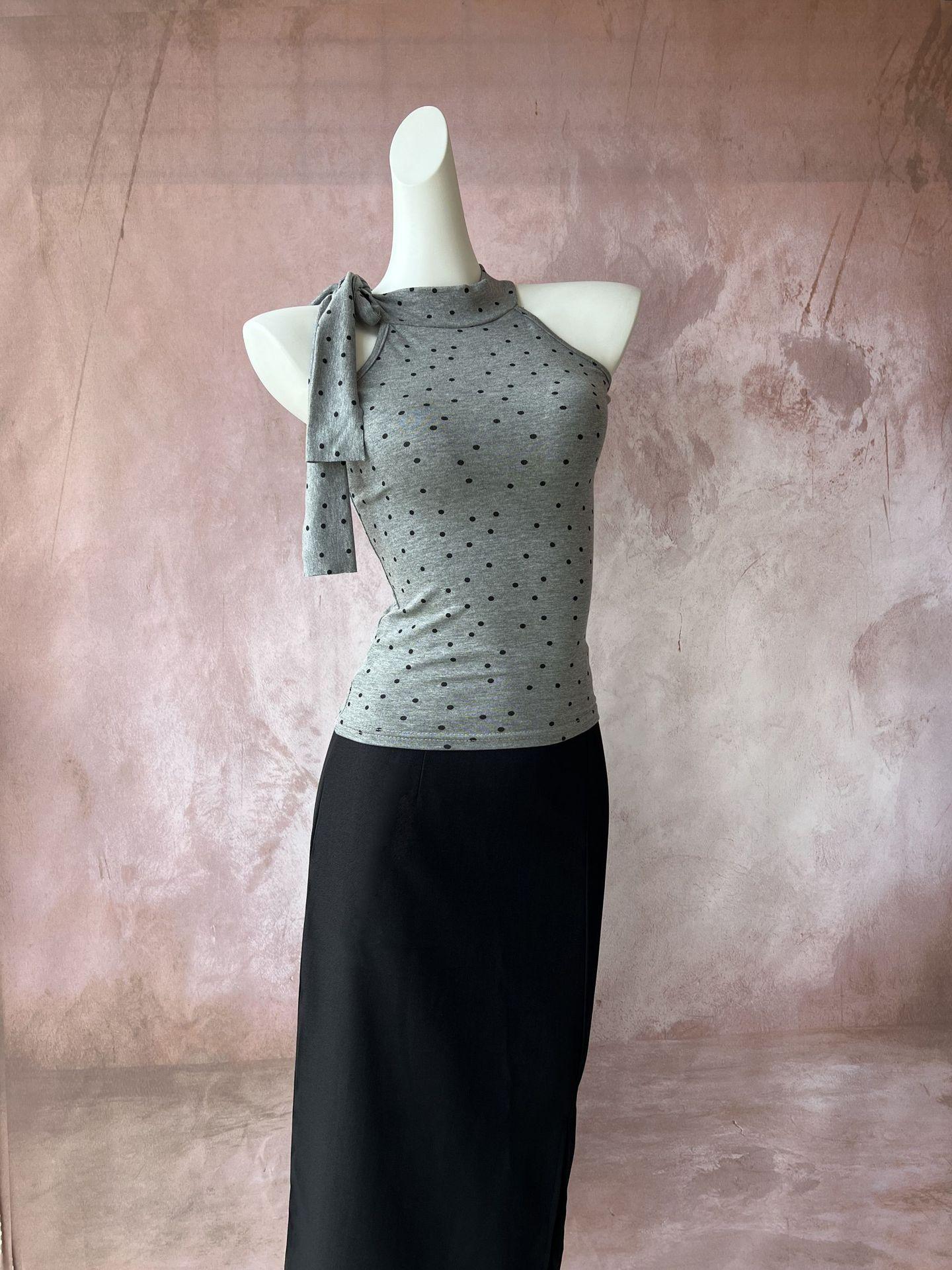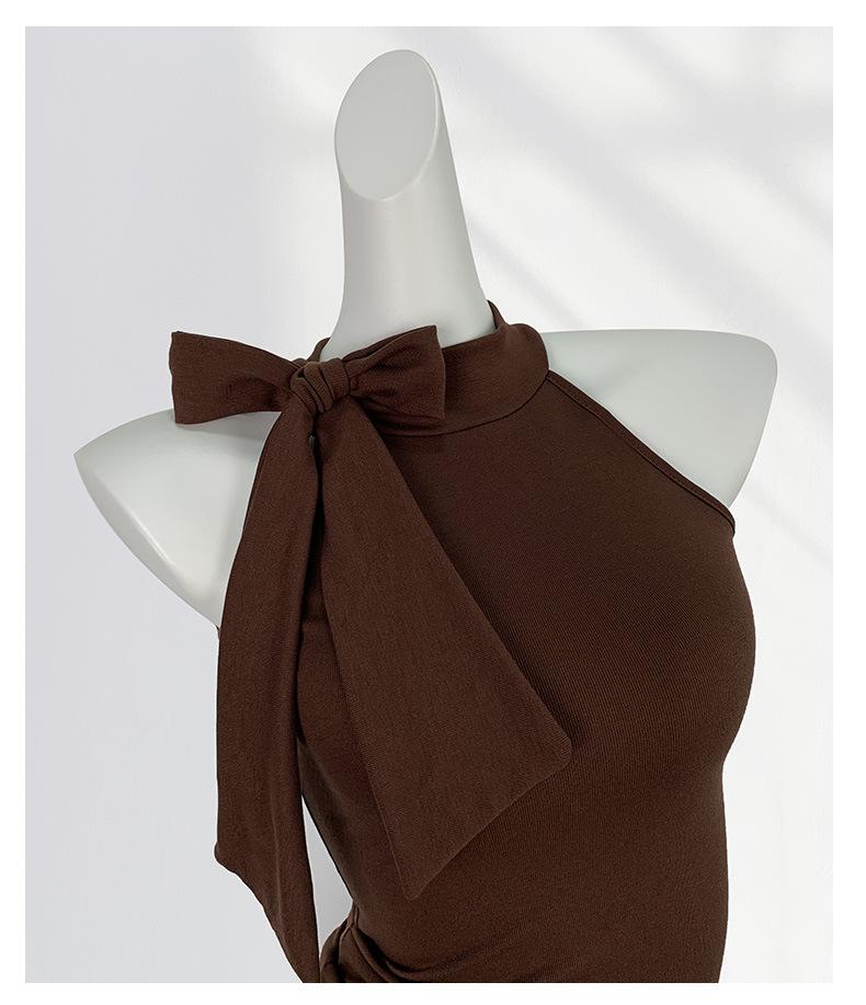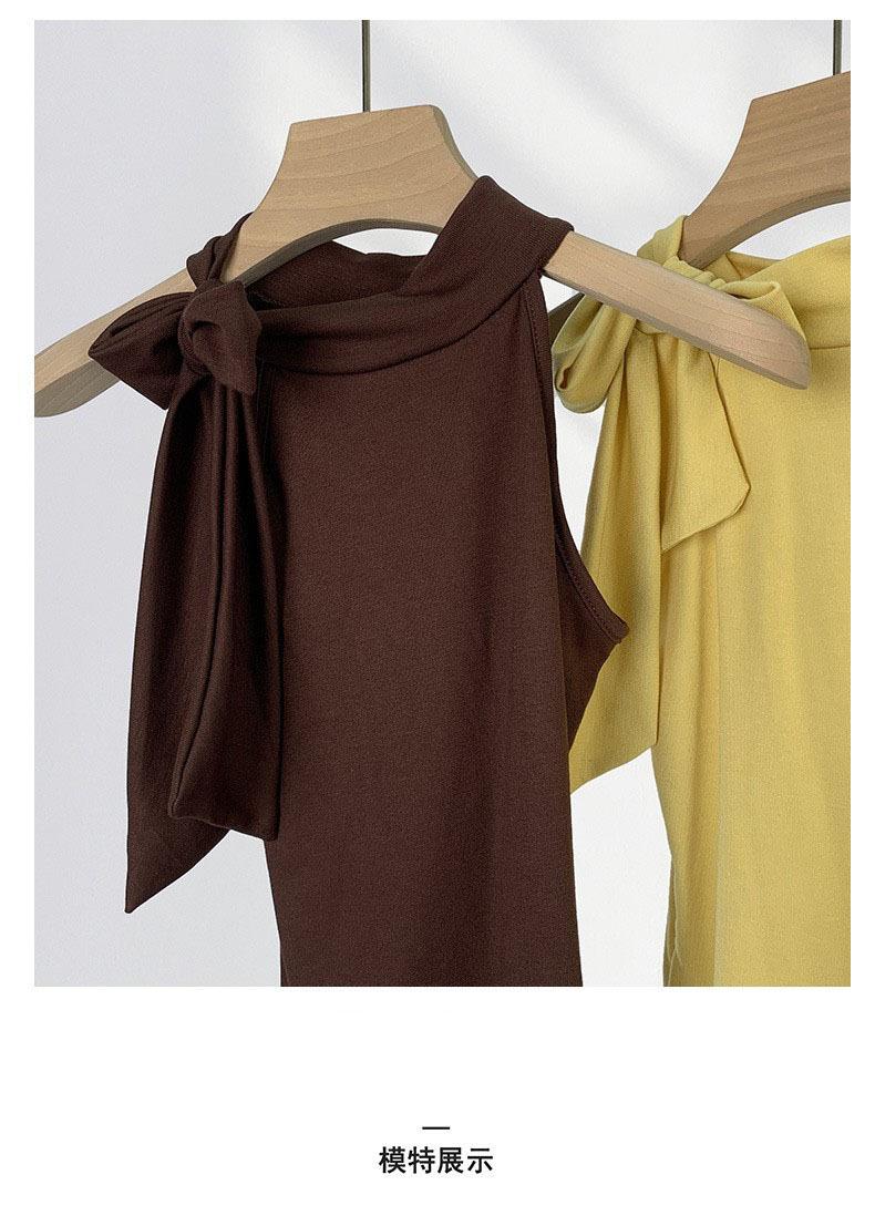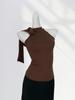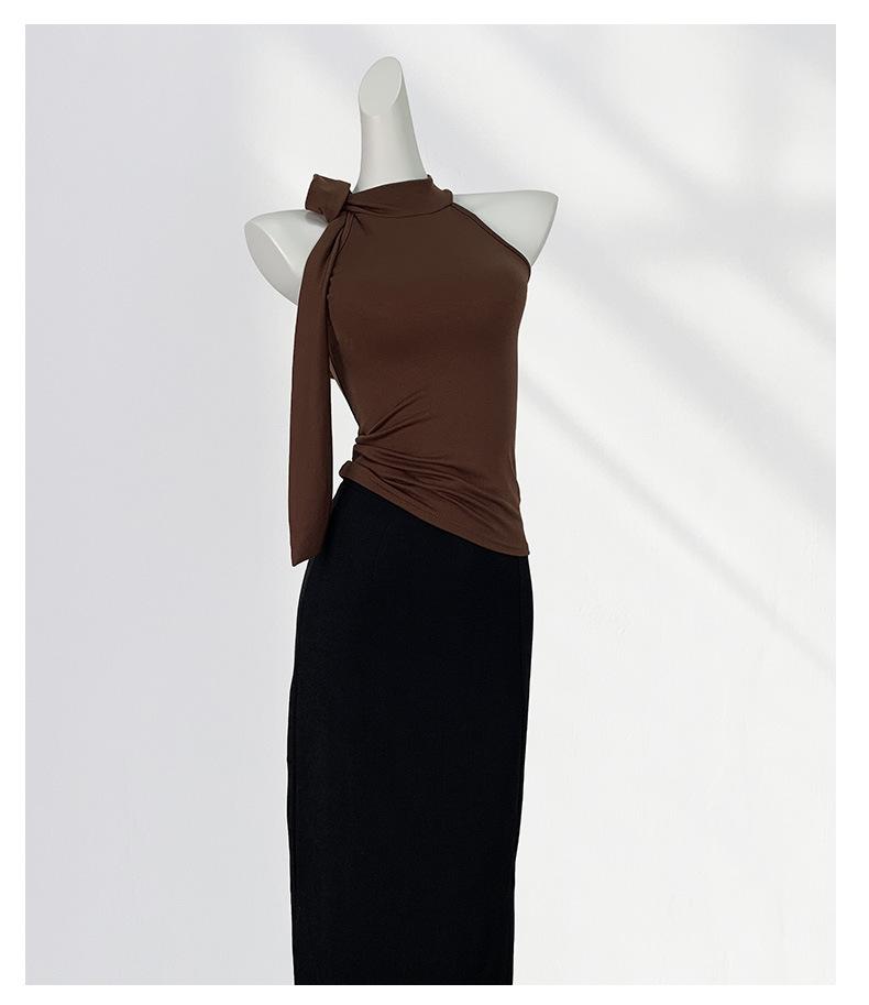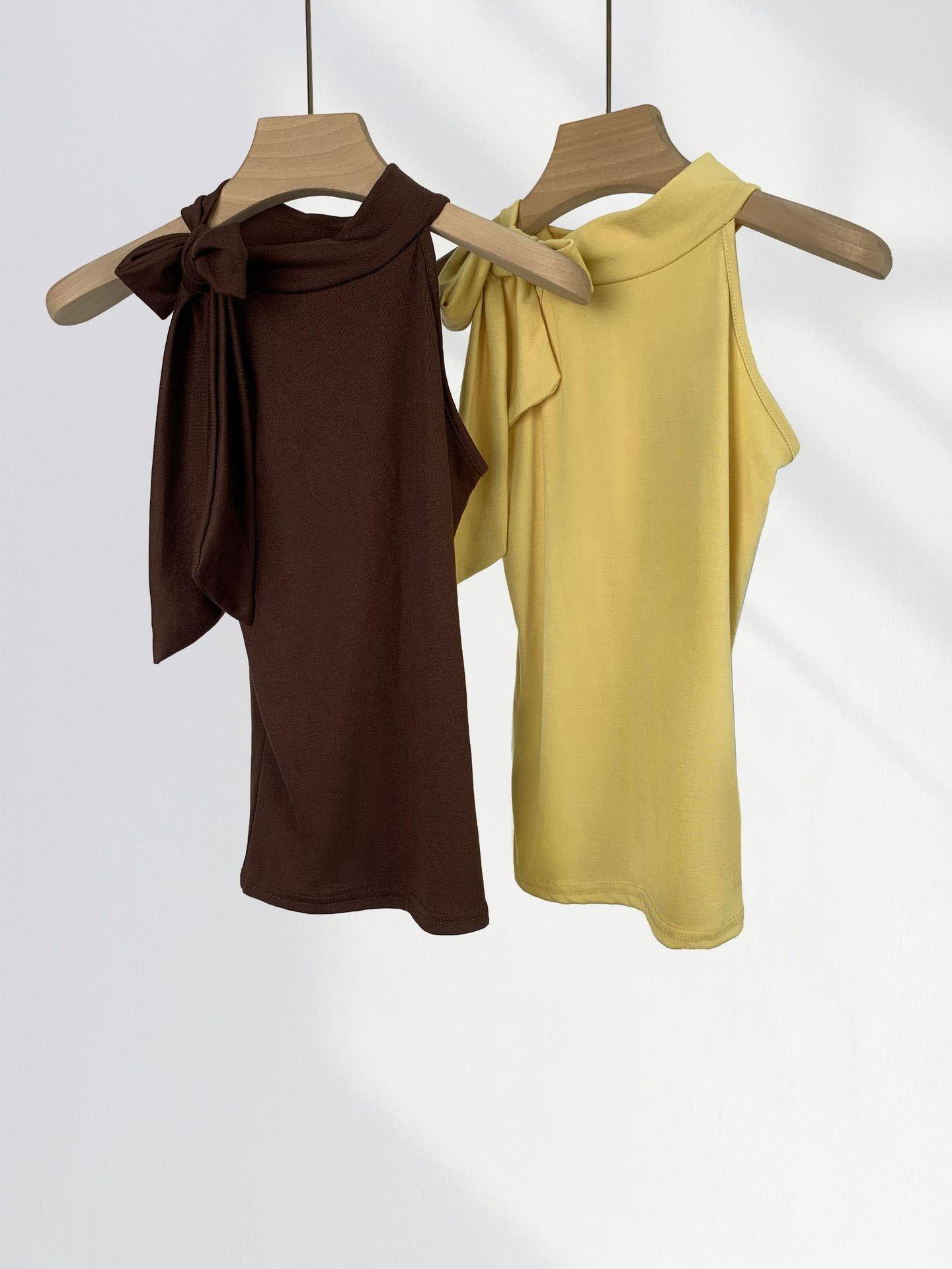 Diosa Tirante Hombro Sin Mangas Top Elegante Algodón Mohoso Sexy Ajustado Elástico Cuello Bufanda Chaleco
