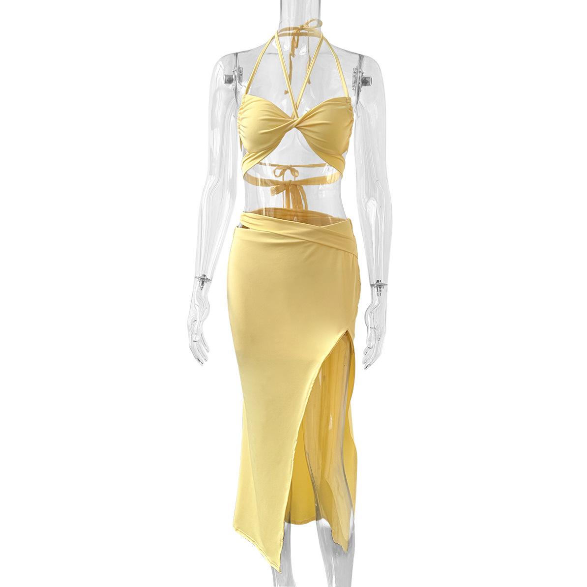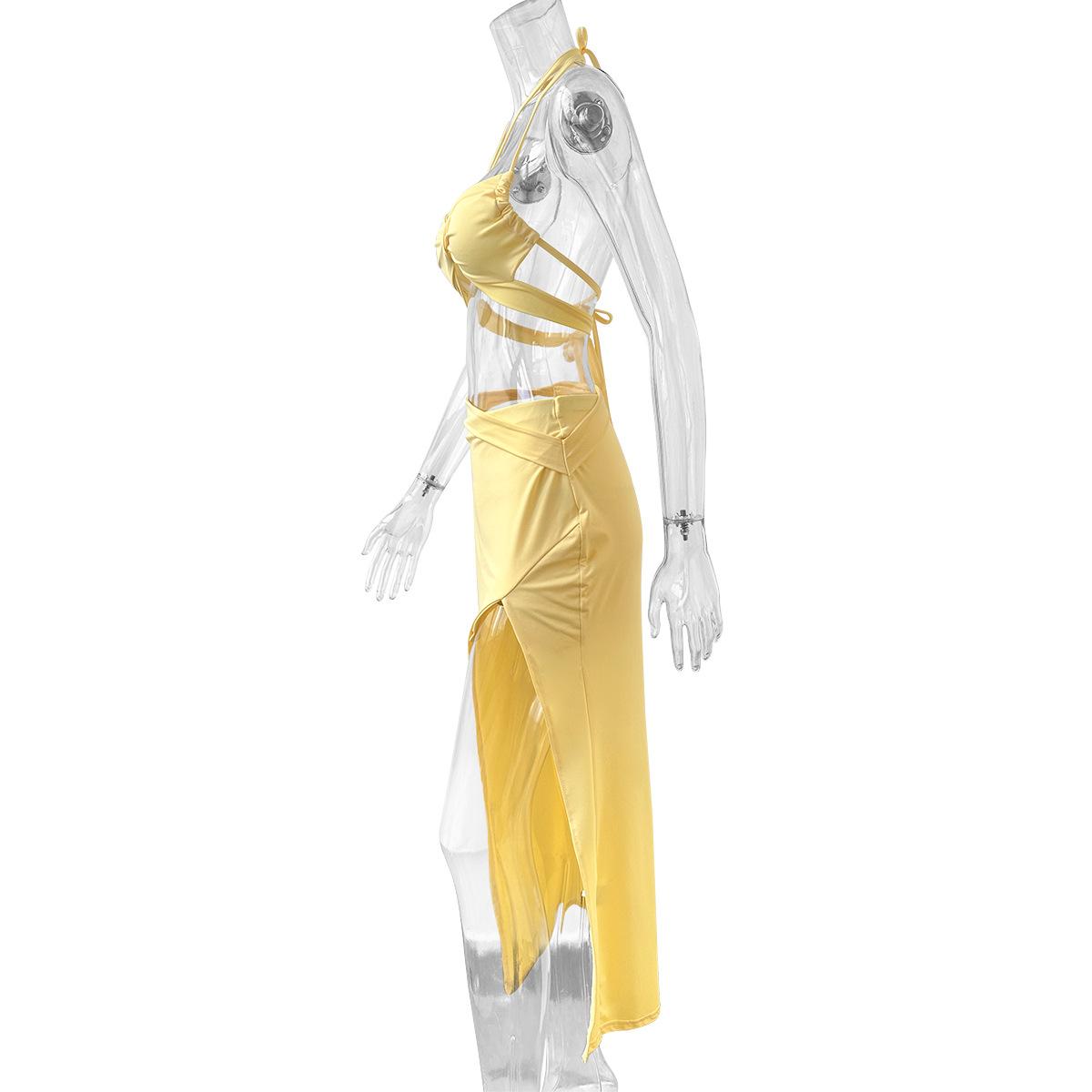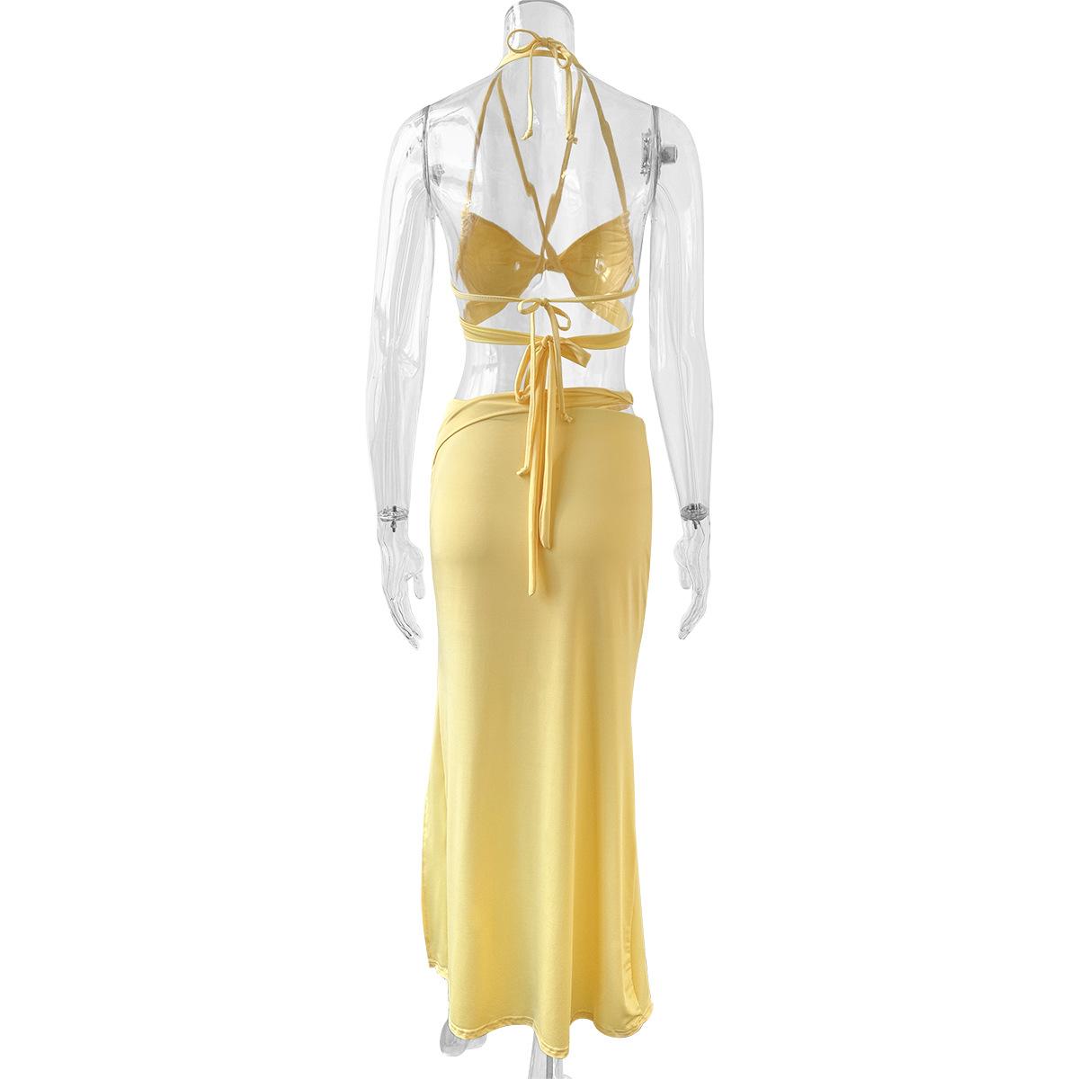 Vestido sexy de dos piezas europeo y americano con tirantes halter;
