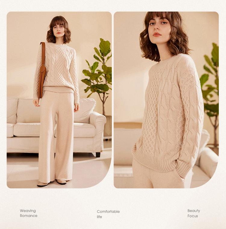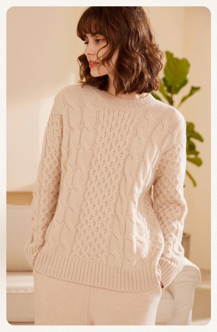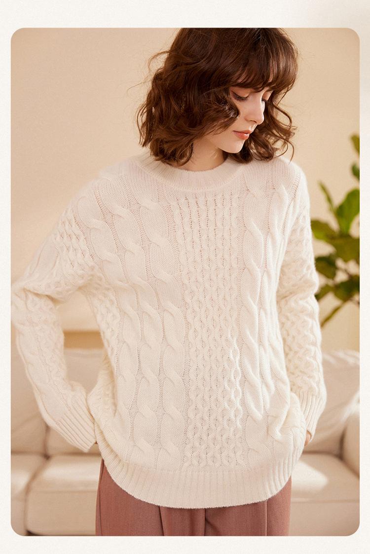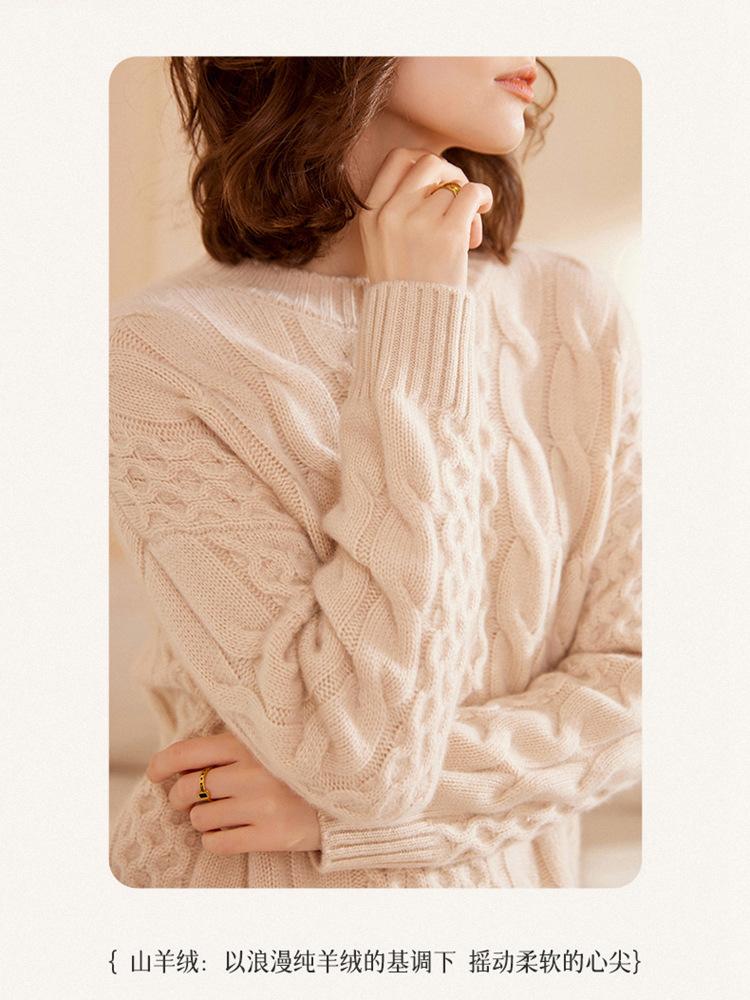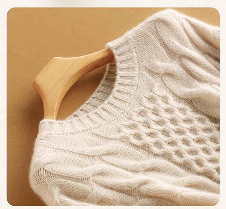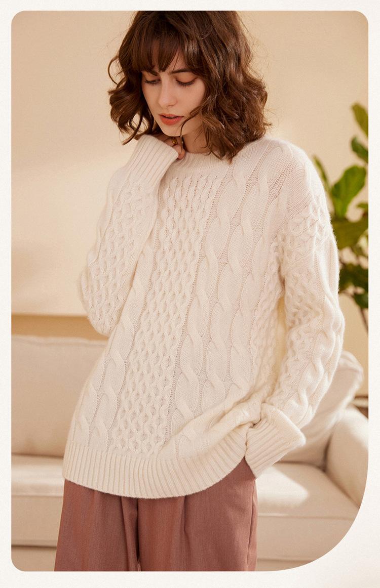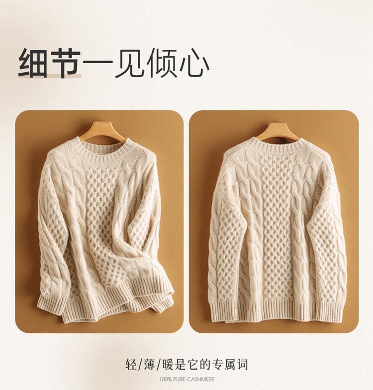 Suéter de cachemira para mujer, 100% cachemira pura, otoño e invierno, nuevo, cuello redondo, mangas en los hombros, suelto, giros, suéter de punto grueso