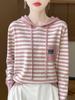 Suéter casual con capucha a rayas de color combinado para mujer 2024 otoño nuevo moda coreana estilo occidental suéter de punto para mujer