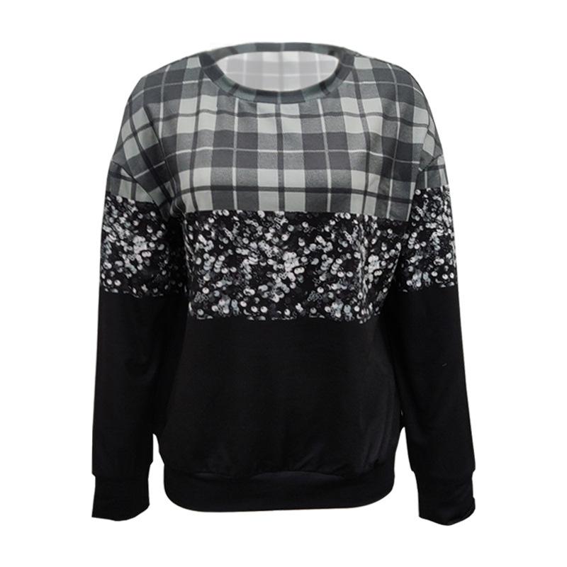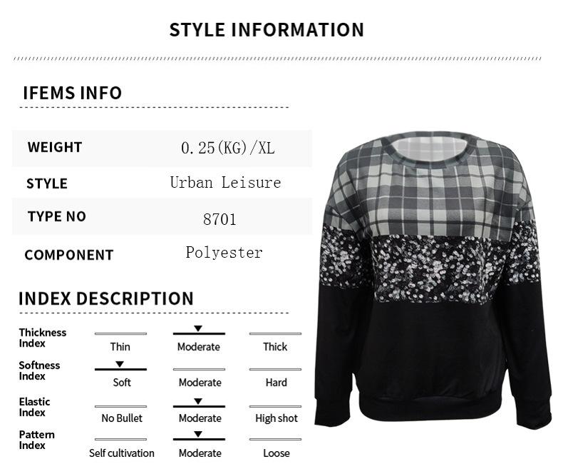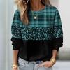 Suéter de manga larga con cuello redondo y estampado de contraste de colores a cuadros informal para mujer de Amazon, comercio exterior transfronterizo europeo y americano