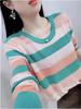Suéter holgado y elegante con rayas para mujer, primavera y otoño 2024, nuevo jersey adelgazante de manga larga.