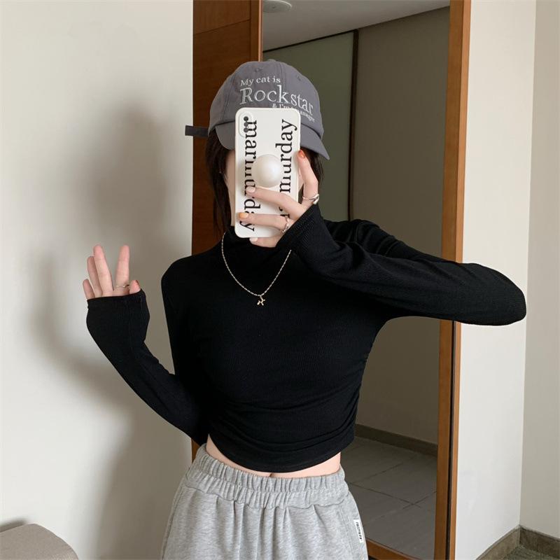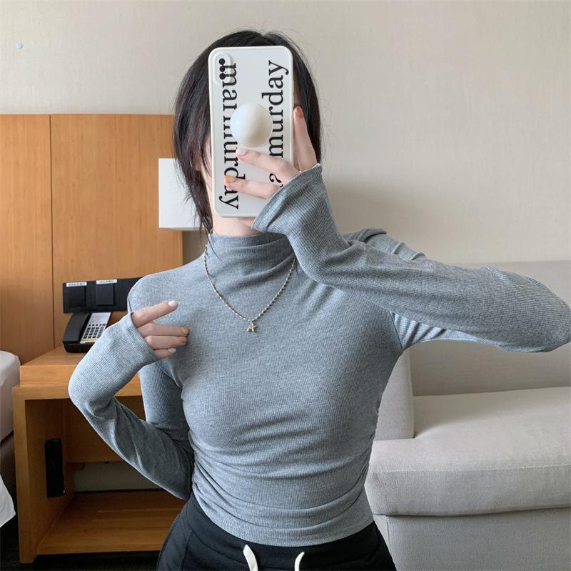 Camiseta básica de cuello medio alto para mujer, camiseta ajustada, otoño 2023, nuevo estilo coreano, camiseta interior de manga larga corta, top de estudiante de moda