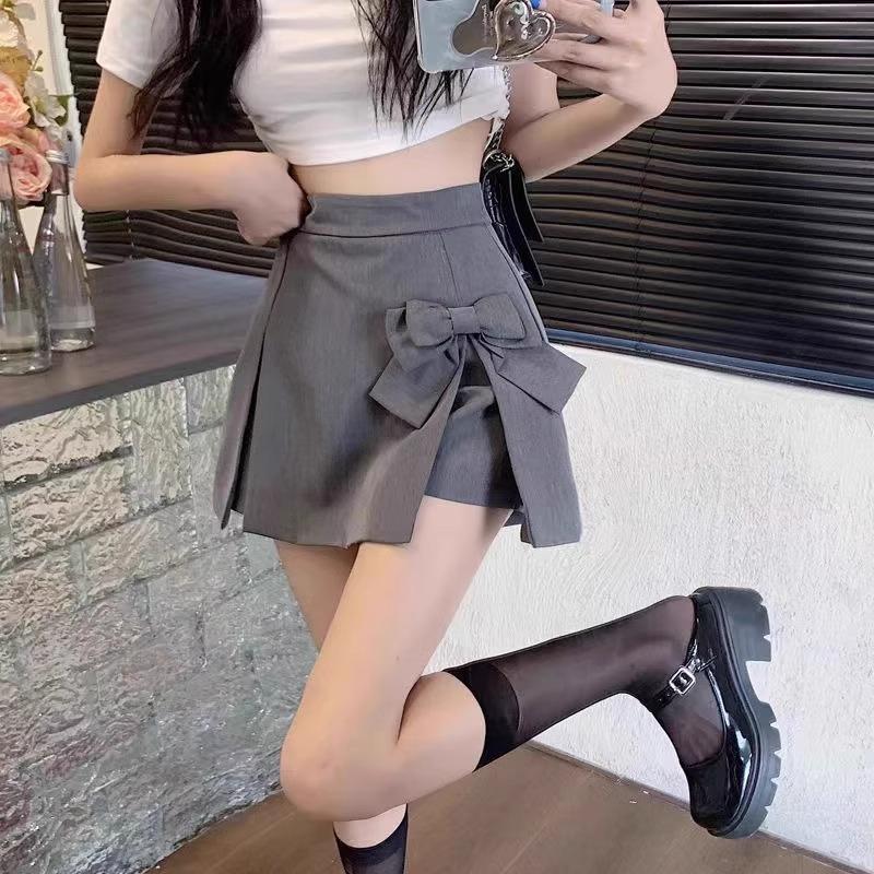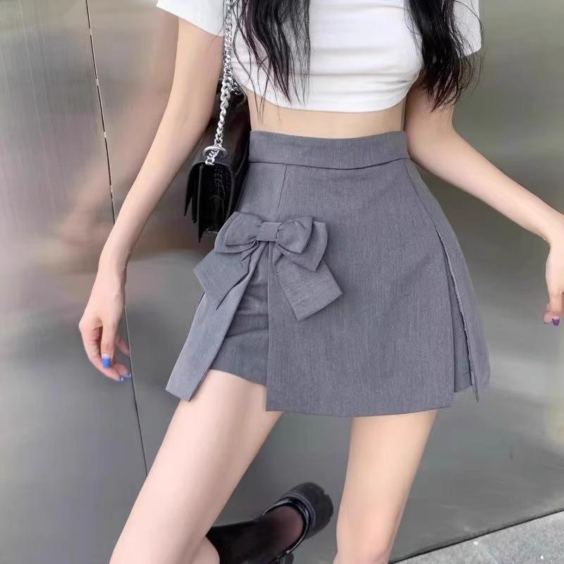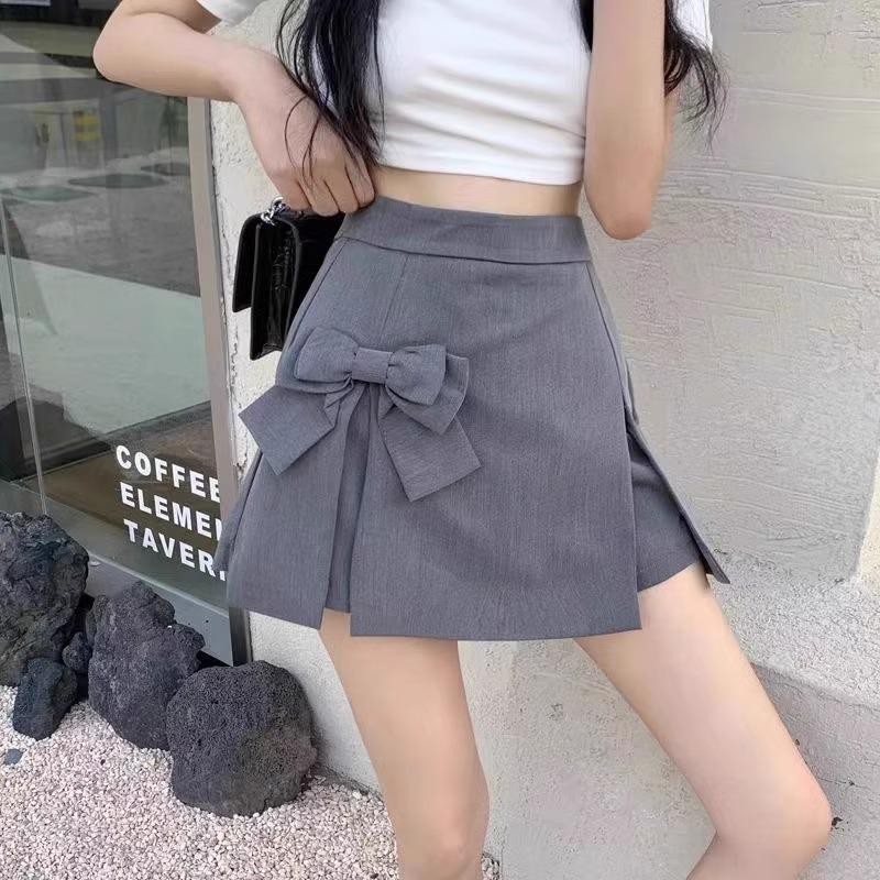 Pantalón Falda para Mujer 2024 Otoño Nuevo Diseño de Lazo Traje de Chica Hot Falda Cintura Alta Adelgazante Falda A-Line