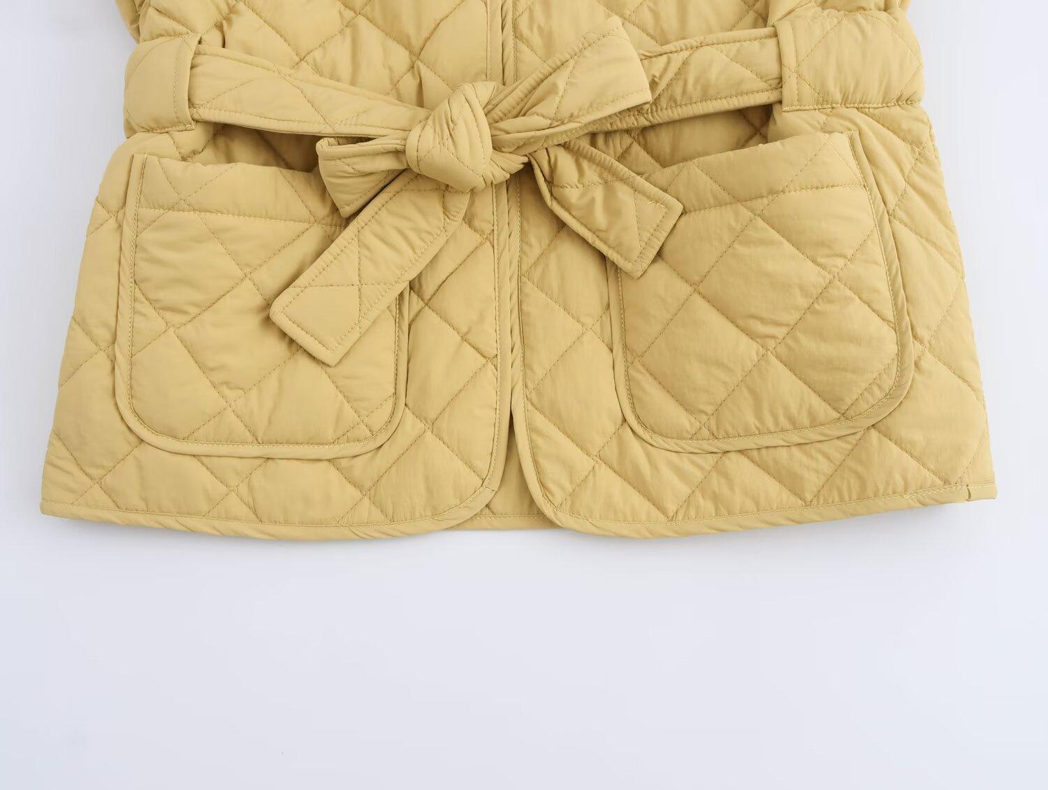 2024 otoño e invierno nuevo europeo y americano transfronterizo moda callejera para mujer cinturón acolchado chaqueta abrigo w021 81569