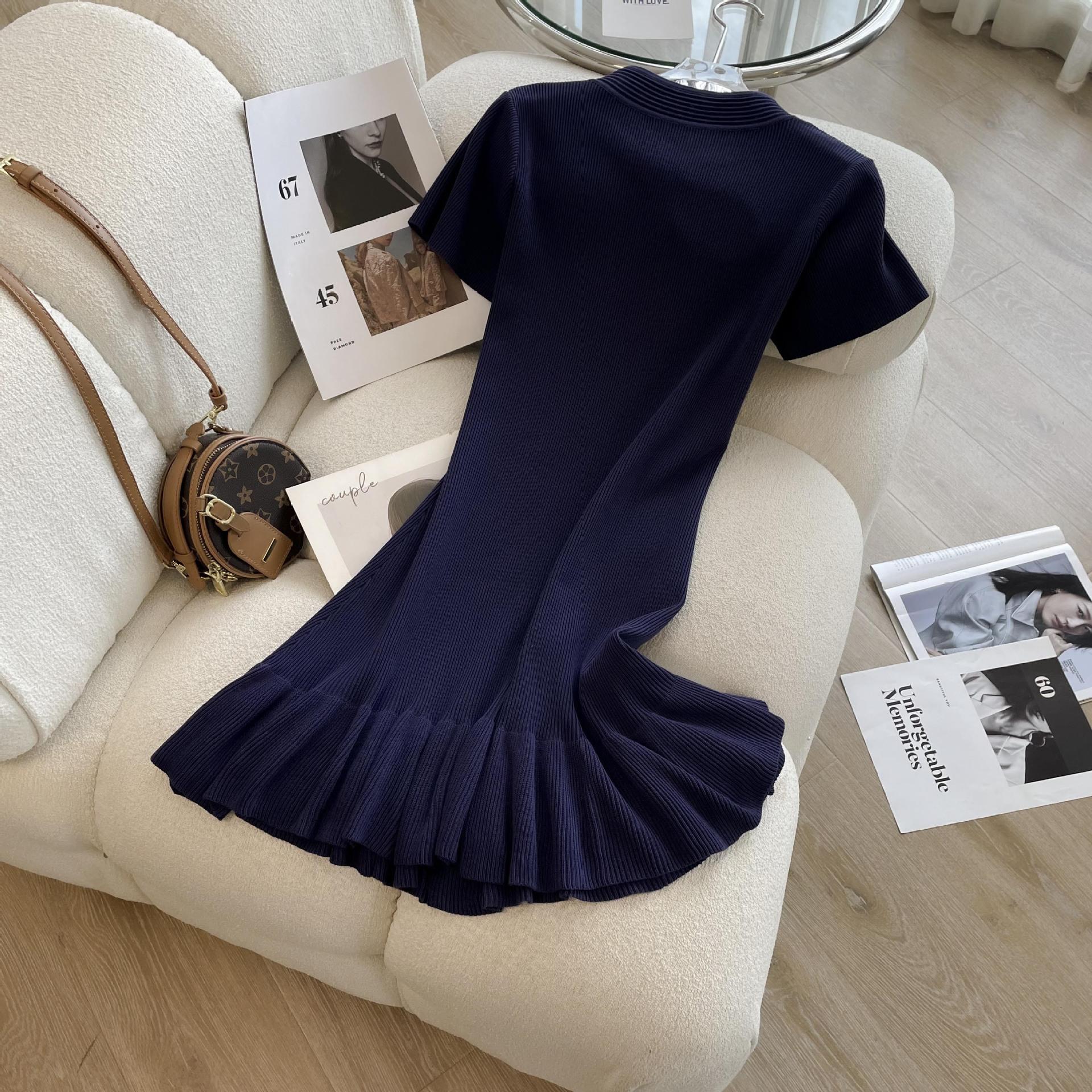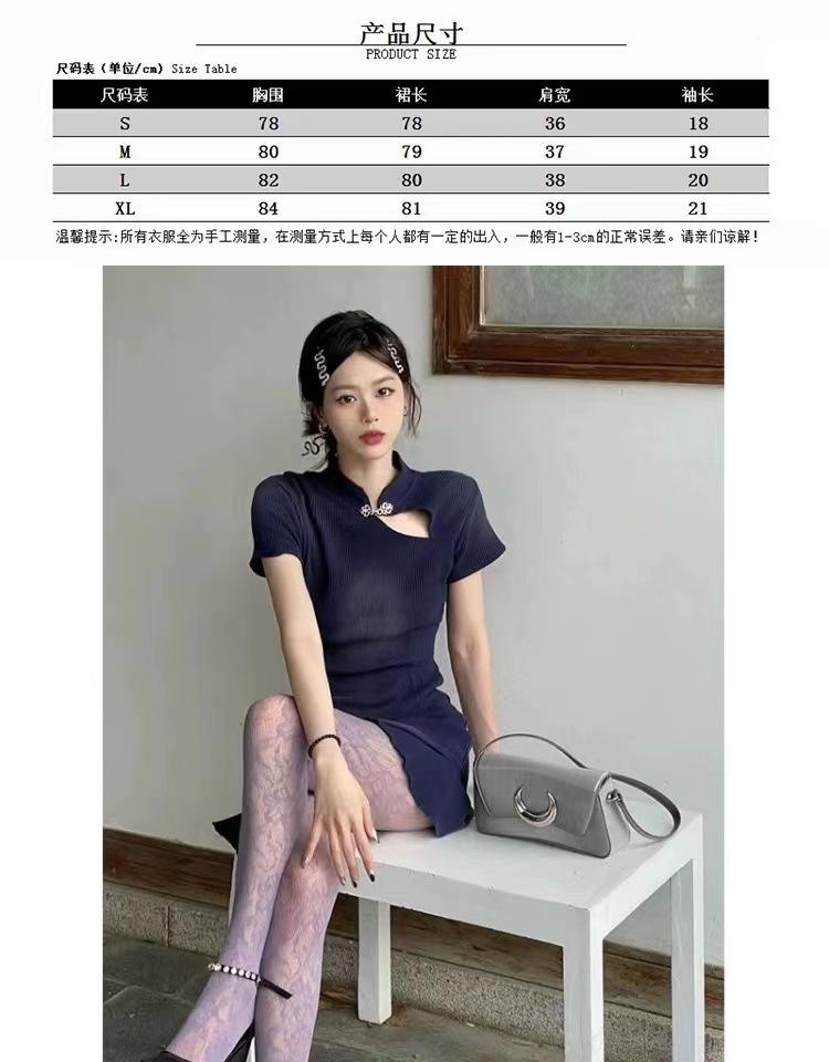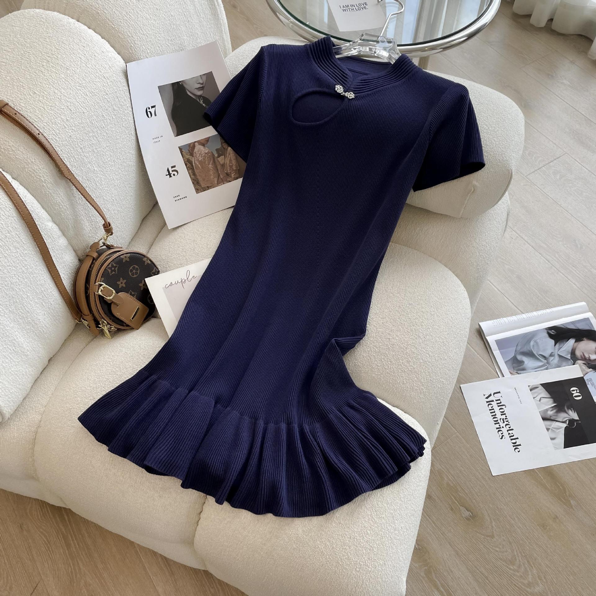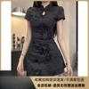 Verano Nuevo Estilo Negro Sexy Ajustado a la Cadera Cintura Adelgazante Look Corto Volantes Cheongsam Mejorado Vestido para Mujer