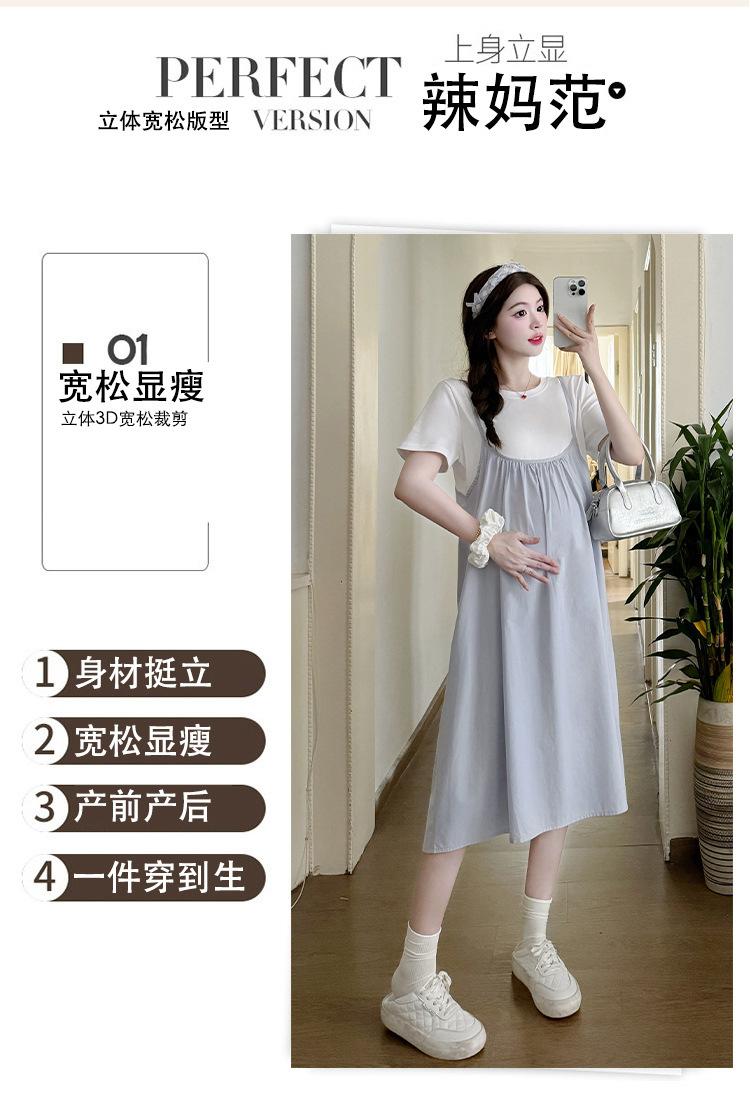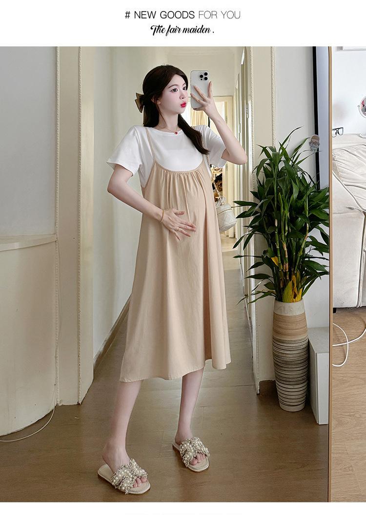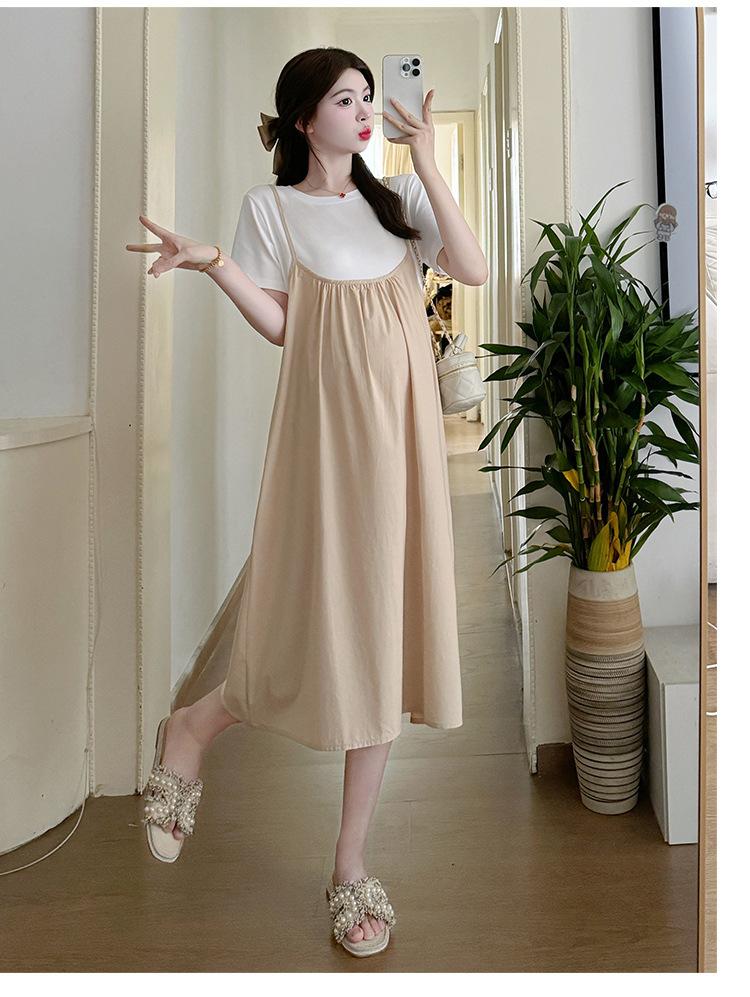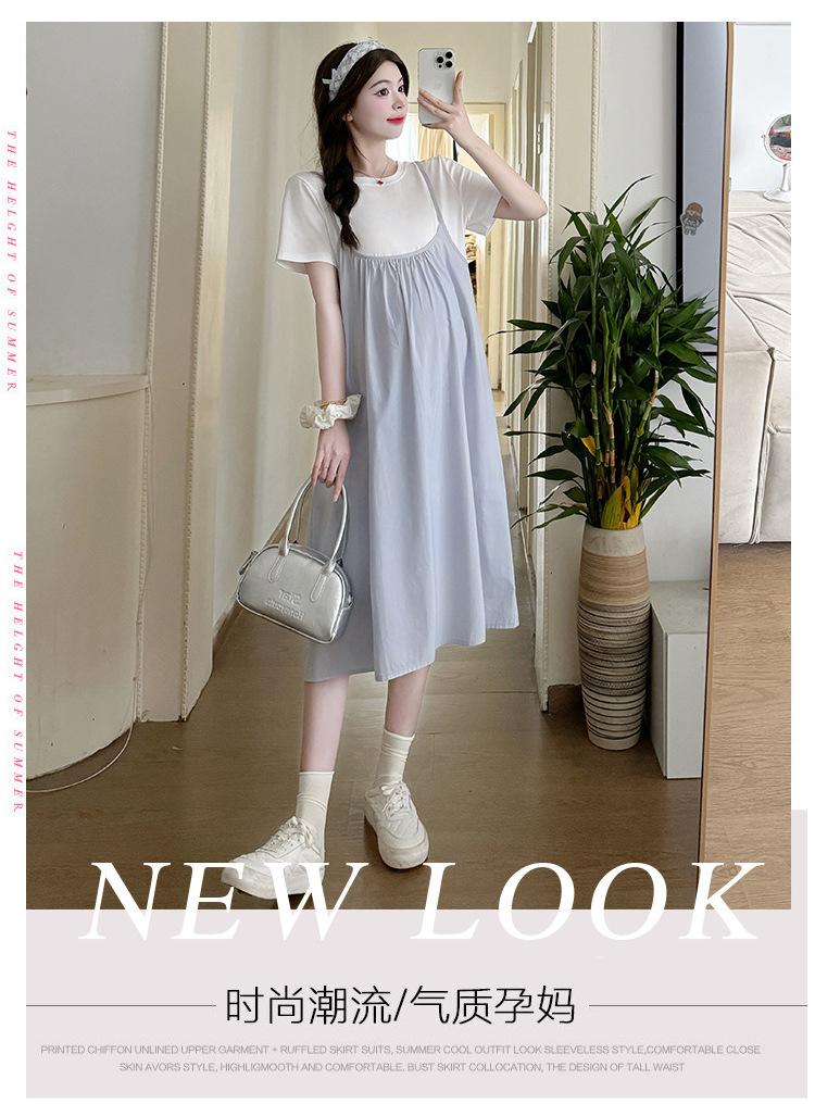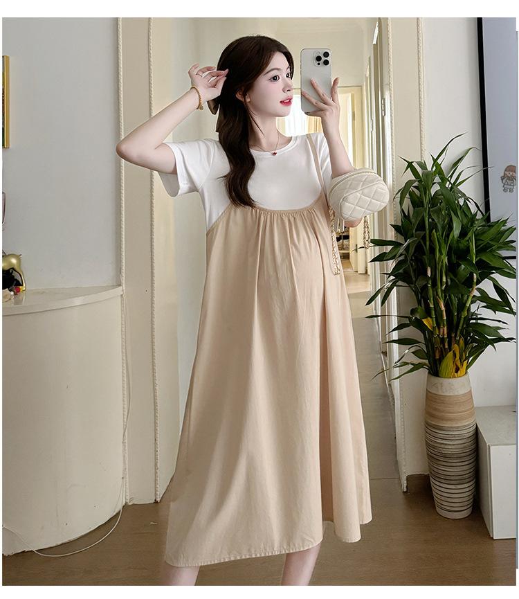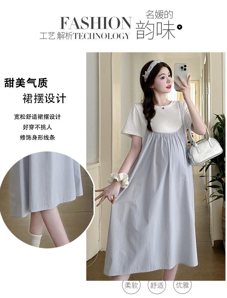 Vestido de verano para embarazadas 2024, nuevo estilo, elegante y holgado, con costuras a la moda, fino y que cubre el vientre.