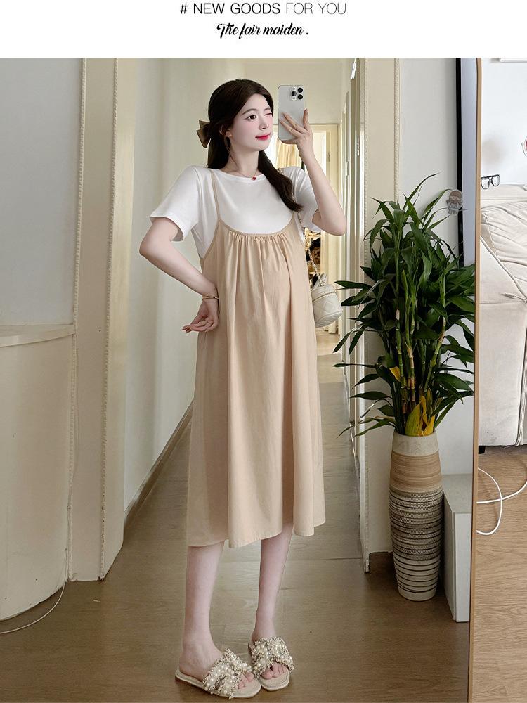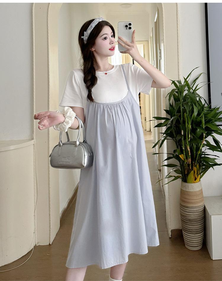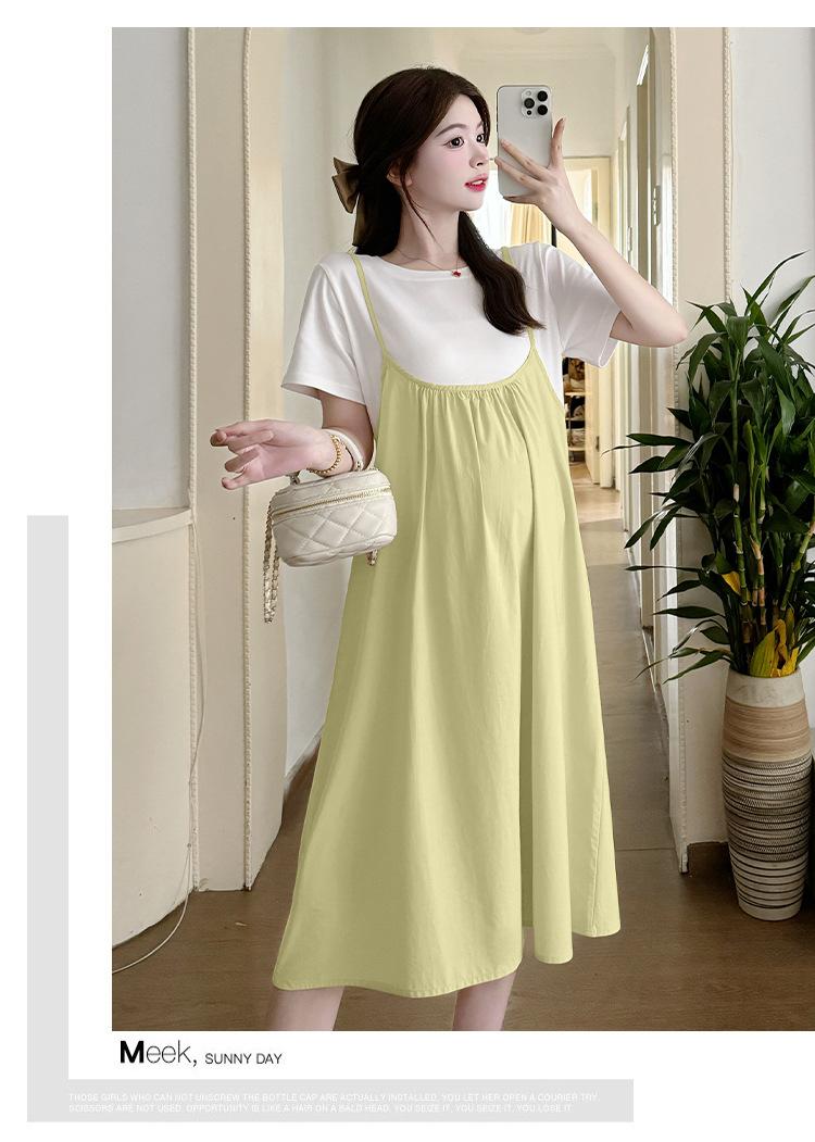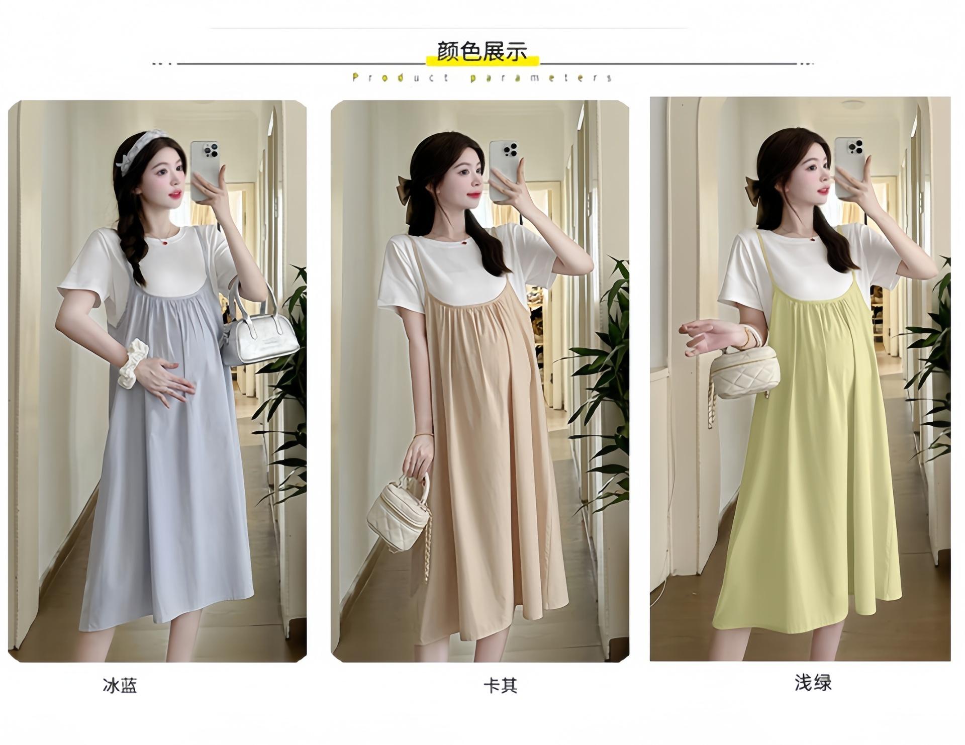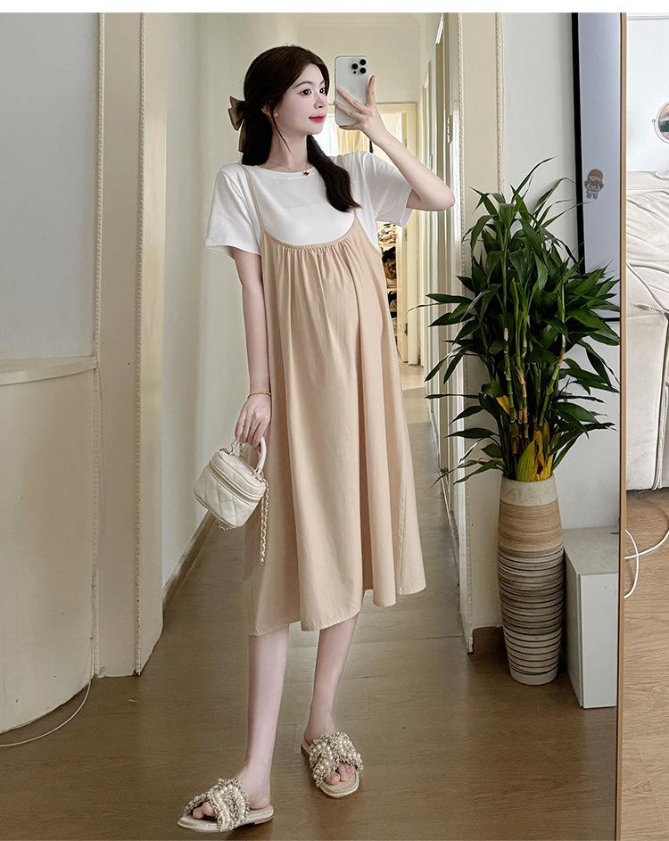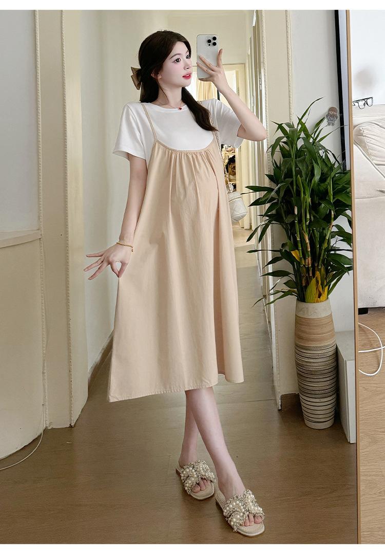 Vestido de verano para embarazadas 2024, nuevo estilo, elegante y holgado, con costuras a la moda, fino y que cubre el vientre.