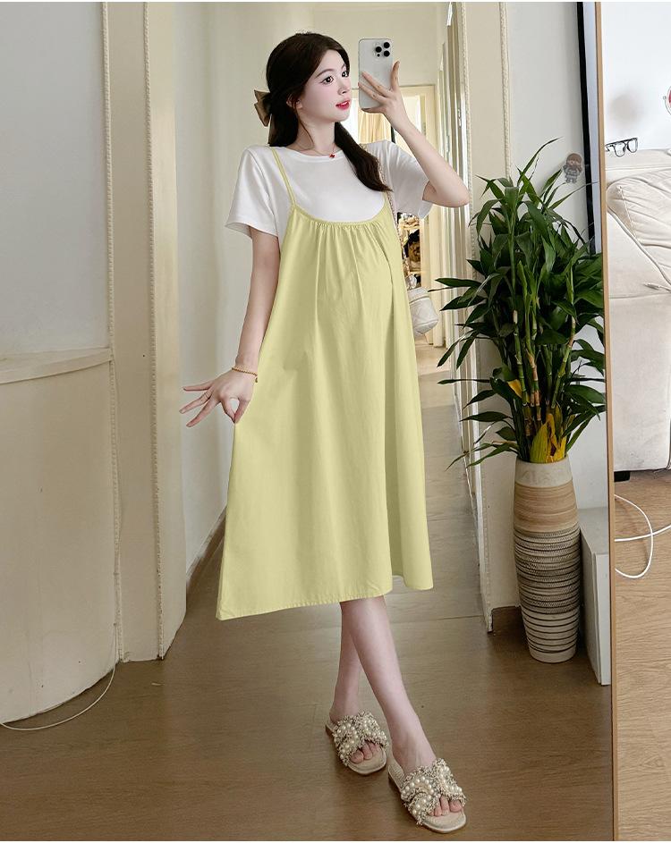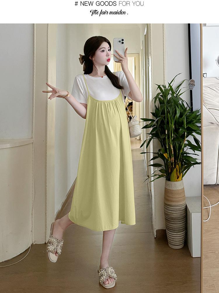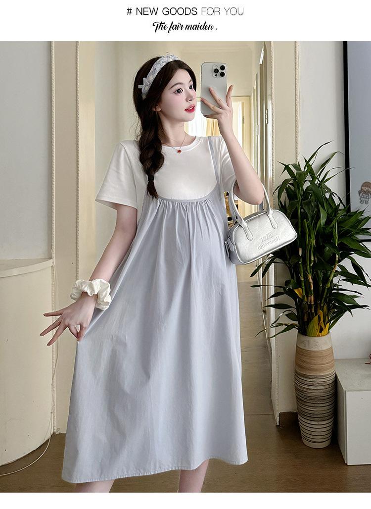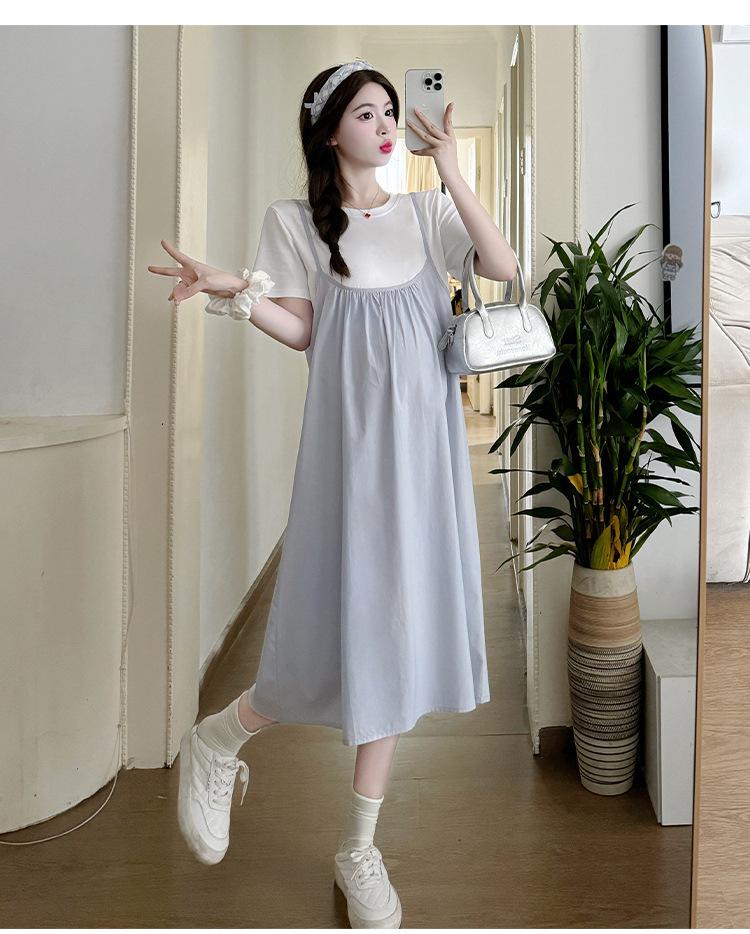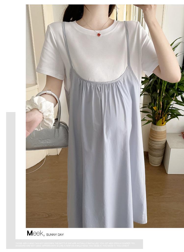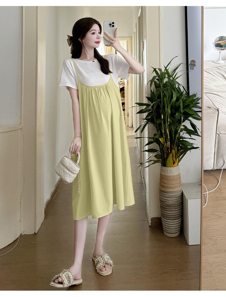 Vestido de verano para embarazadas 2024, nuevo estilo, elegante y holgado, con costuras a la moda, fino y que cubre el vientre.