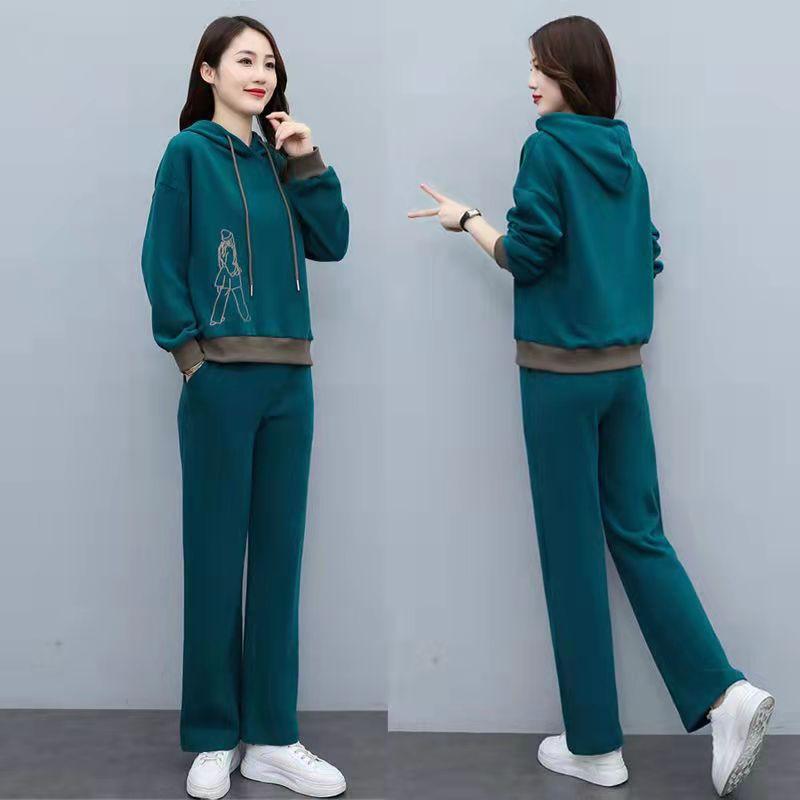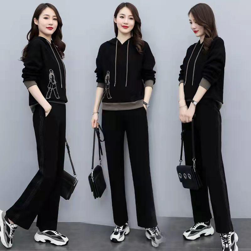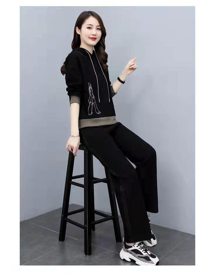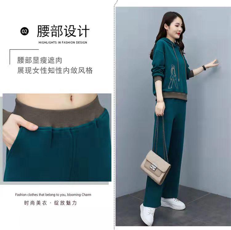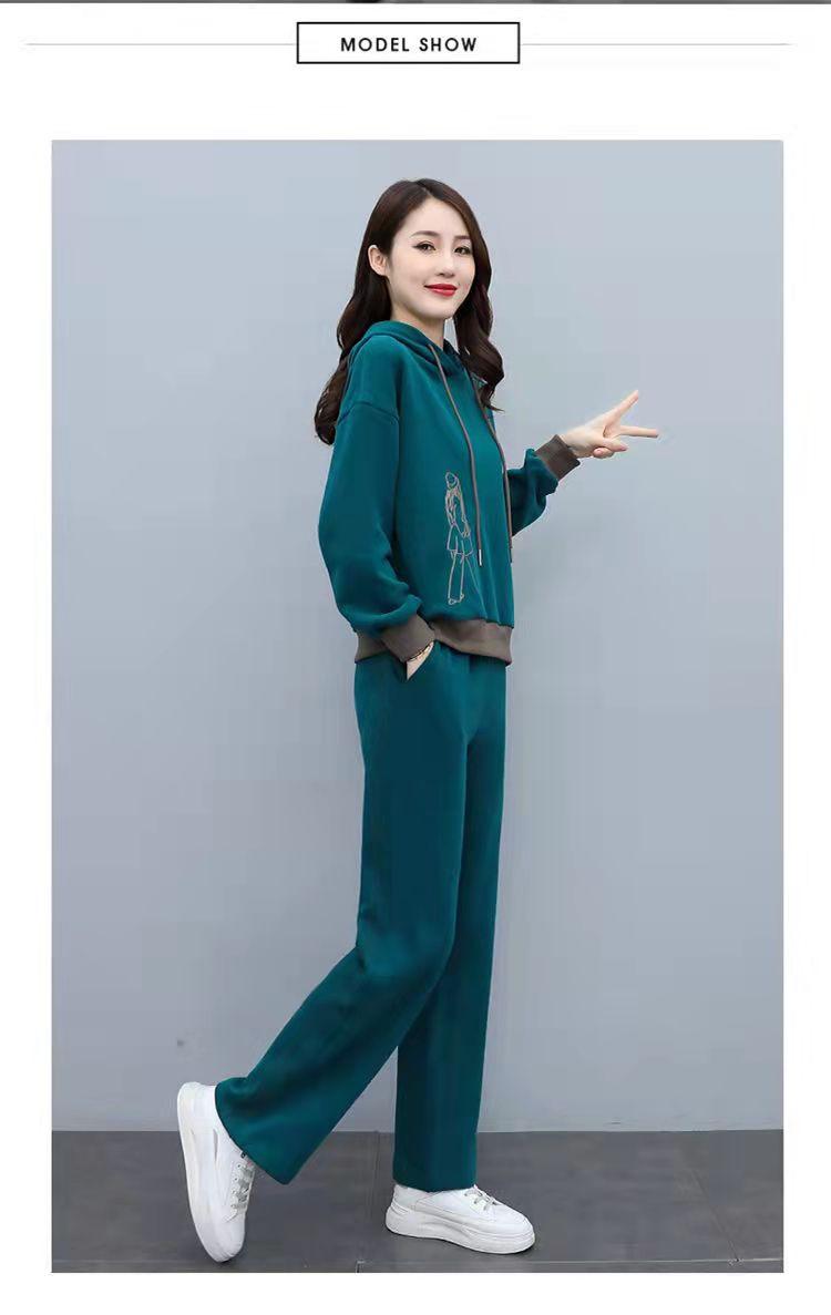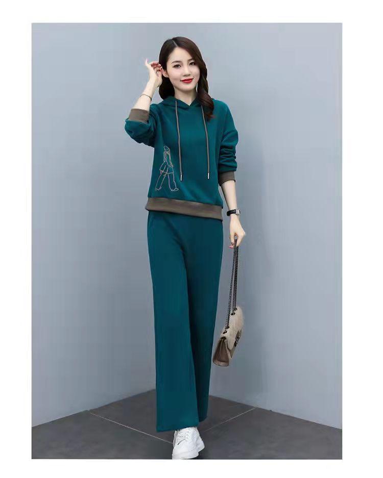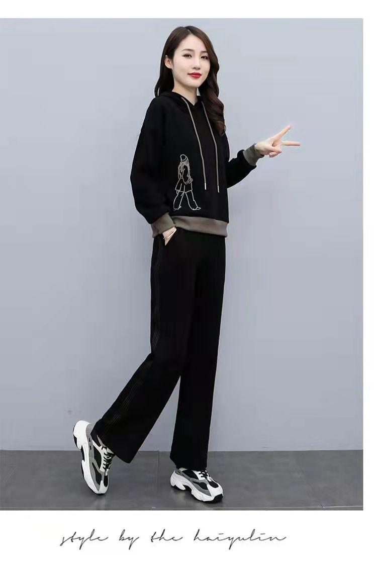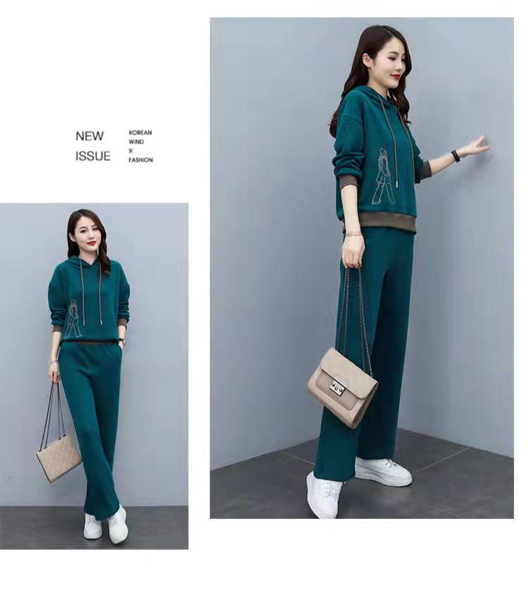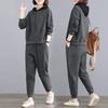 Invierno Nuevo talla grande Suelto Casual Traje deportivo Moda Coreana Sudadera con capucha Jersey Conjunto de dos piezas