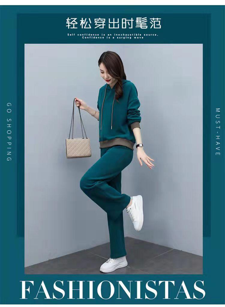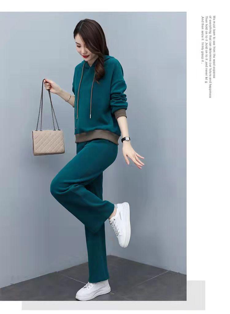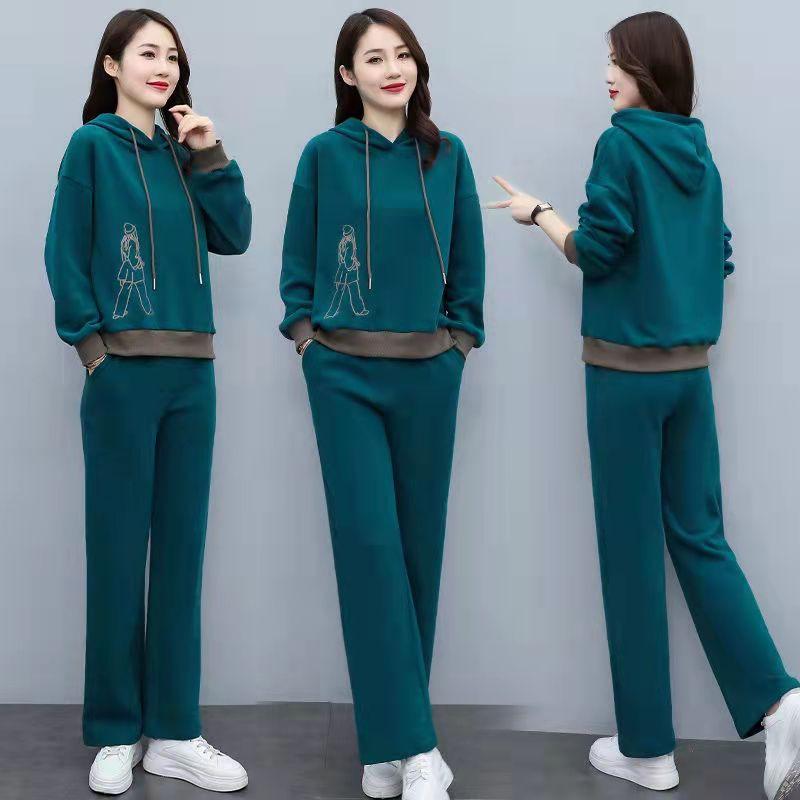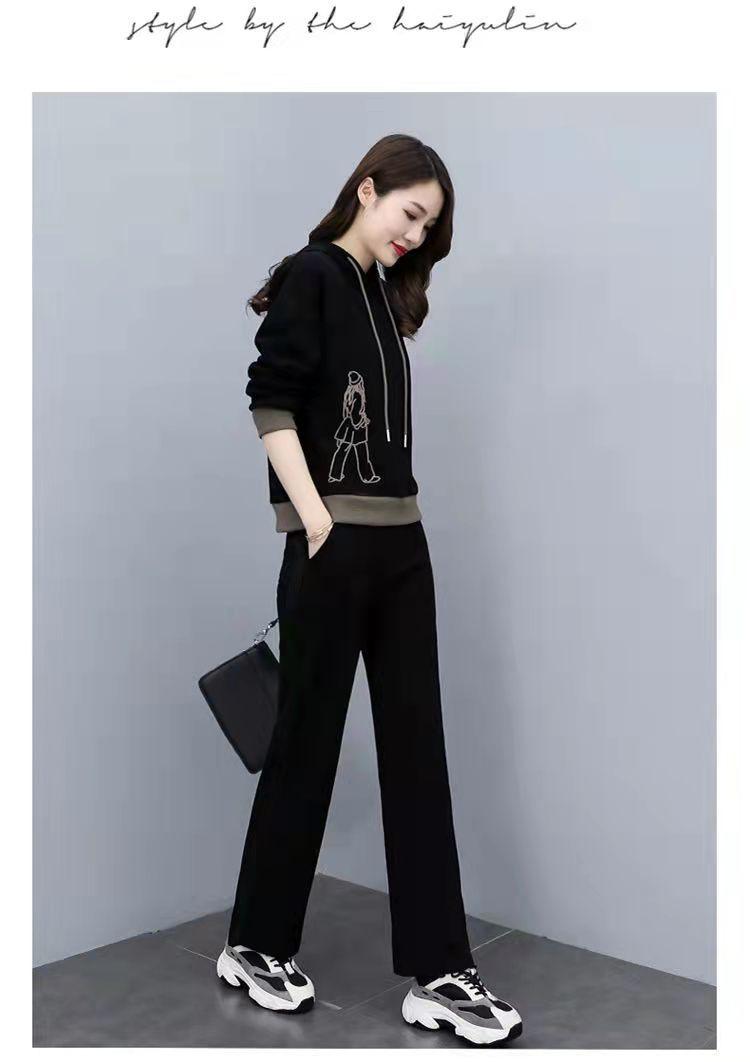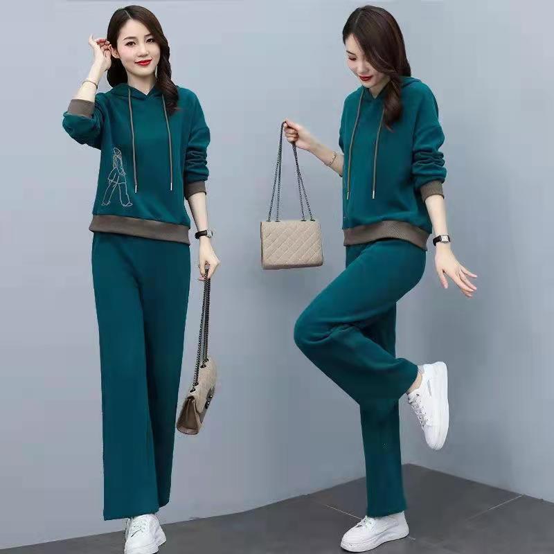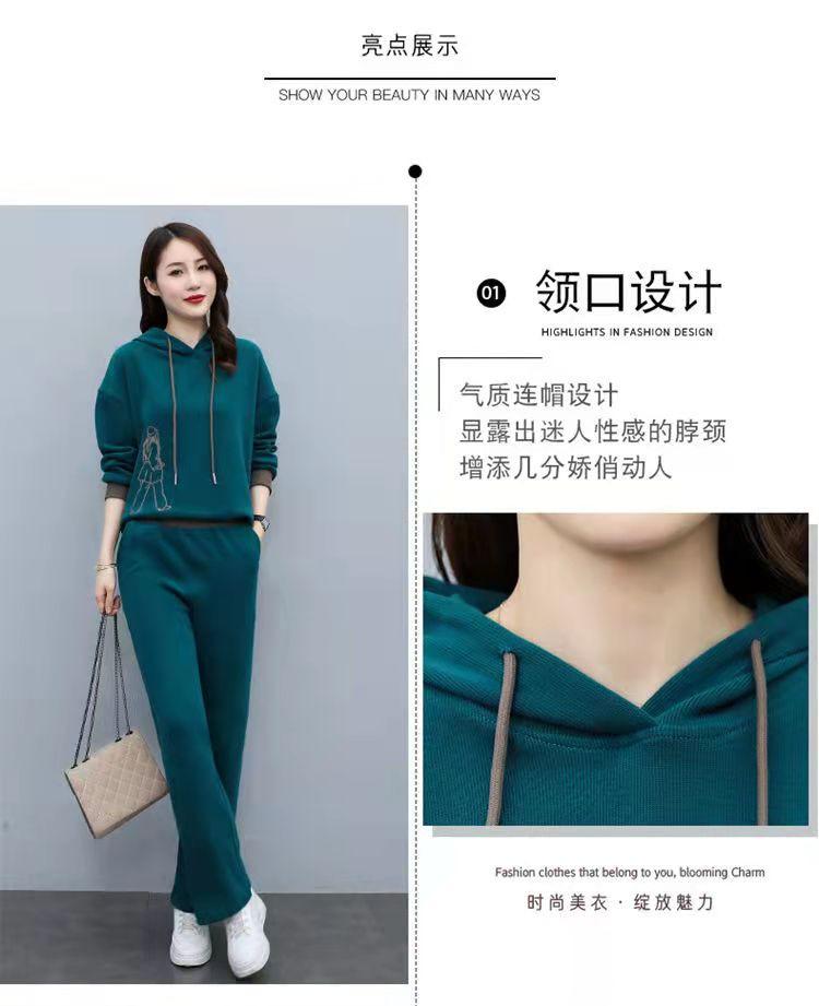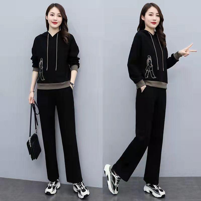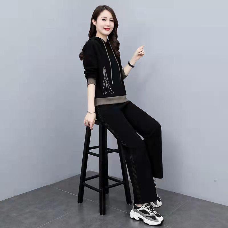 Invierno Nuevo talla grande Suelto Casual Traje deportivo Moda Coreana Sudadera con capucha Jersey Conjunto de dos piezas