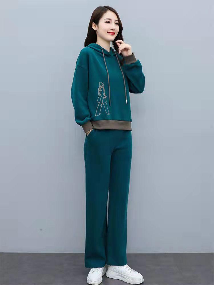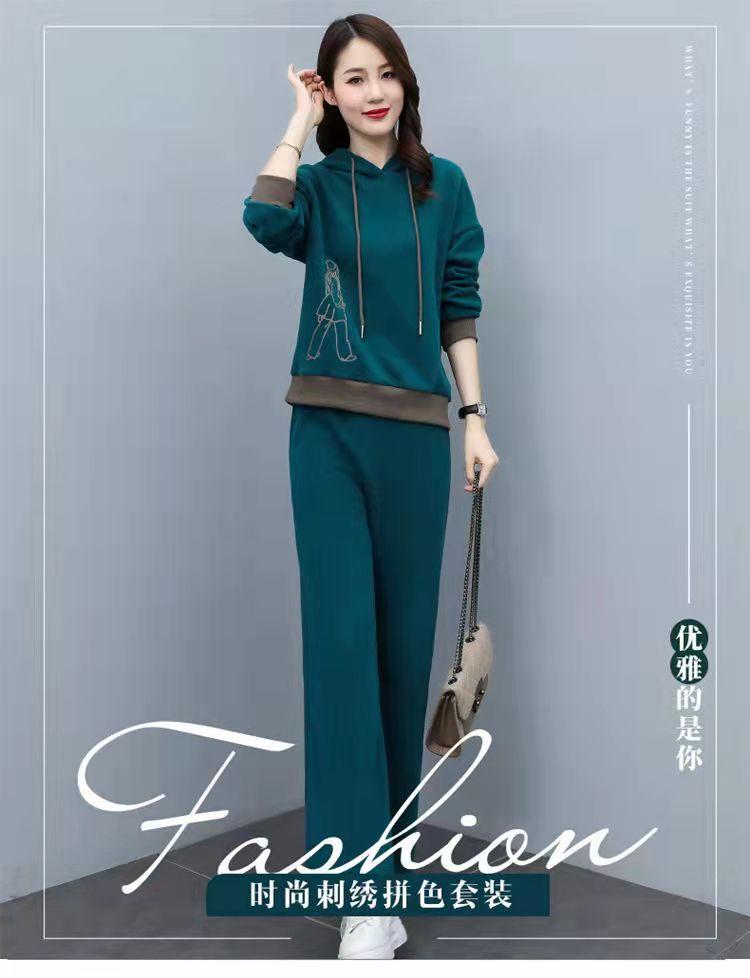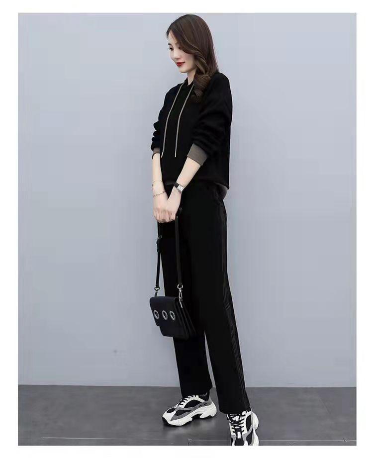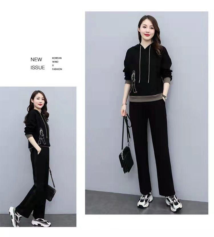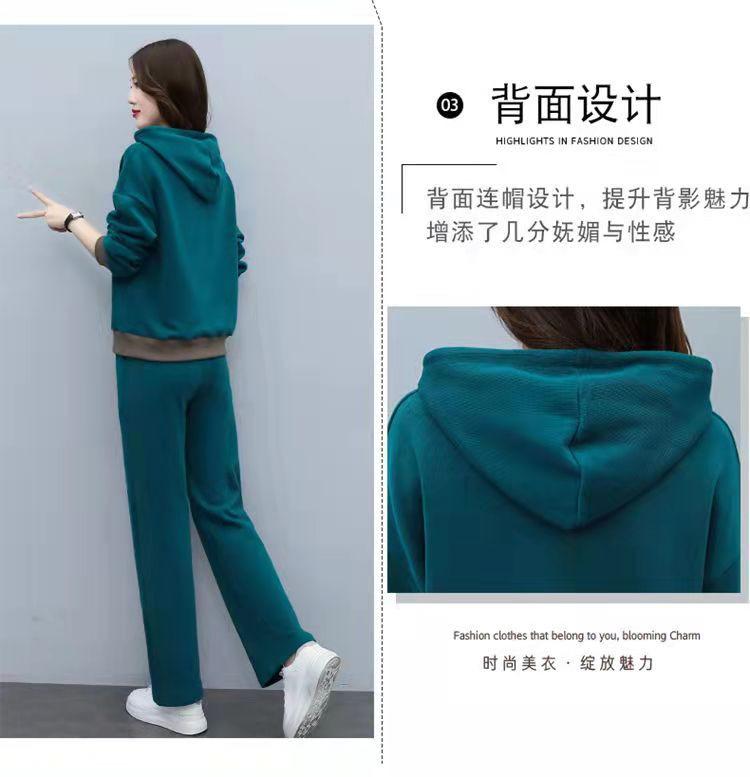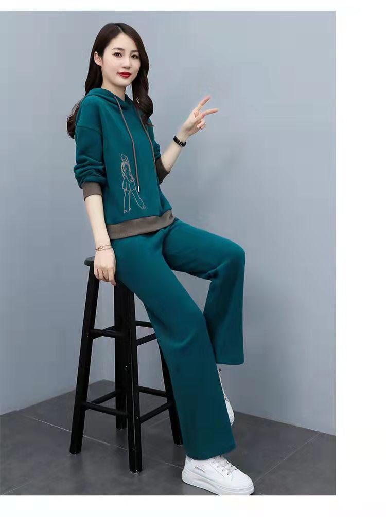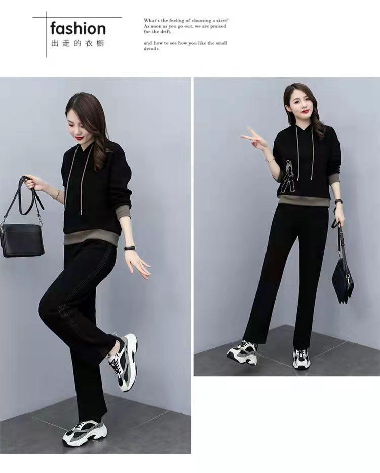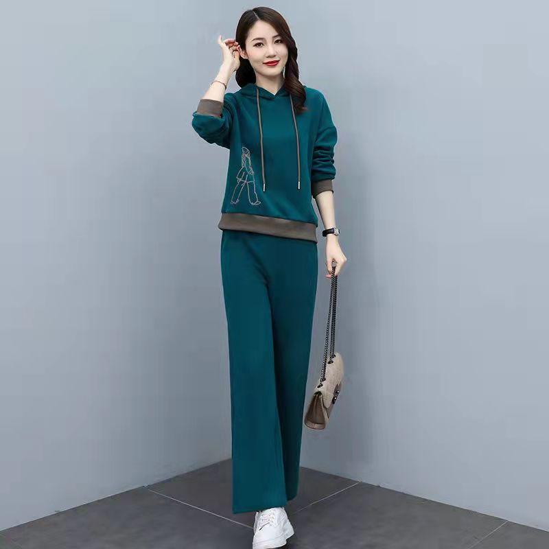 Invierno Nuevo talla grande Suelto Casual Traje deportivo Moda Coreana Sudadera con capucha Jersey Conjunto de dos piezas