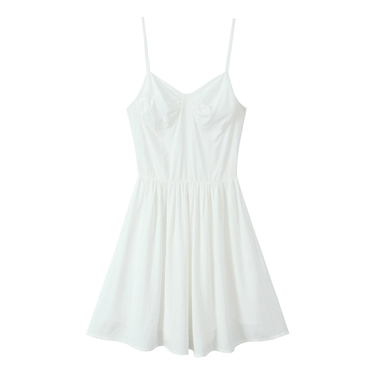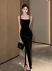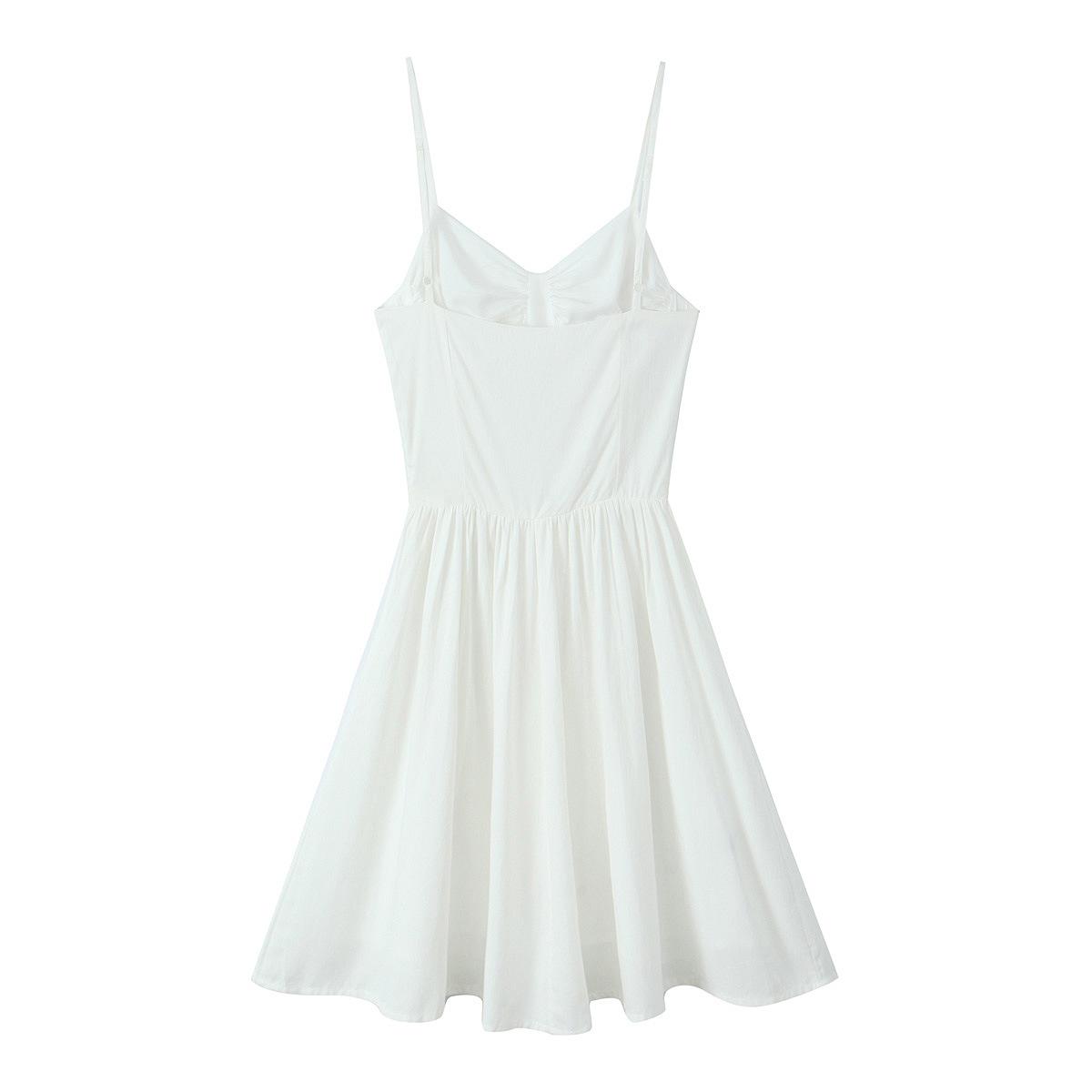 7598-24 Vestido de verano nuevo estilo francés retro elegante con escote en V profundo y falda escotada para vacaciones