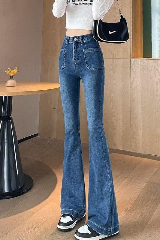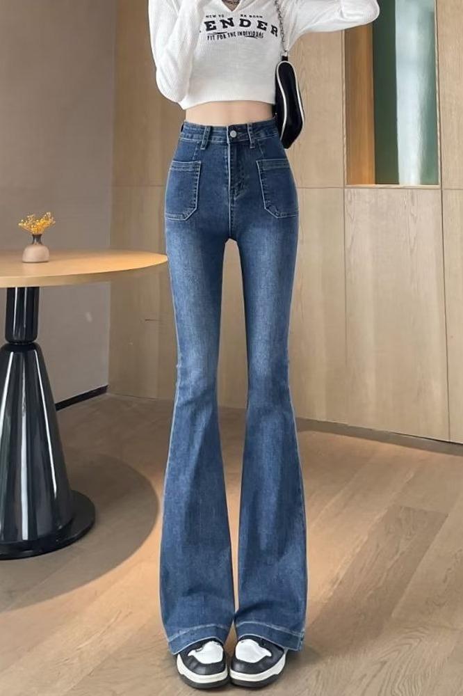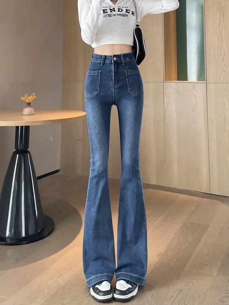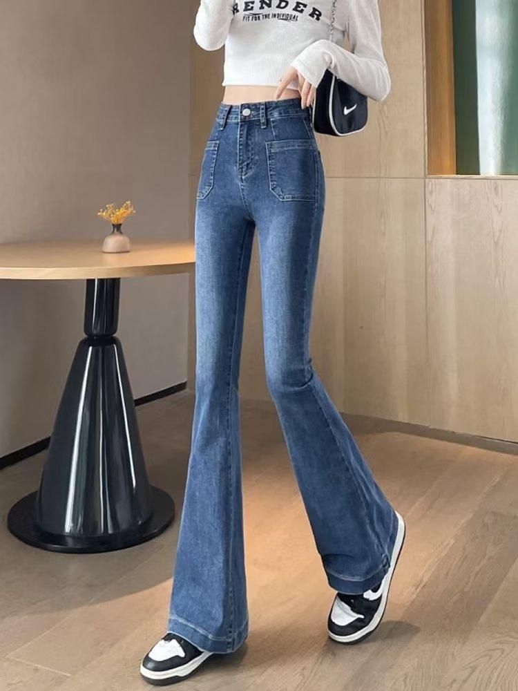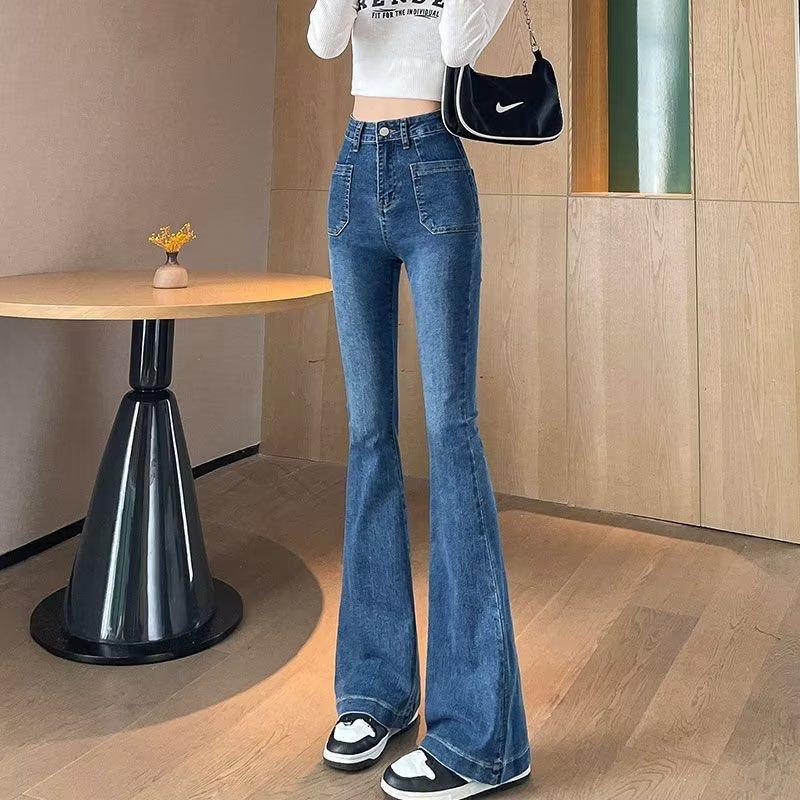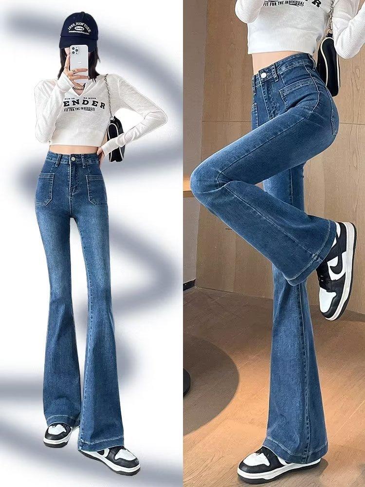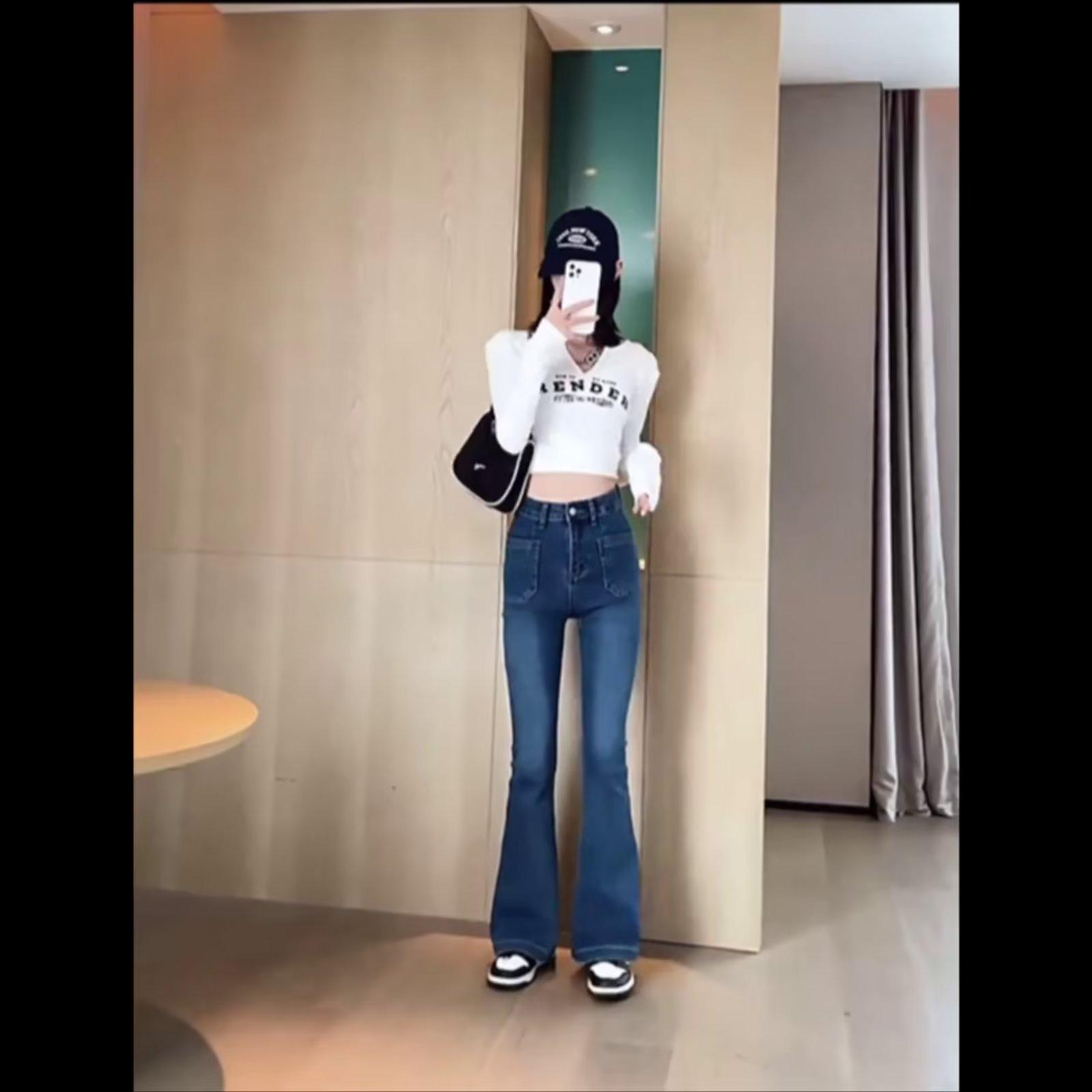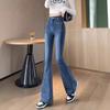 Vaqueros micro acampanados para mujer, otoño 2024, nuevos, cintura alta, ajustados, pequeños, de nueve puntos, pierna ancha, pantalones de invierno