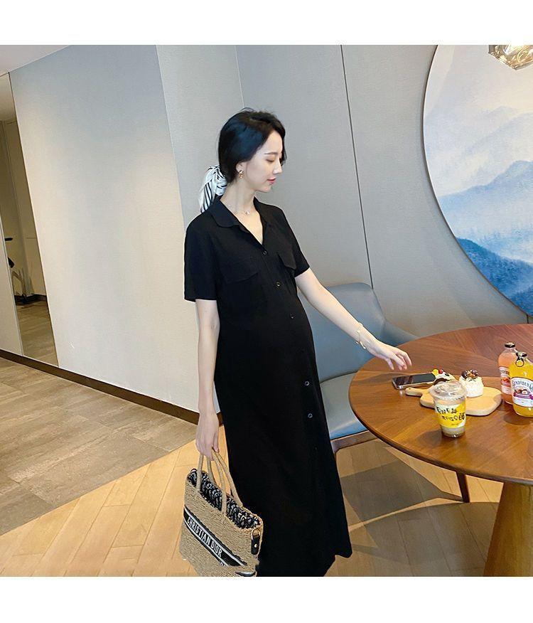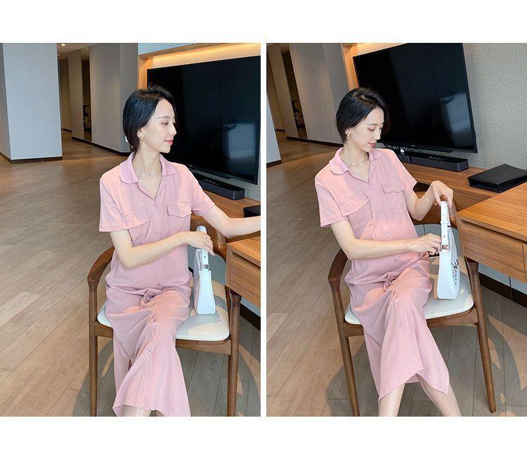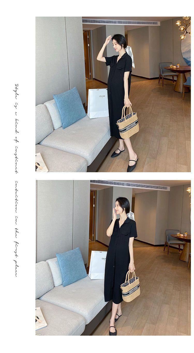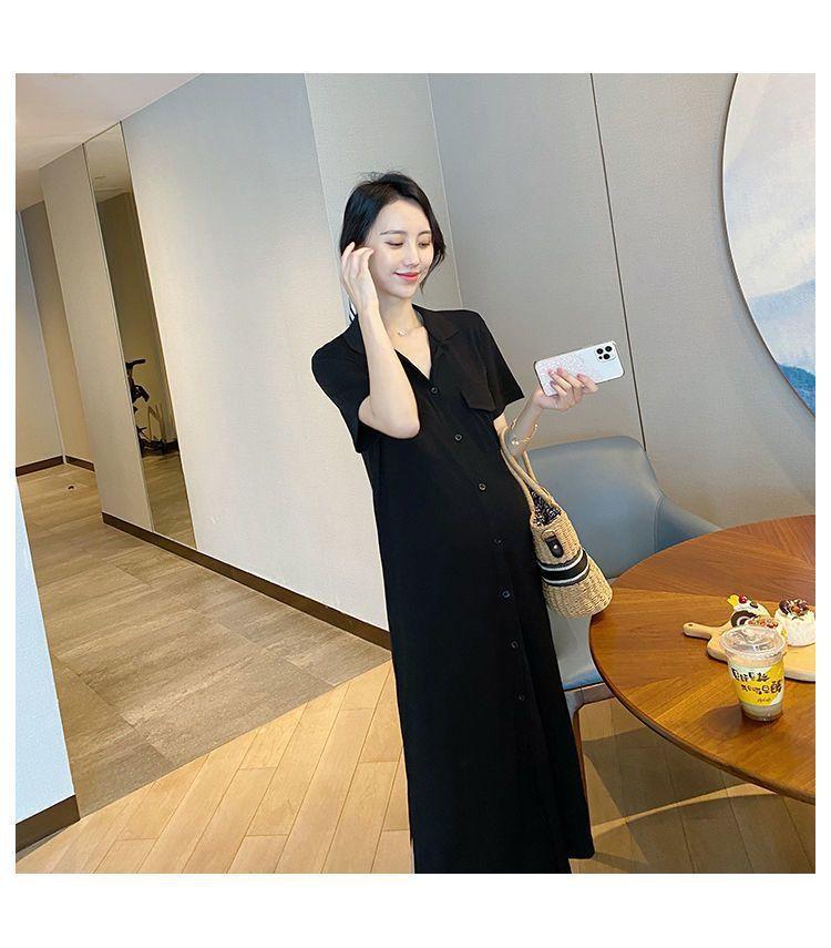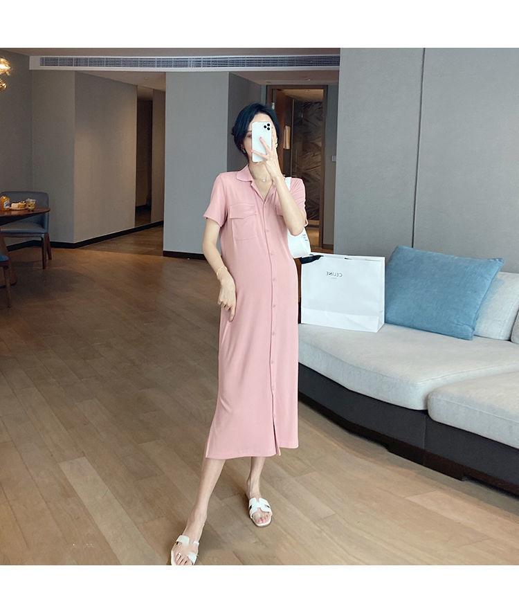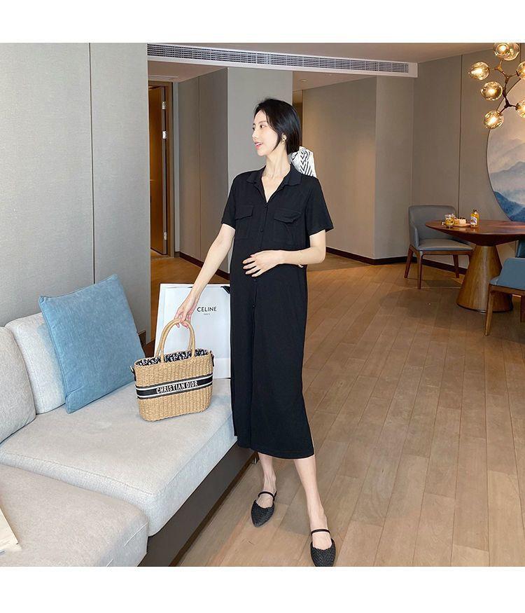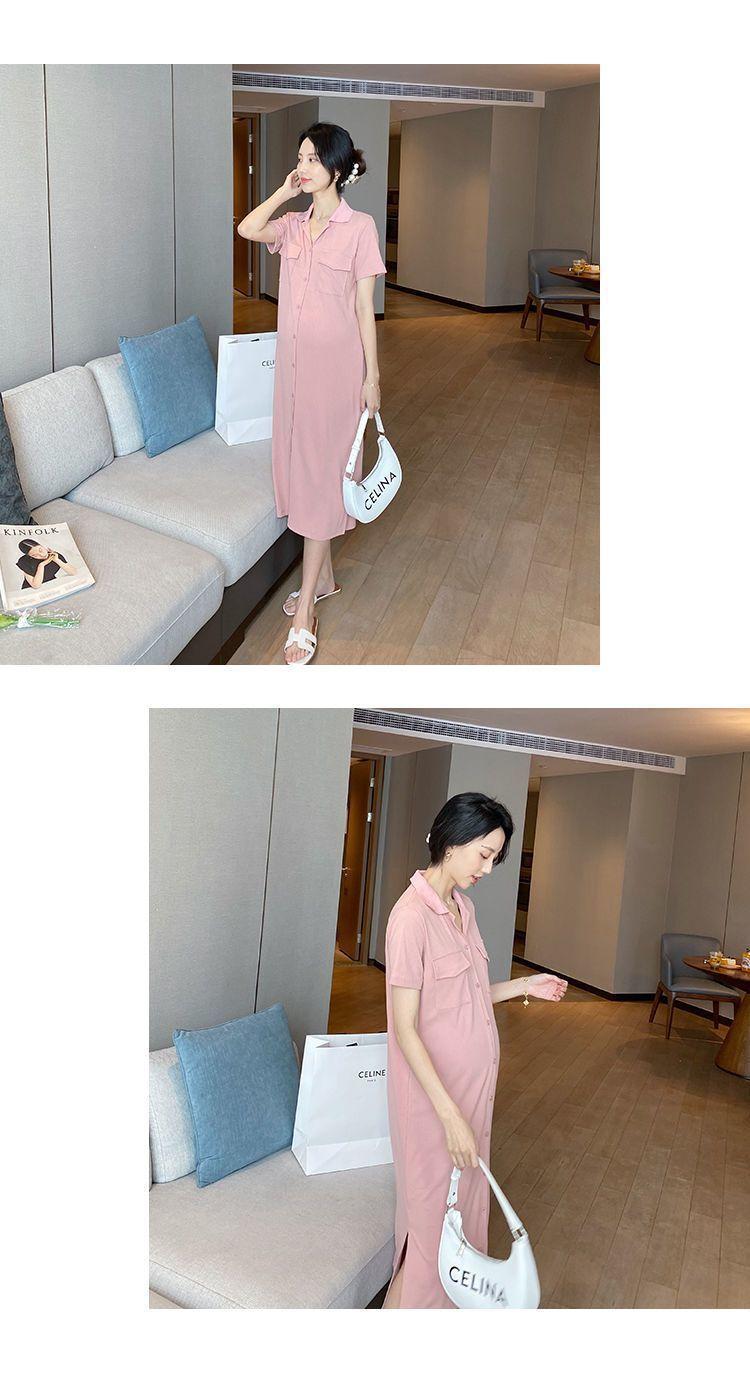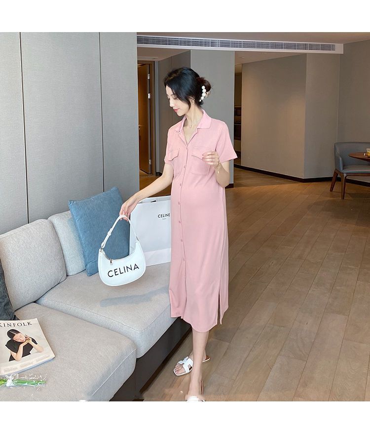 [Embarazo + lactancia] Vestido de mujer embarazada 2023 Verano nuevo vestido de lactancia holgado de largo medio con abertura