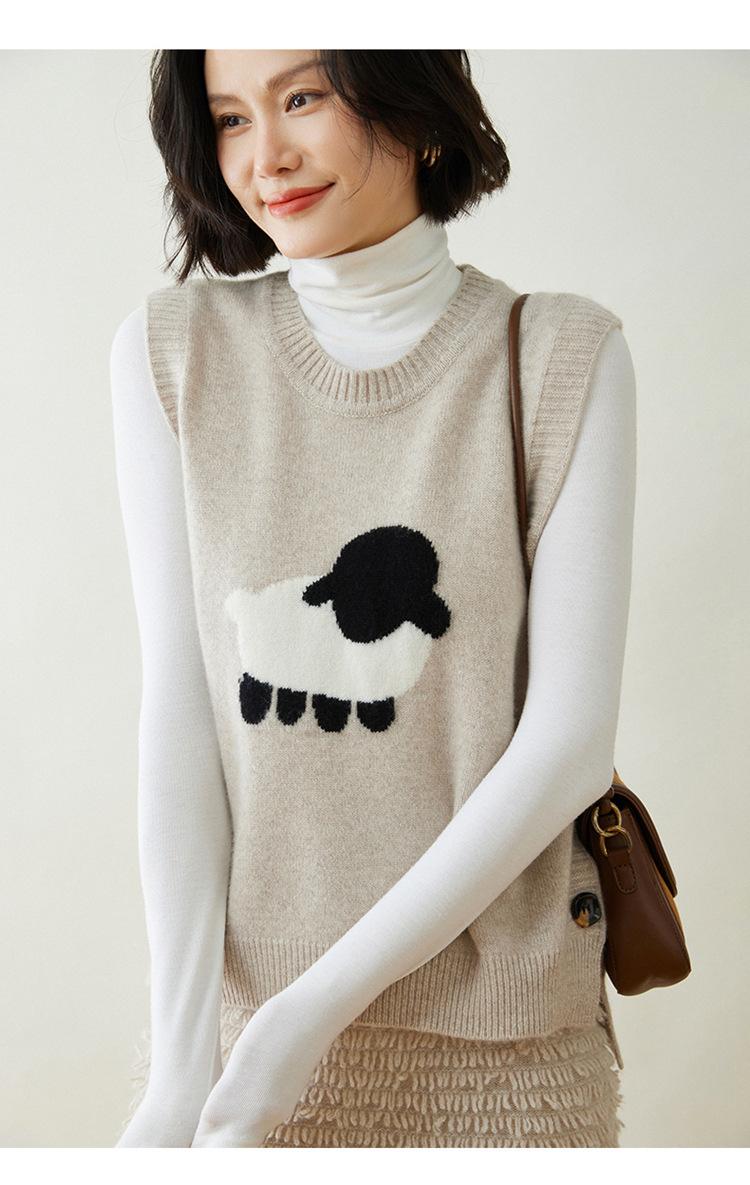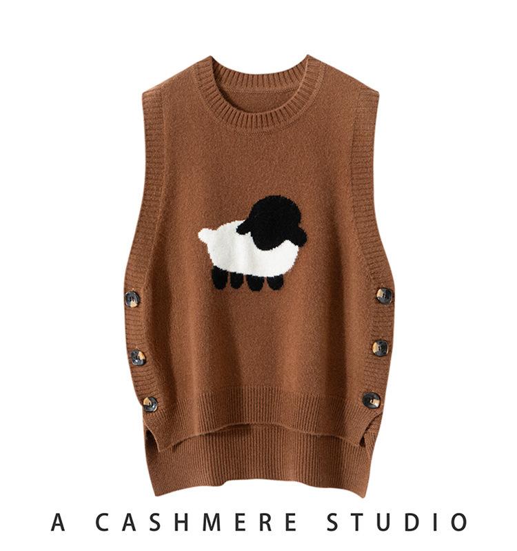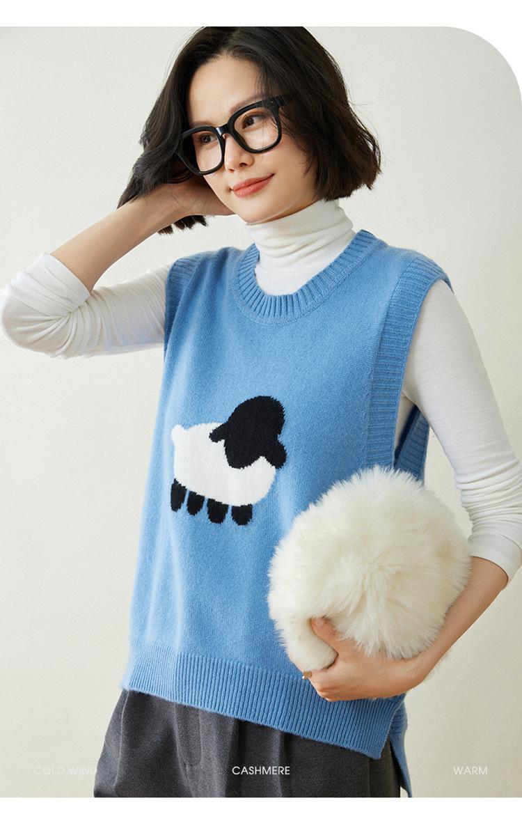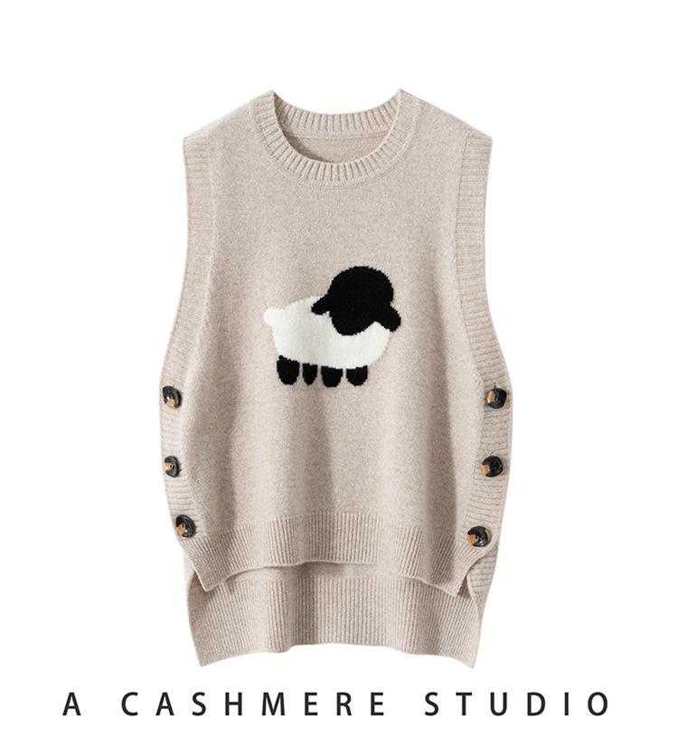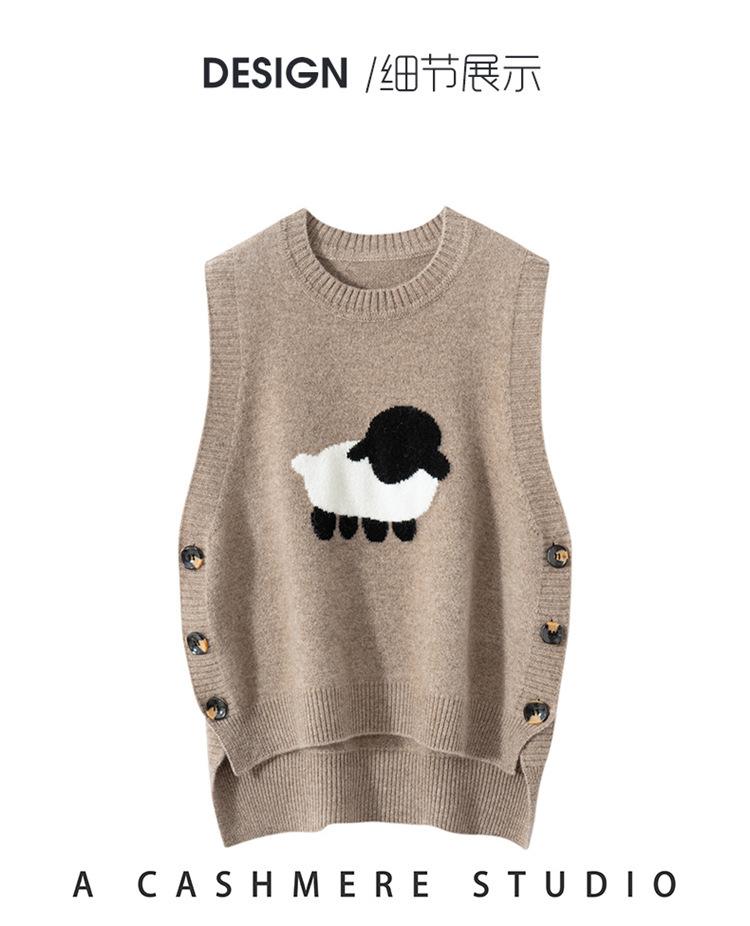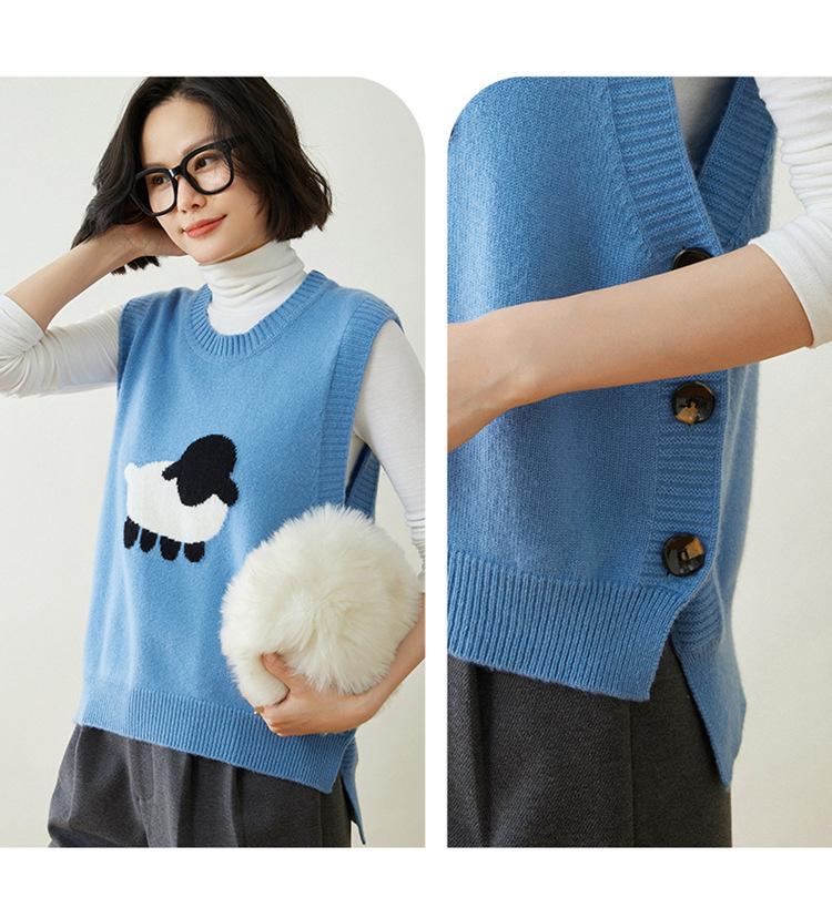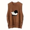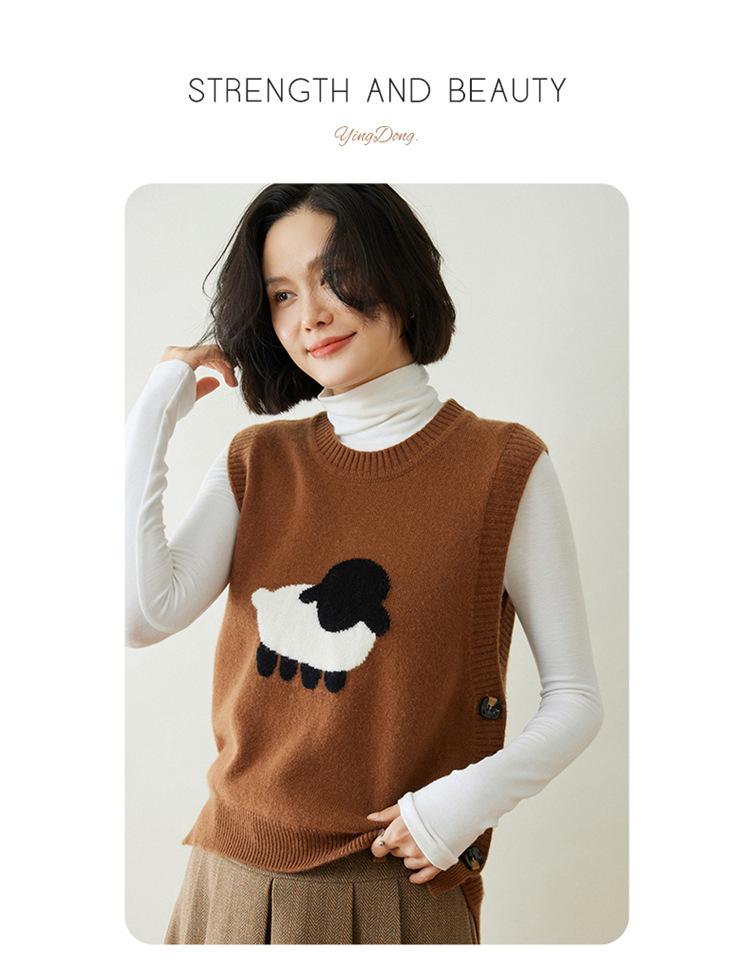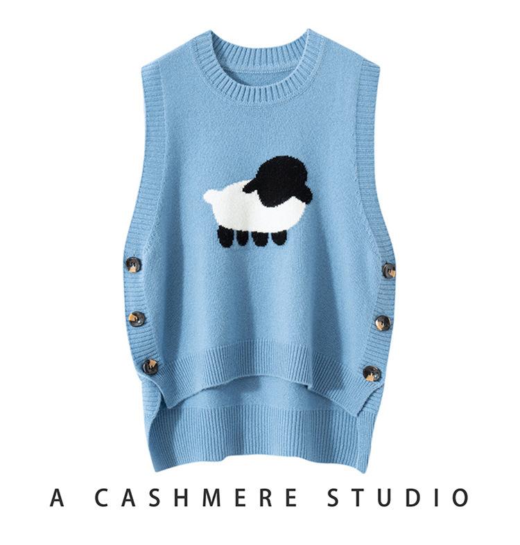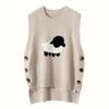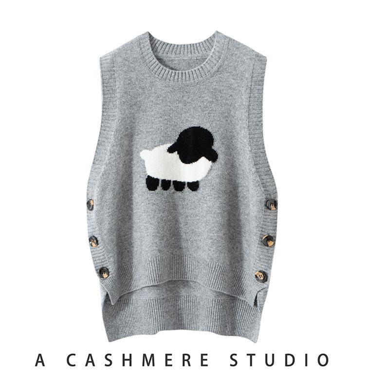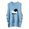 Chaleco de Moda Reductor de Edad Estilo Universitario Jacquard de Cordero Tejido de Cachemira Frente Corto Trasero Largo para Mujer Chaleco Holgado sin Mangas Chaleco
