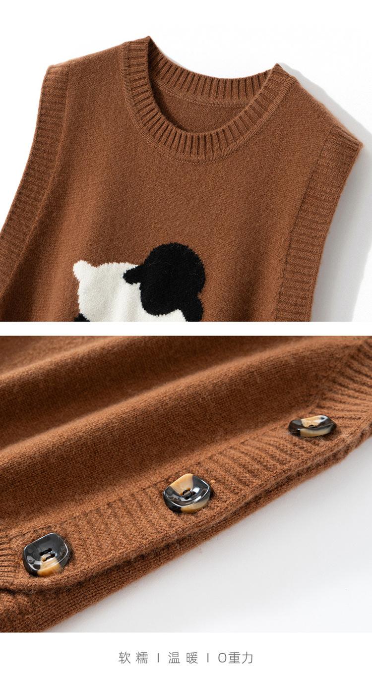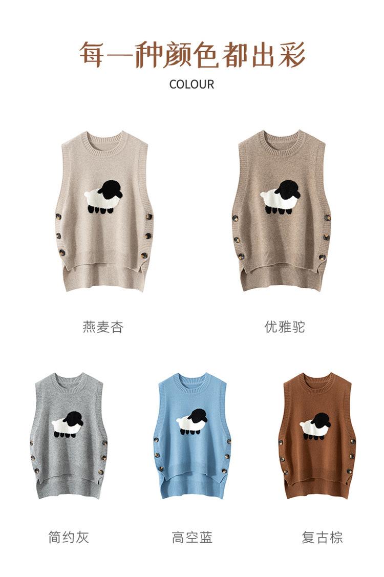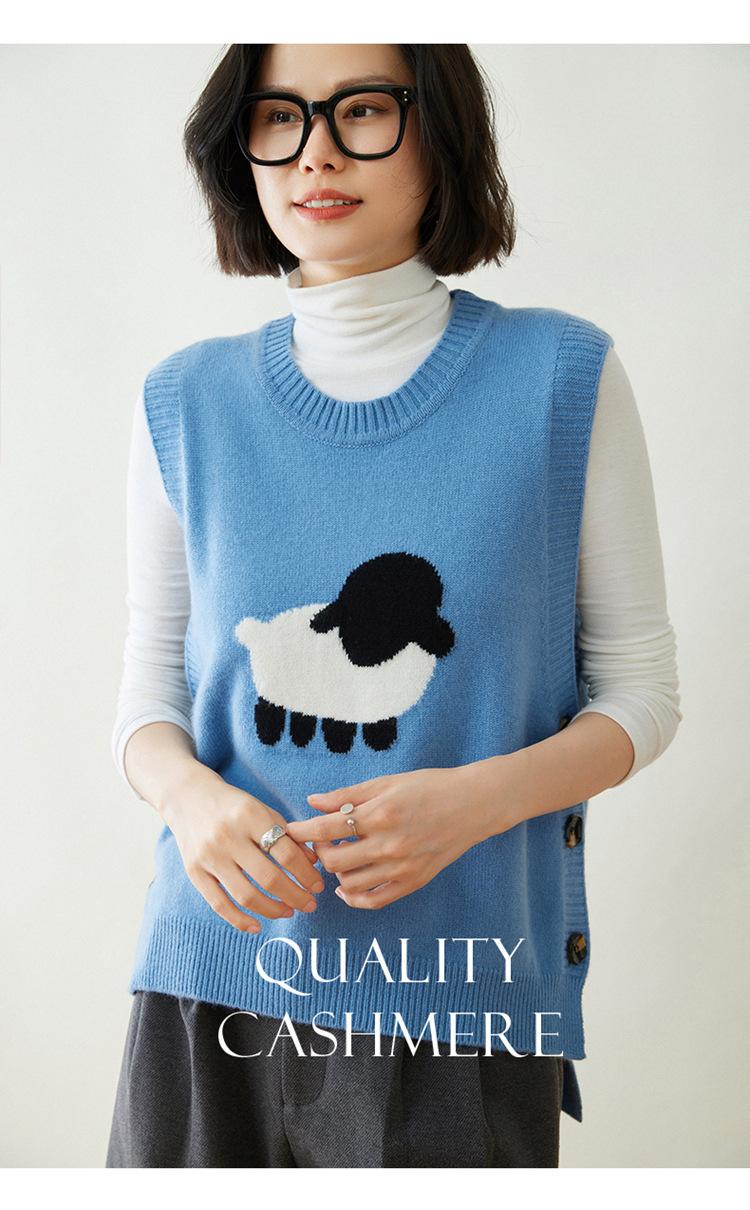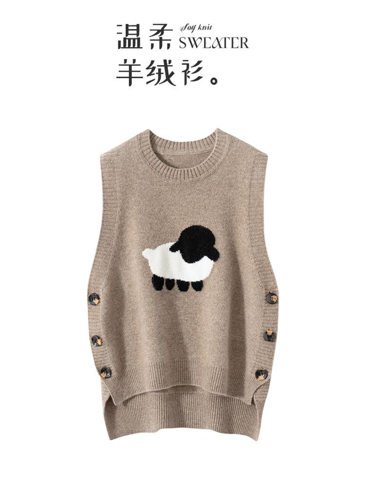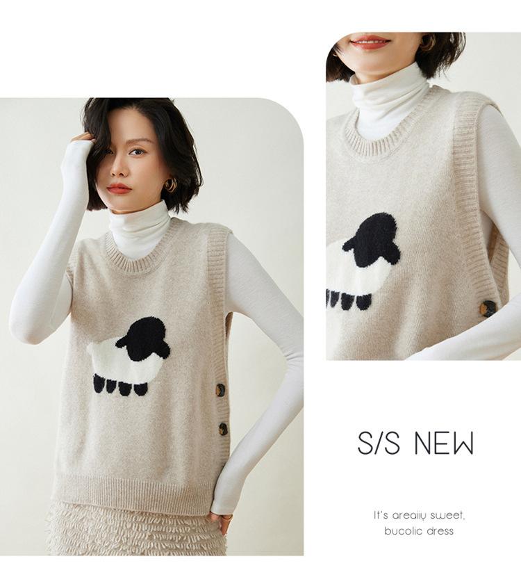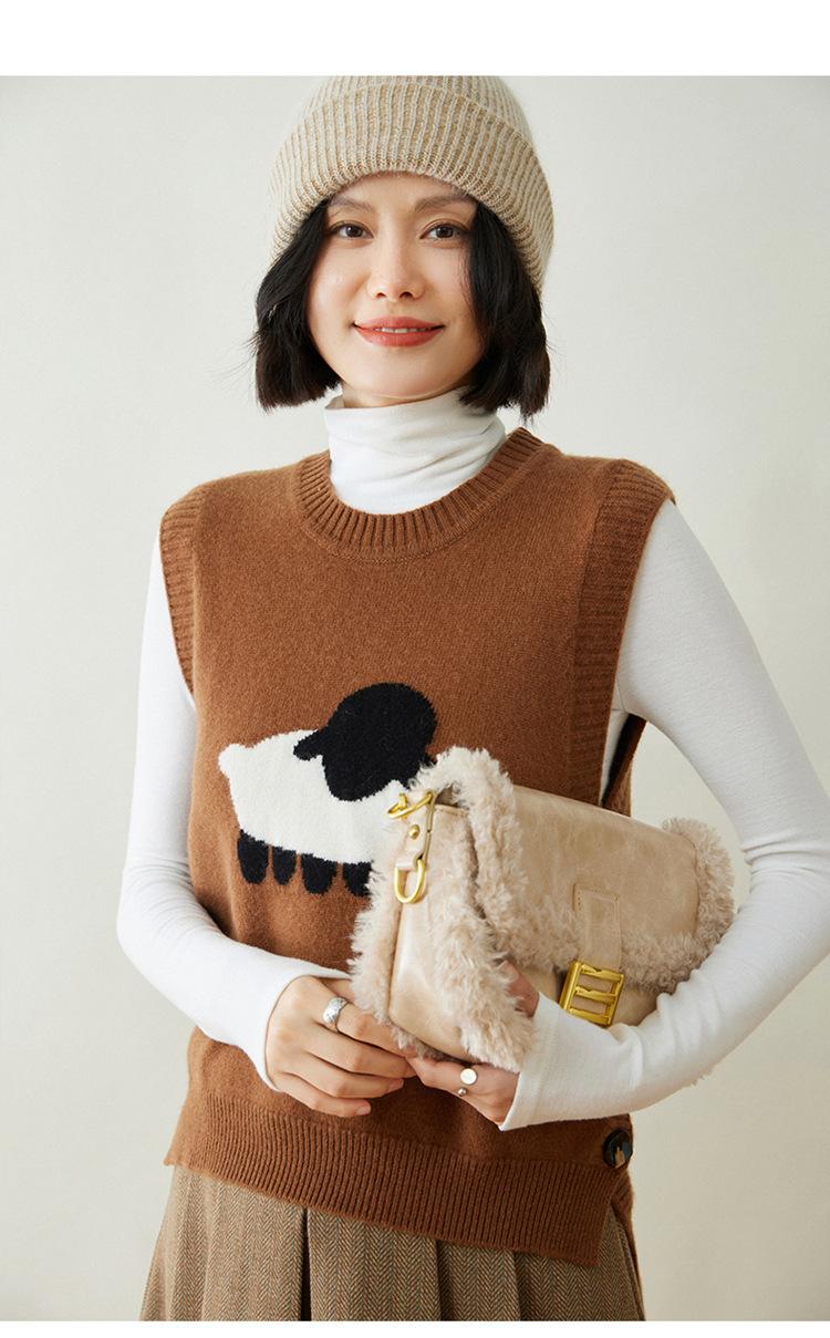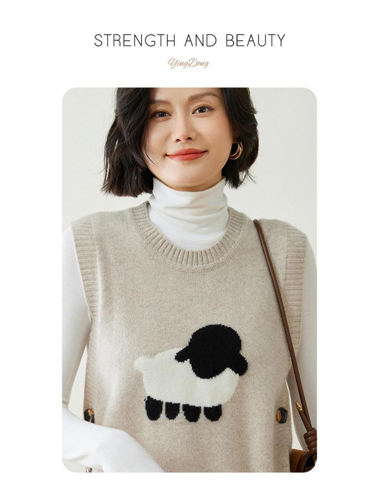 Chaleco de Moda Reductor de Edad Estilo Universitario Jacquard de Cordero Tejido de Cachemira Frente Corto Trasero Largo para Mujer Chaleco Holgado sin Mangas Chaleco