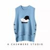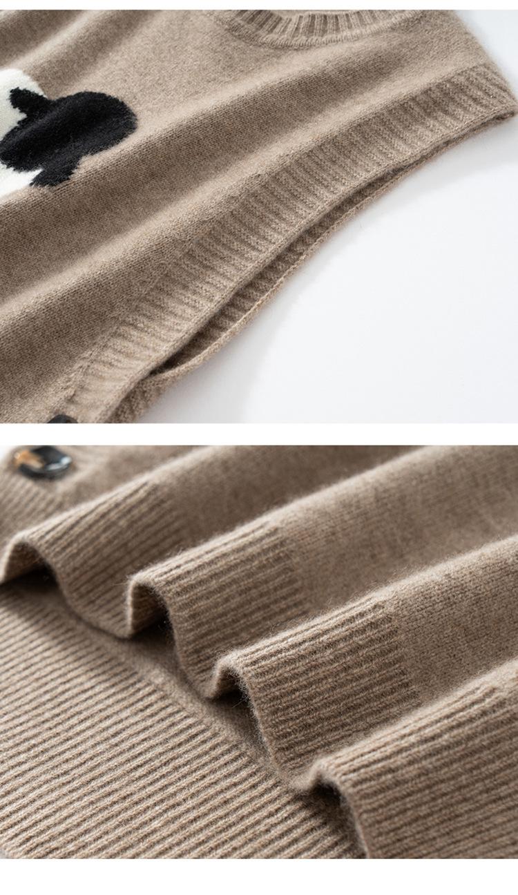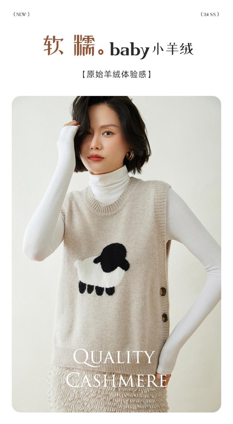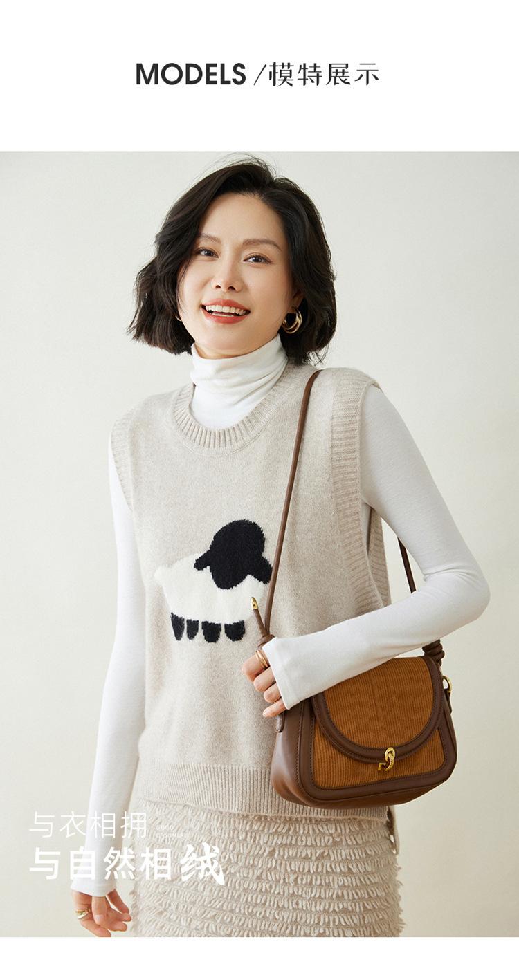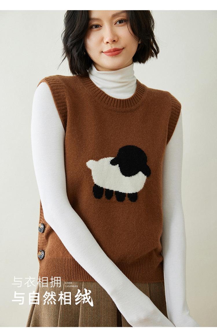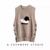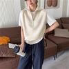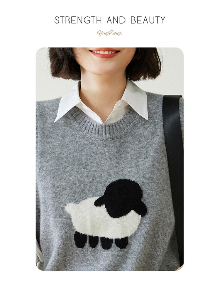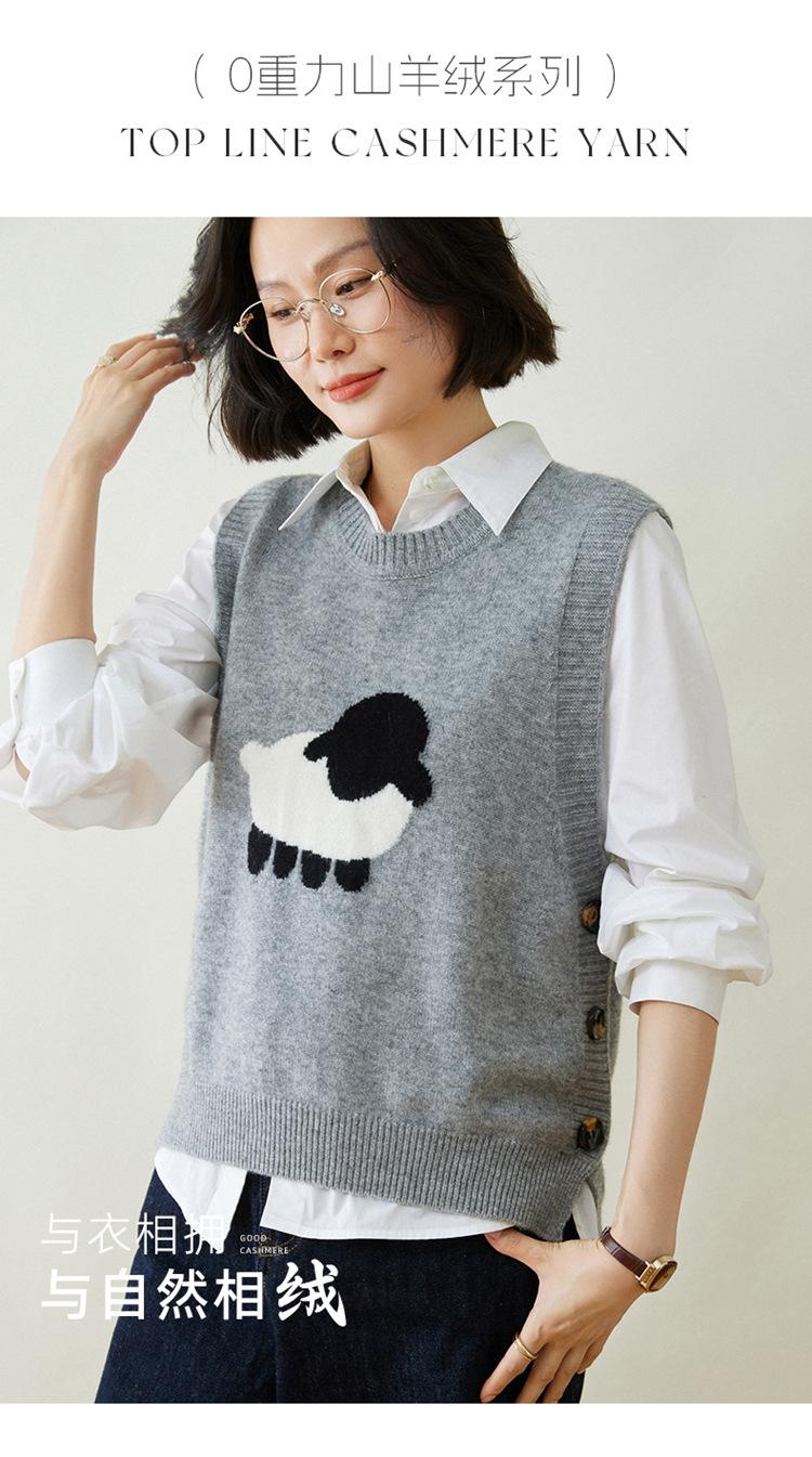 Chaleco de Moda Reductor de Edad Estilo Universitario Jacquard de Cordero Tejido de Cachemira Frente Corto Trasero Largo para Mujer Chaleco Holgado sin Mangas Chaleco