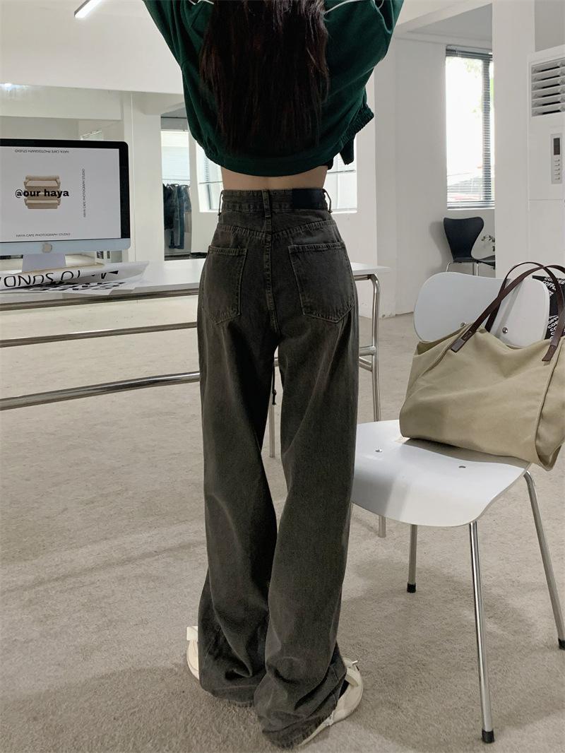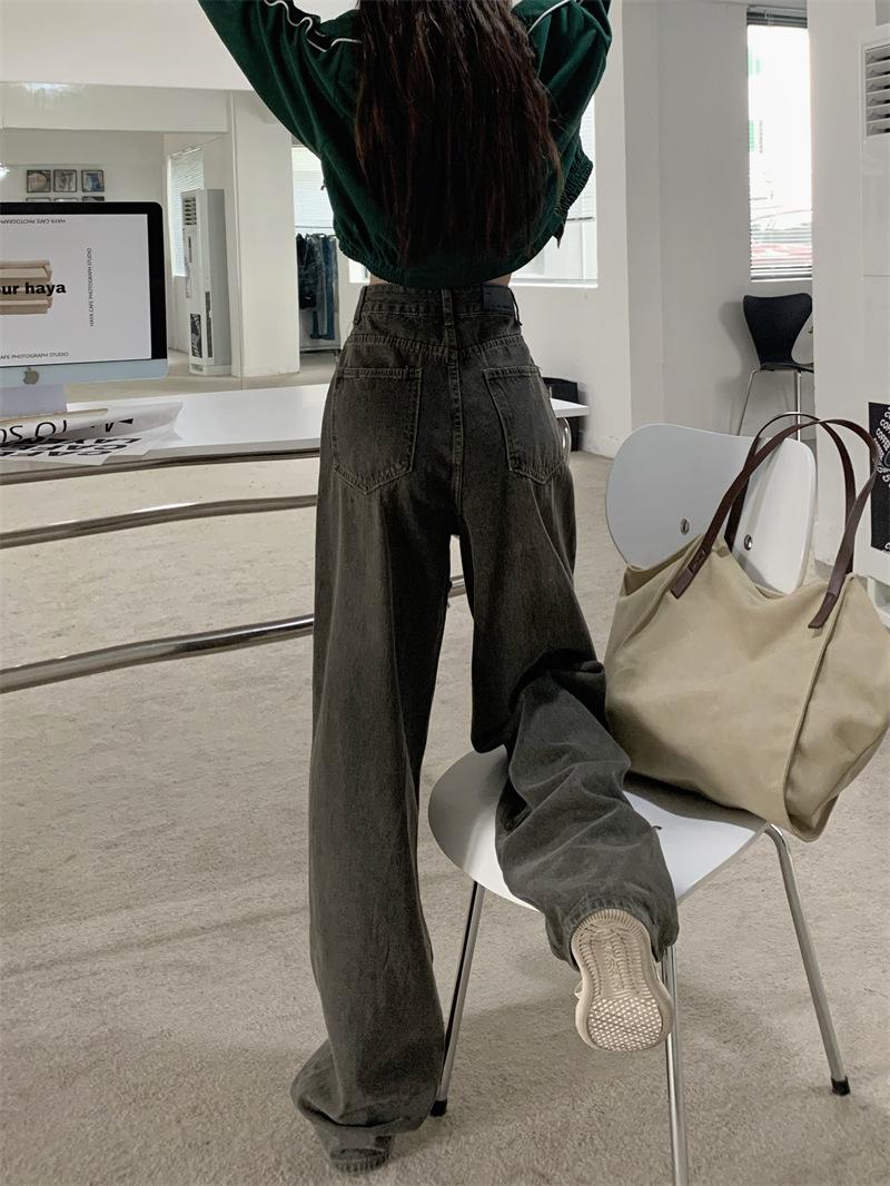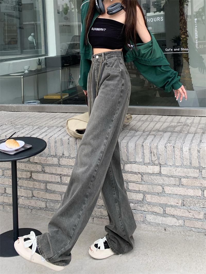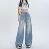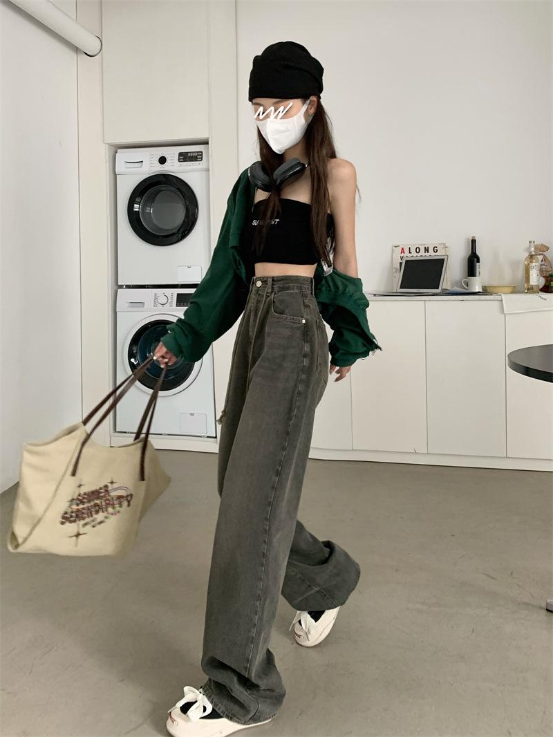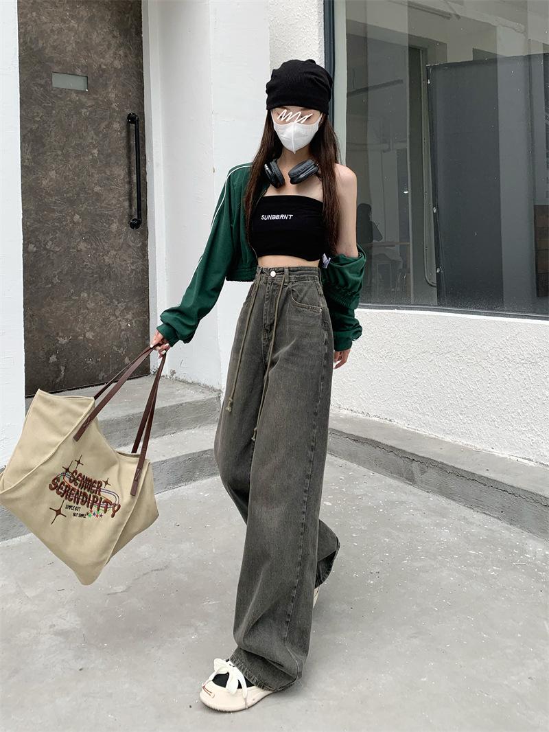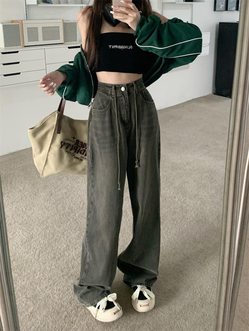 Jeans Retro Americanos Mujer Primavera Temprana 2024 Nuevos Pantalones Anchos Holgados con Cordón de Cintura Alta