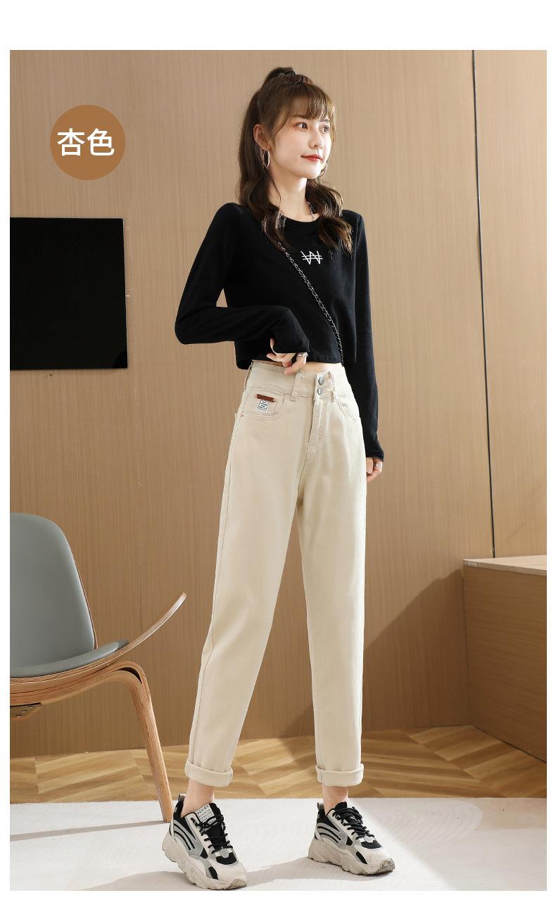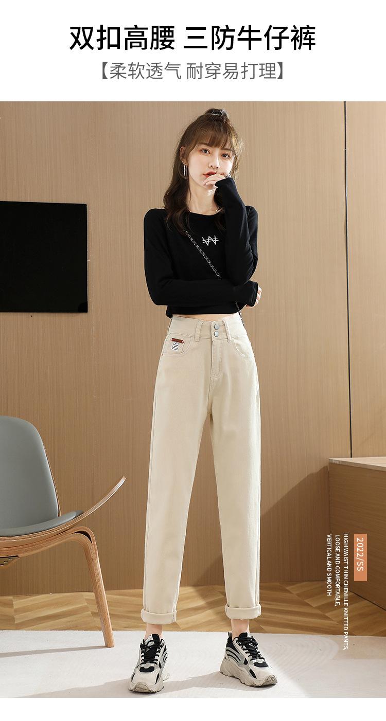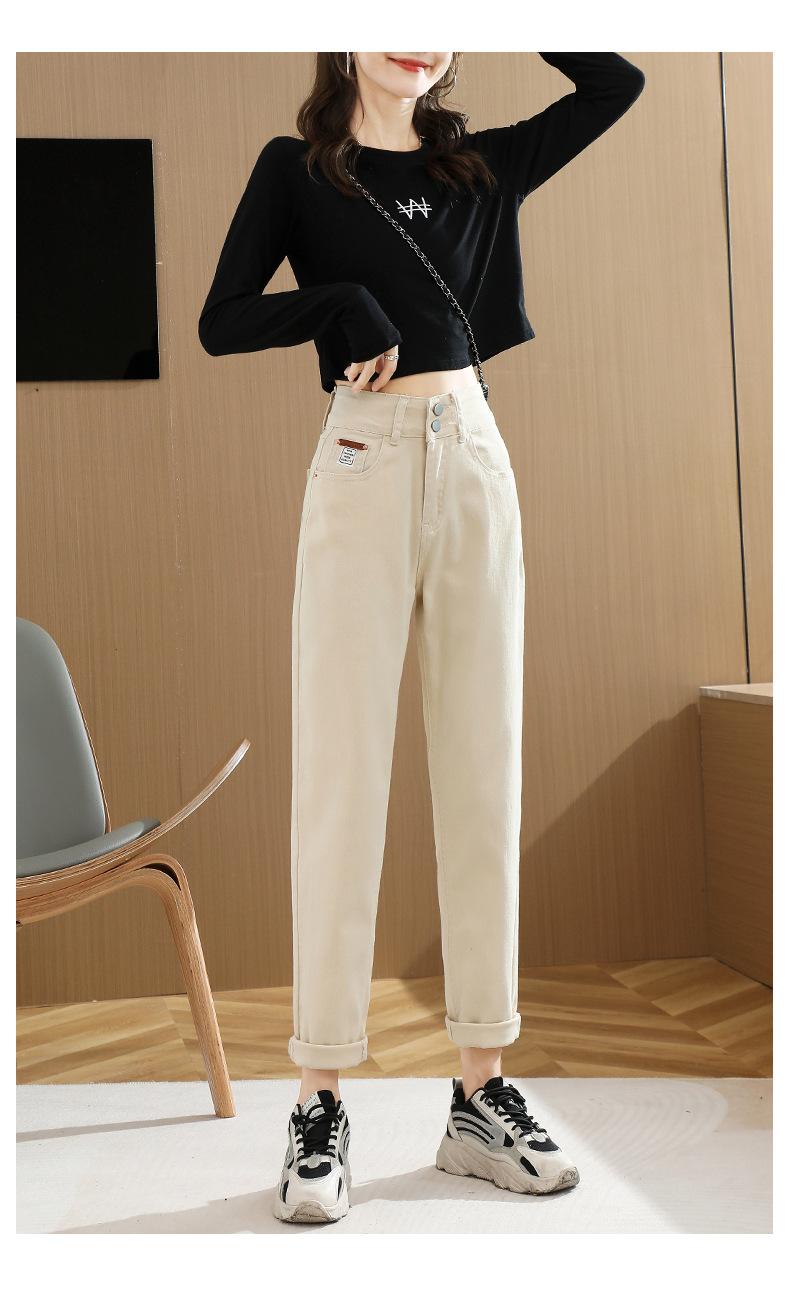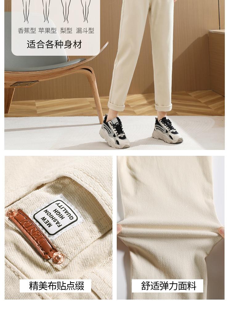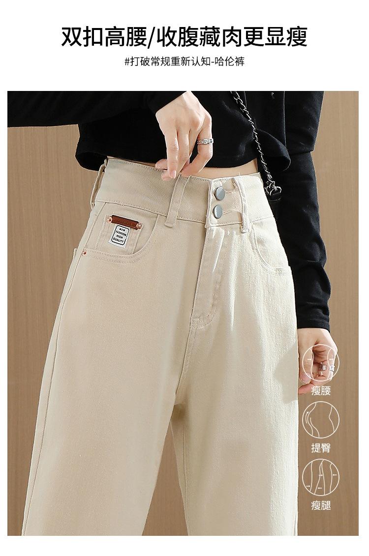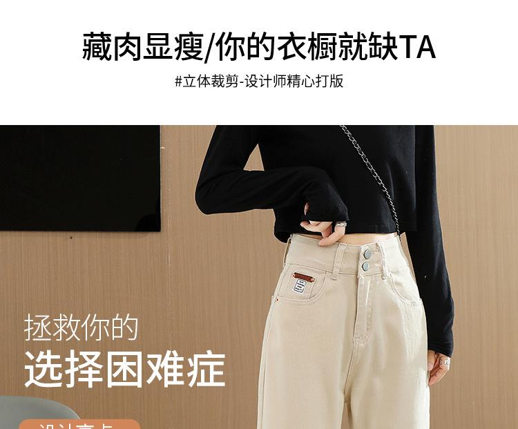Jeans de tres pruebas para mujer Primavera y Otoño 2024 Nuevos pantalones harén rectos de cintura alta color albaricoque adelgazantes E926