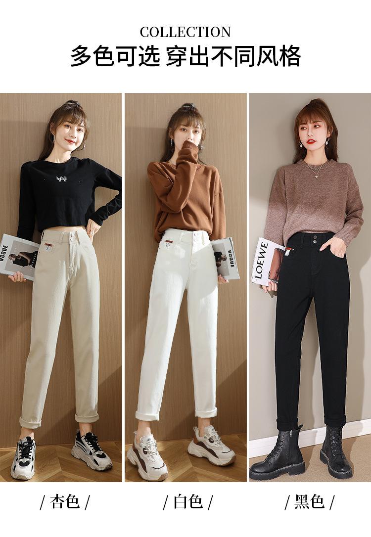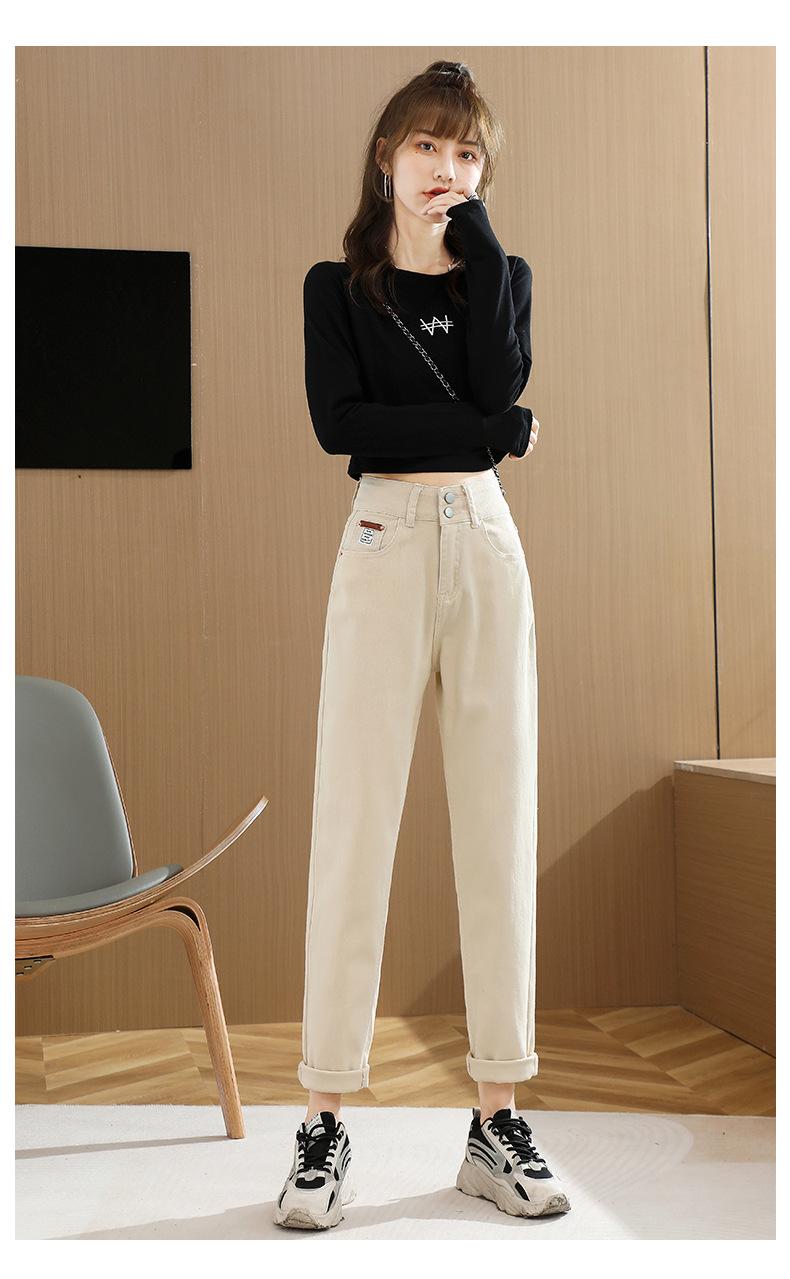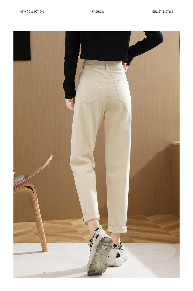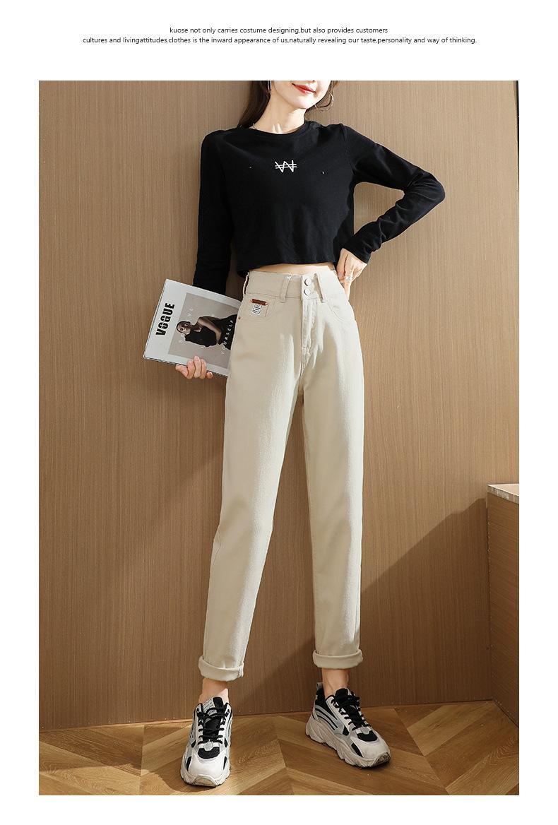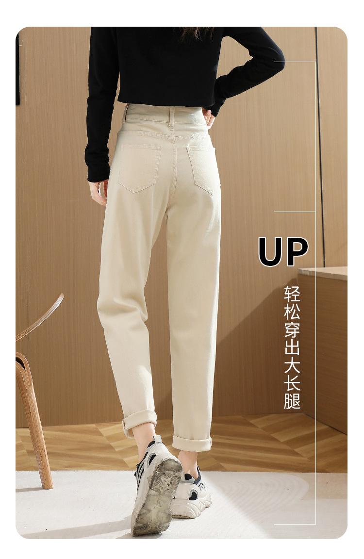 Jeans de tres pruebas para mujer Primavera y Otoño 2024 Nuevos pantalones harén rectos de cintura alta color albaricoque adelgazantes E926