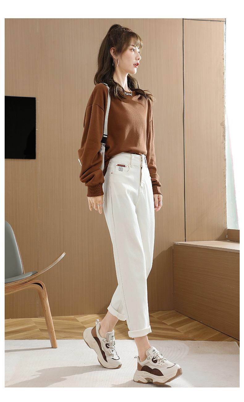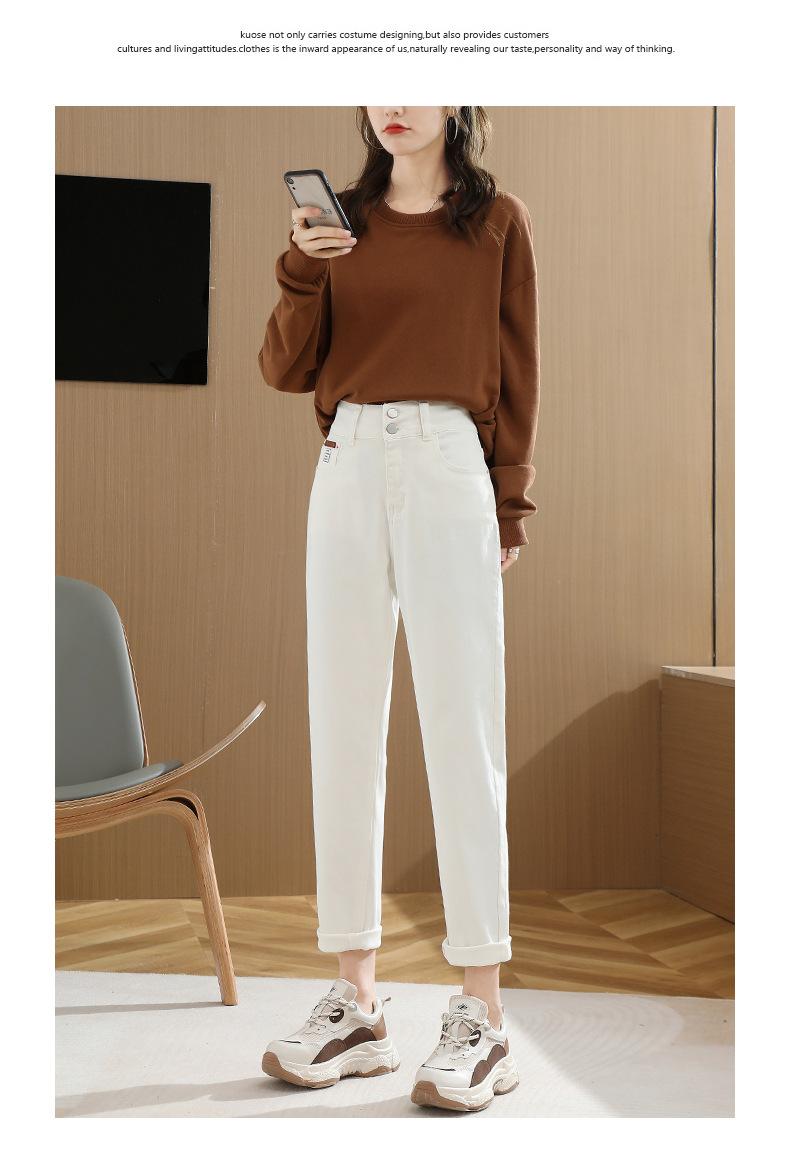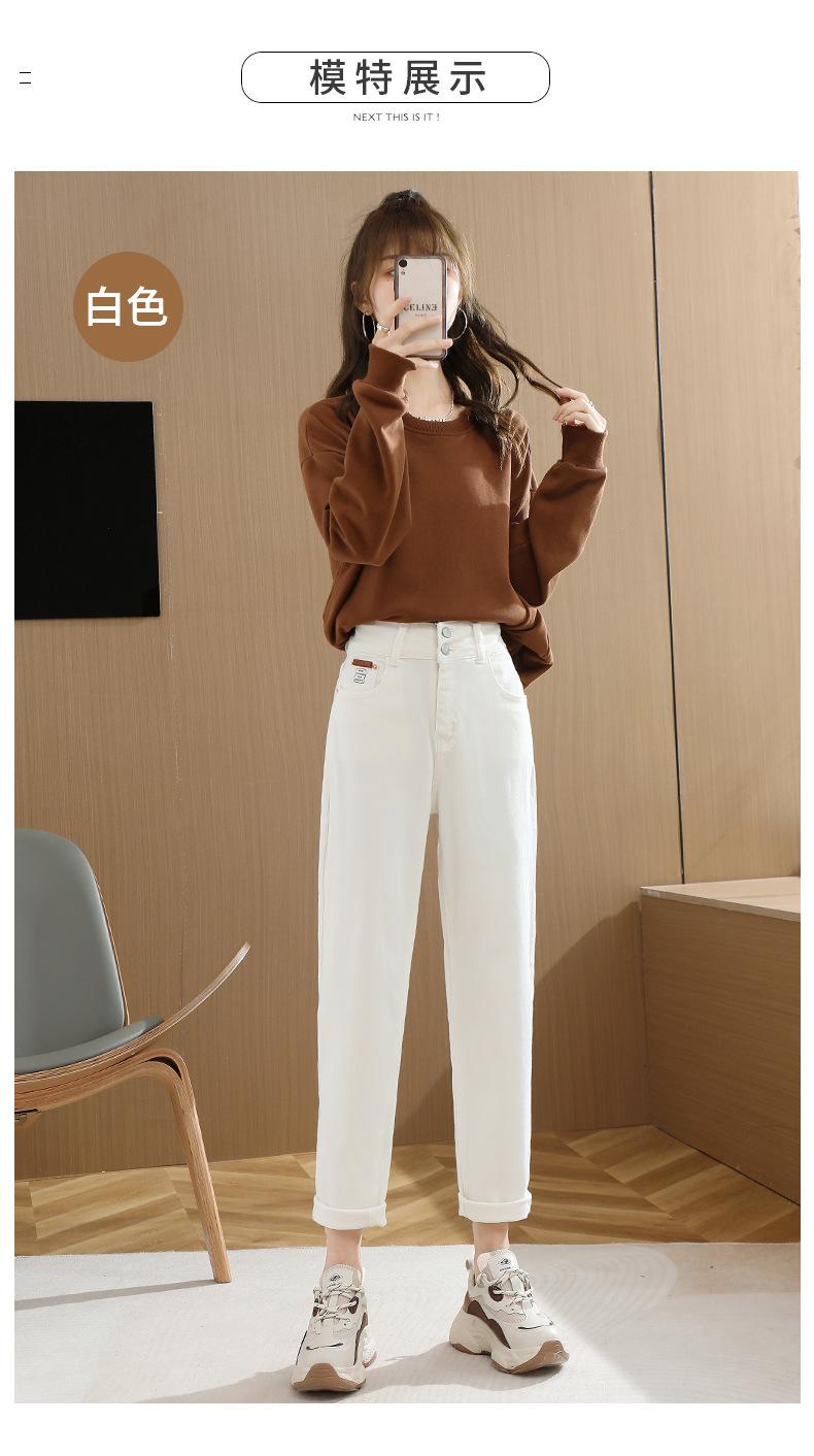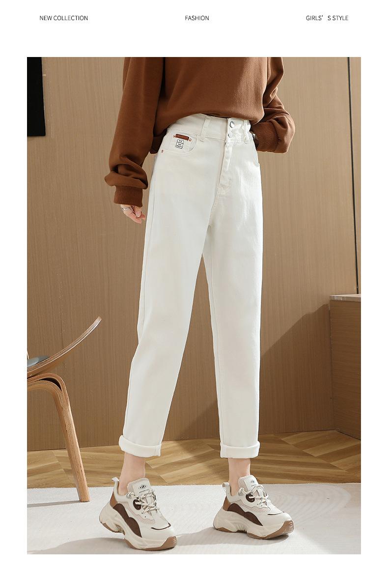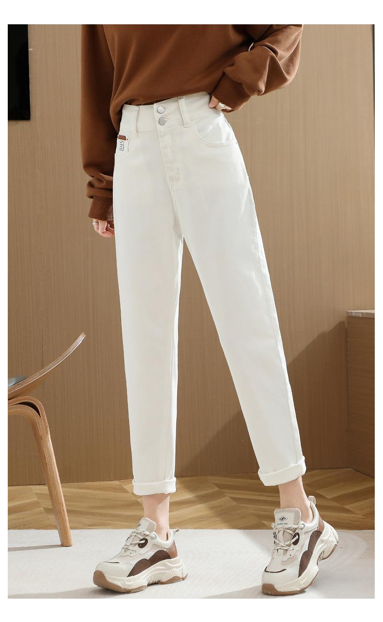 Jeans de tres pruebas para mujer Primavera y Otoño 2024 Nuevos pantalones harén rectos de cintura alta color albaricoque adelgazantes E926