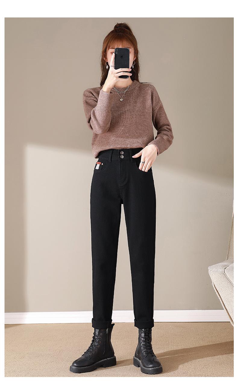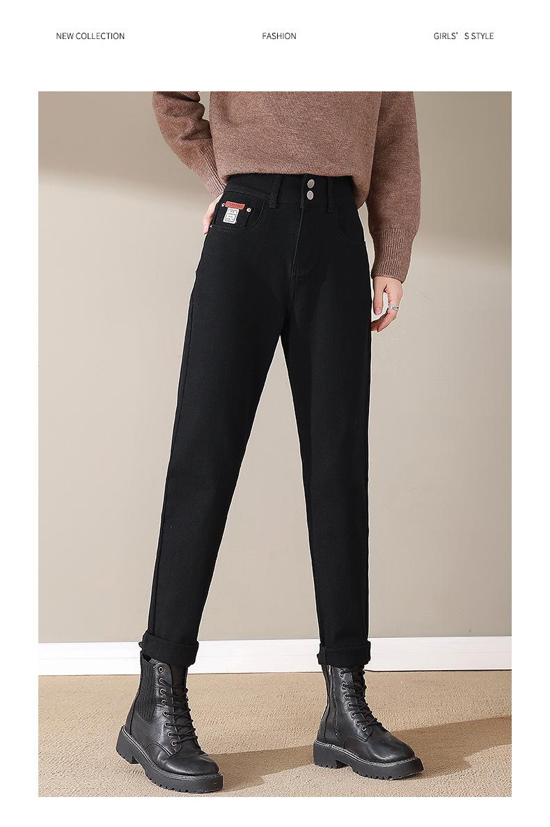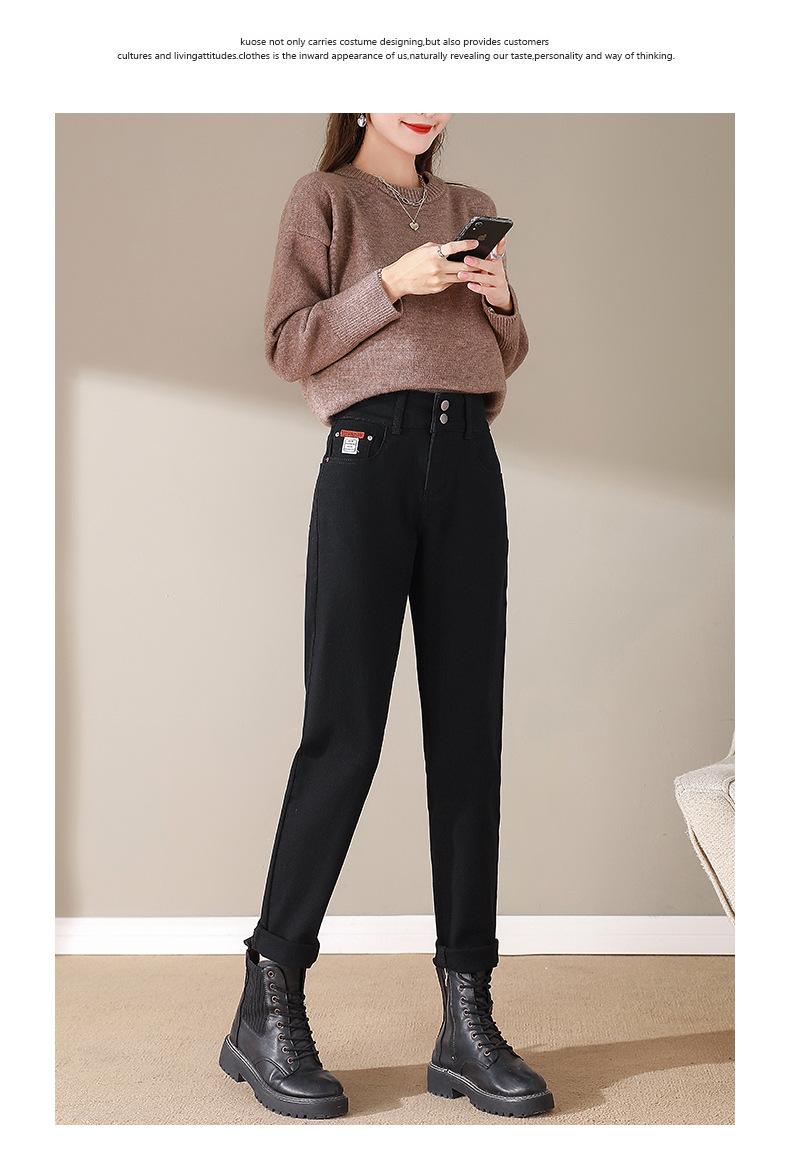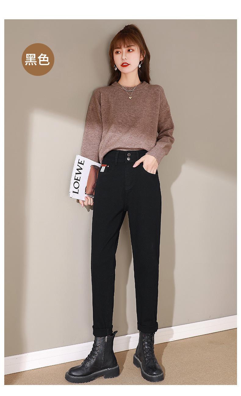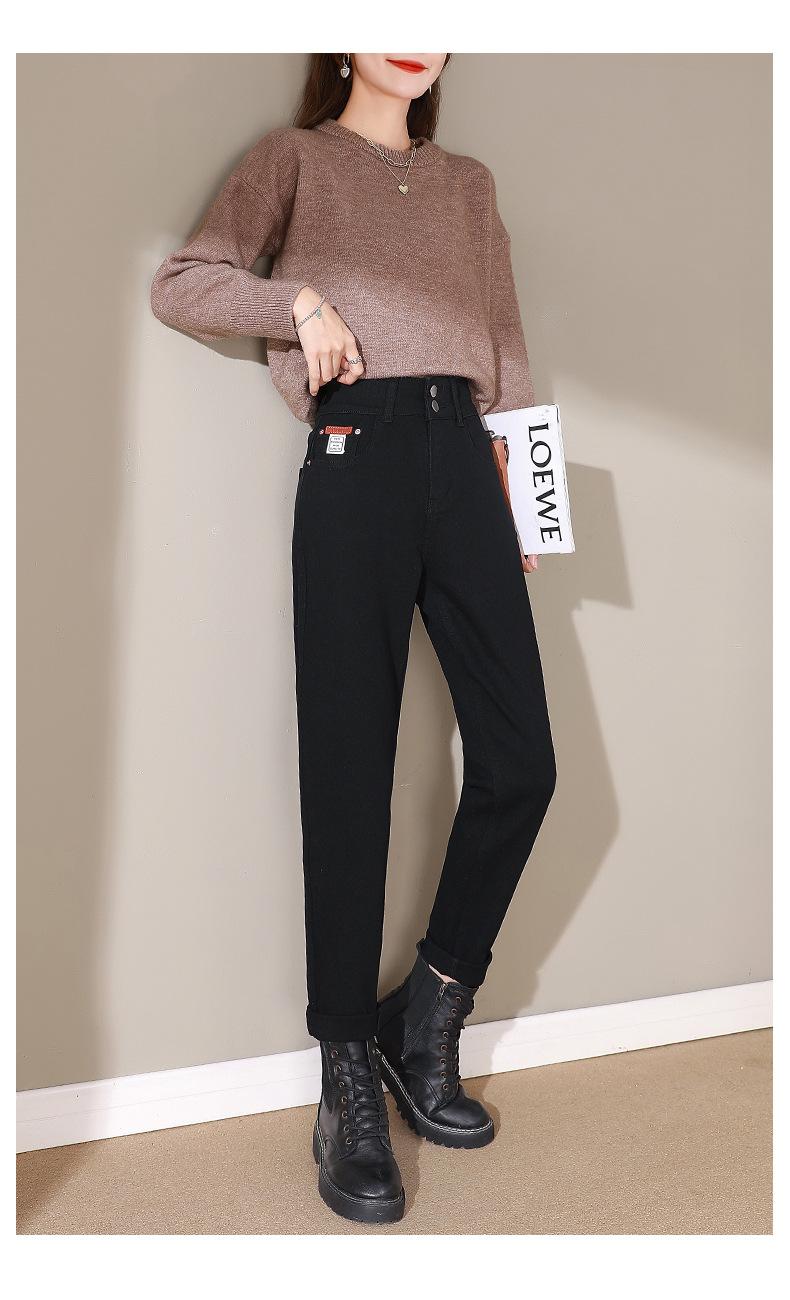 Jeans de tres pruebas para mujer Primavera y Otoño 2024 Nuevos pantalones harén rectos de cintura alta color albaricoque adelgazantes E926