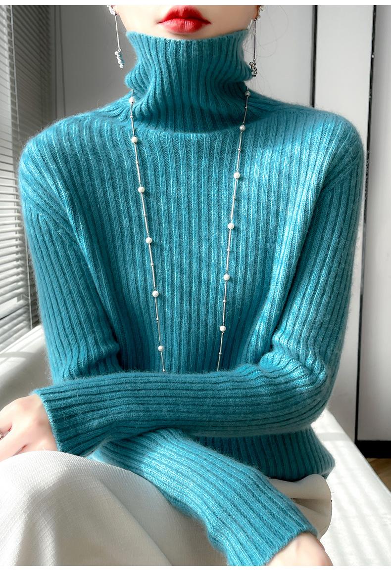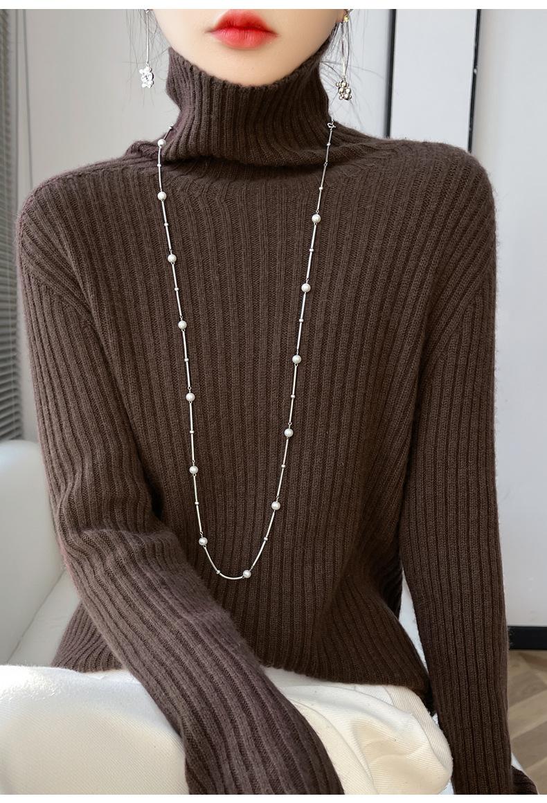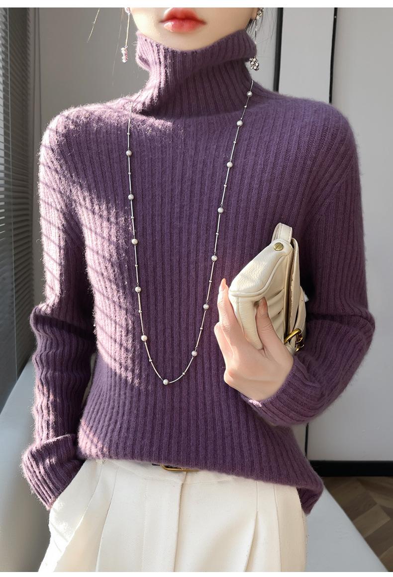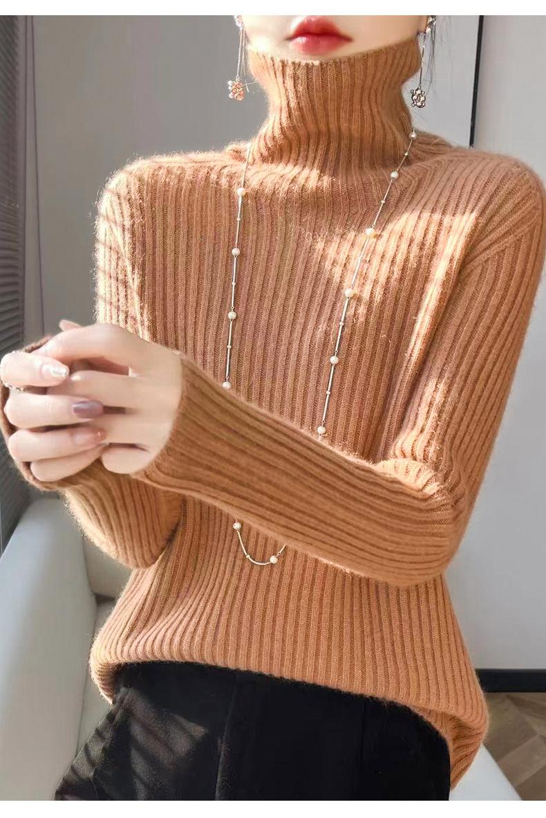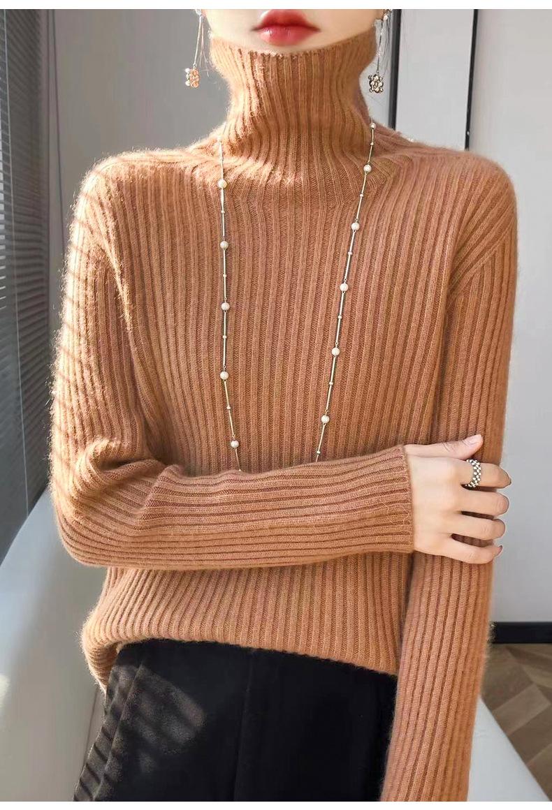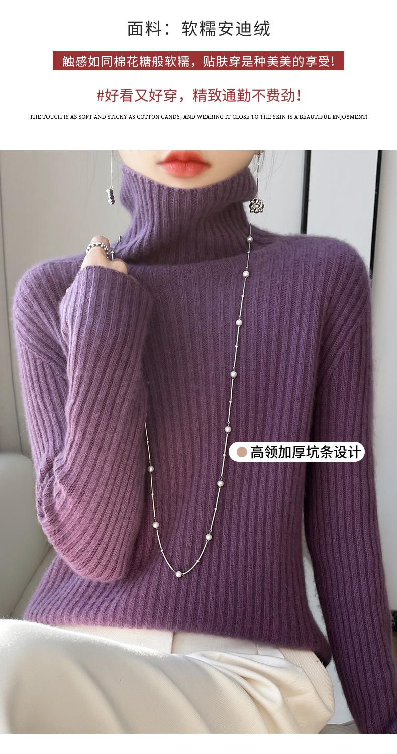 24 Nuevo Andy Terciopelo Tejido Camiseta Base para Mujer Cuello Alto Sisa a Rayas Jersey Manga Larga Color Sólido Casual Suelto Grueso Base