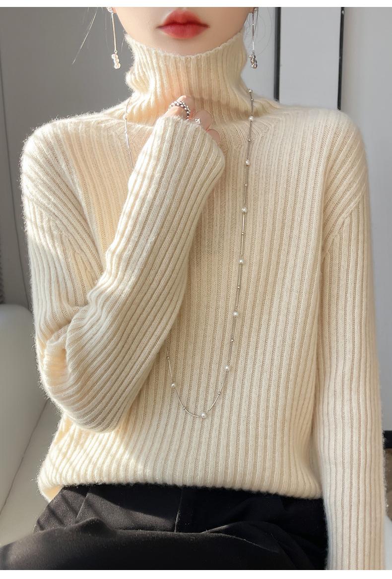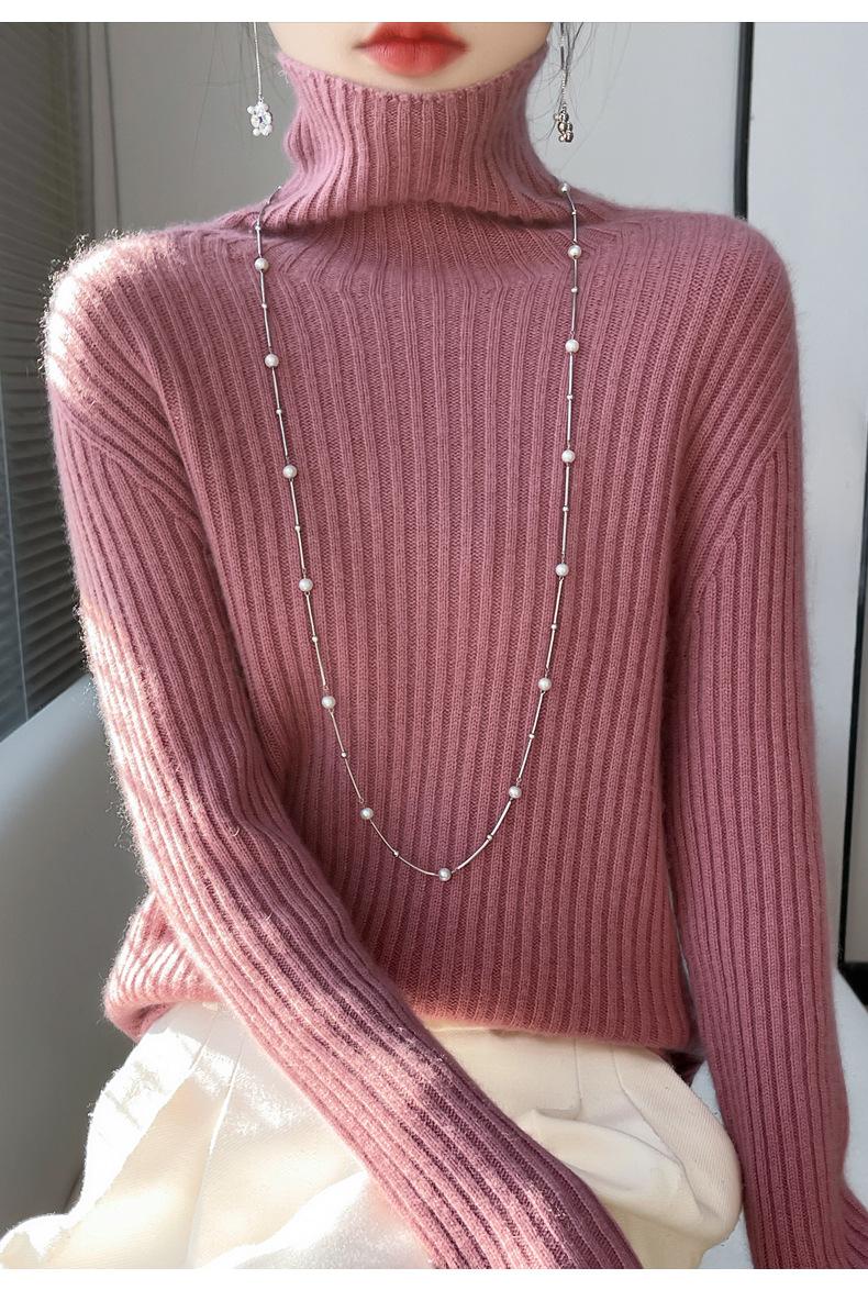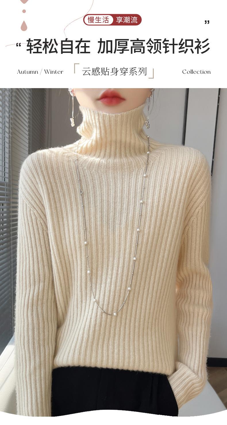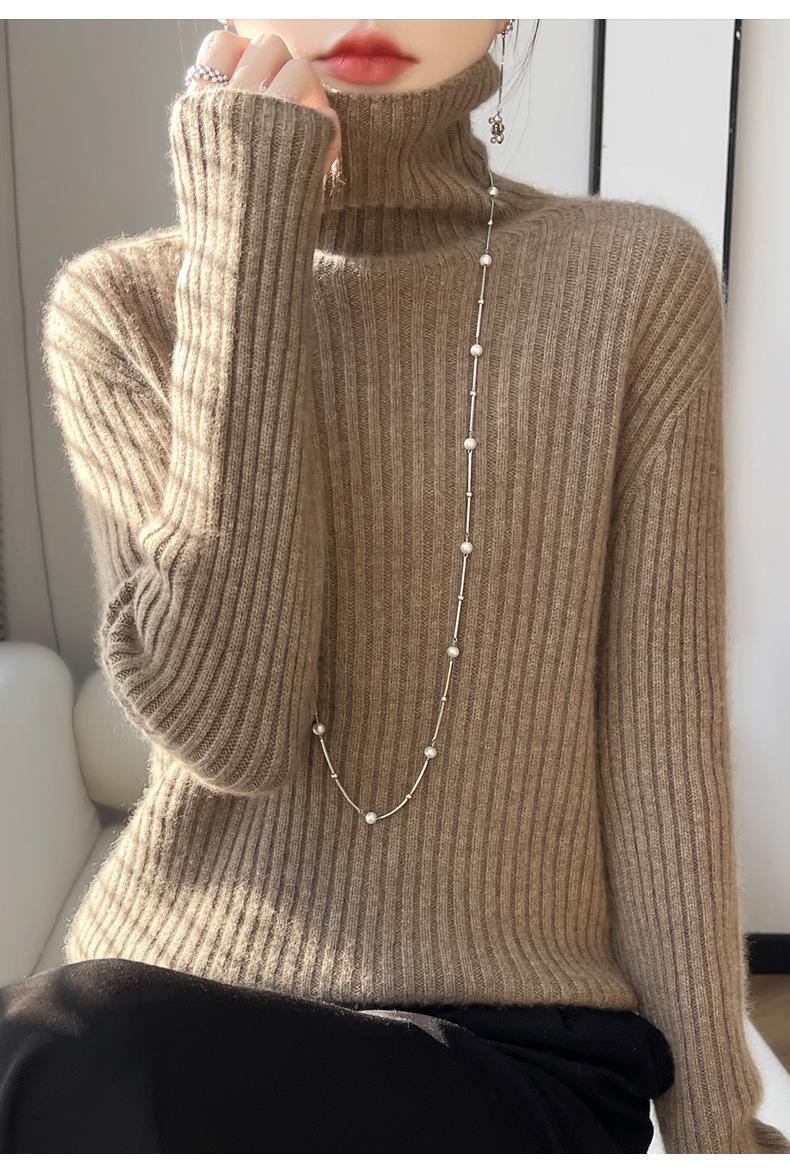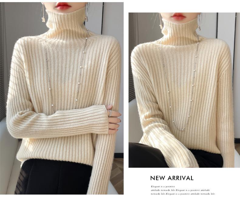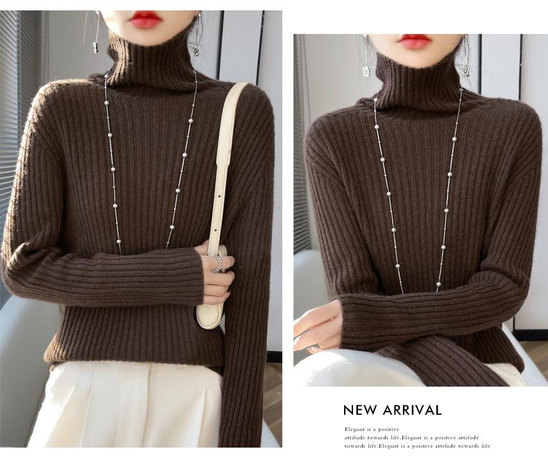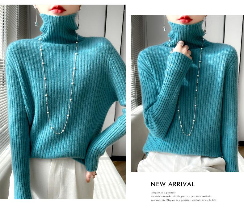 24 Nuevo Andy Terciopelo Tejido Camiseta Base para Mujer Cuello Alto Sisa a Rayas Jersey Manga Larga Color Sólido Casual Suelto Grueso Base