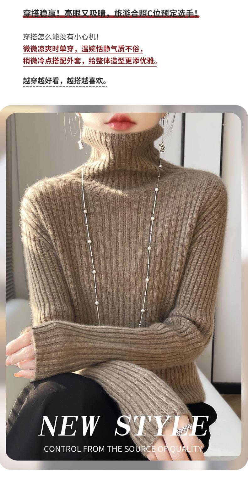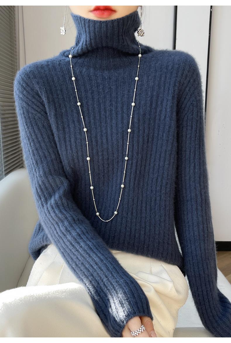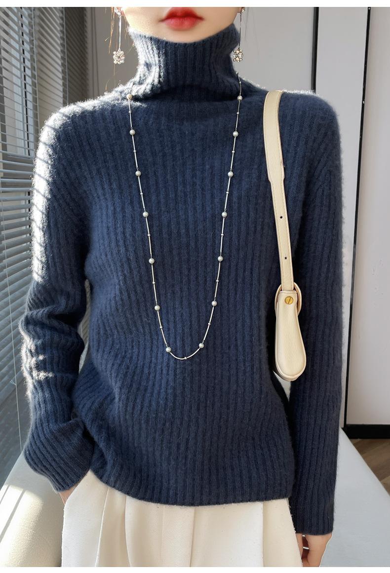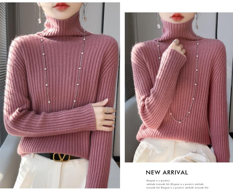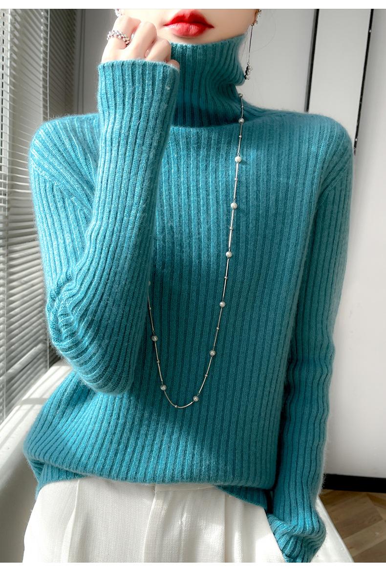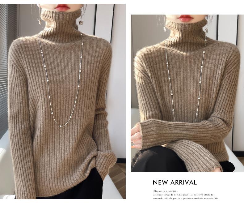 24 Nuevo Andy Terciopelo Tejido Camiseta Base para Mujer Cuello Alto Sisa a Rayas Jersey Manga Larga Color Sólido Casual Suelto Grueso Base