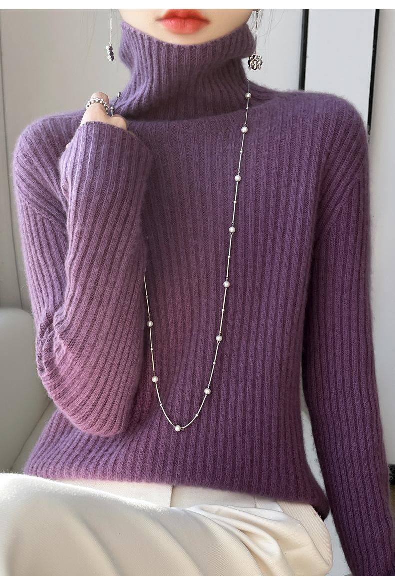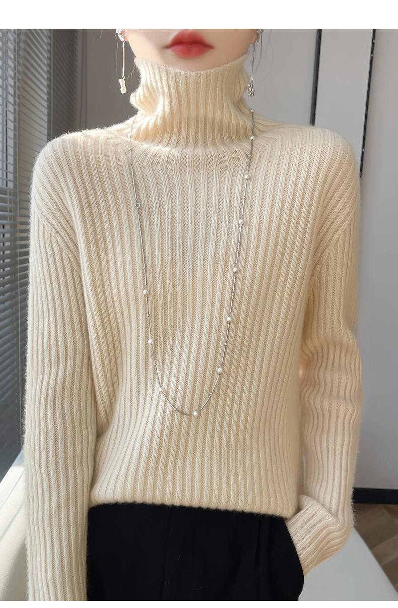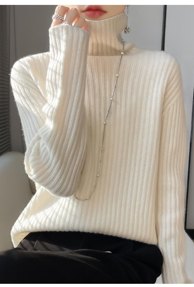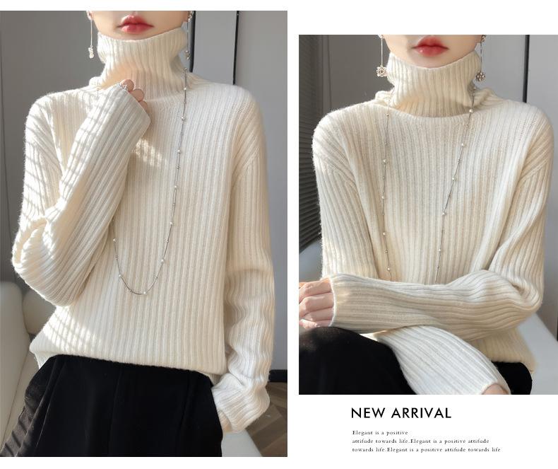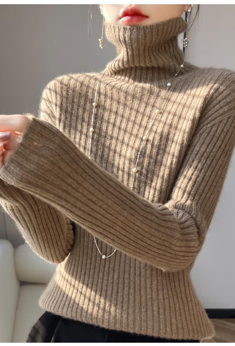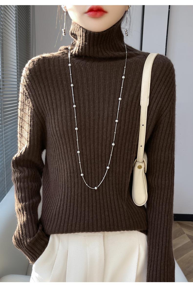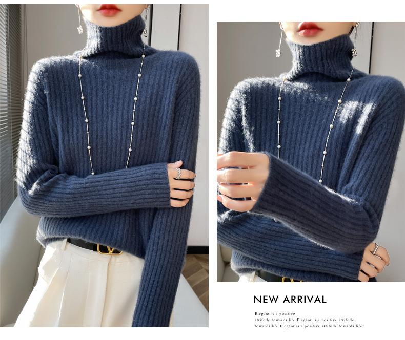 24 Nuevo Andy Terciopelo Tejido Camiseta Base para Mujer Cuello Alto Sisa a Rayas Jersey Manga Larga Color Sólido Casual Suelto Grueso Base