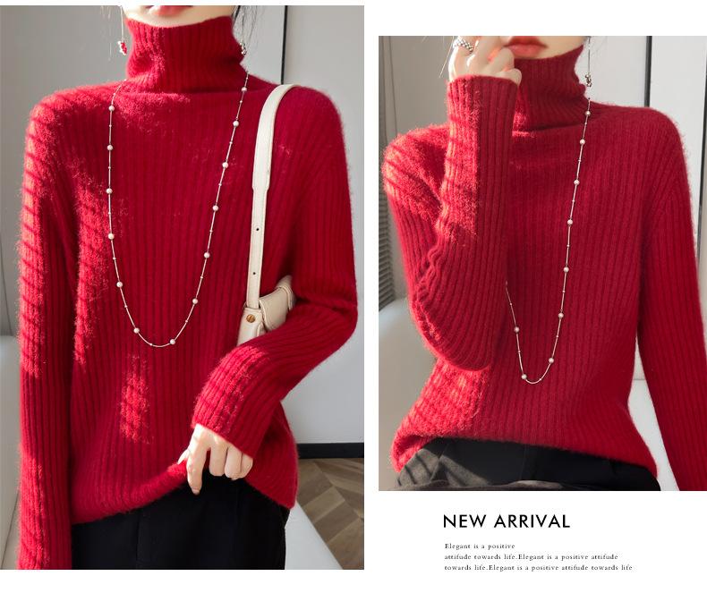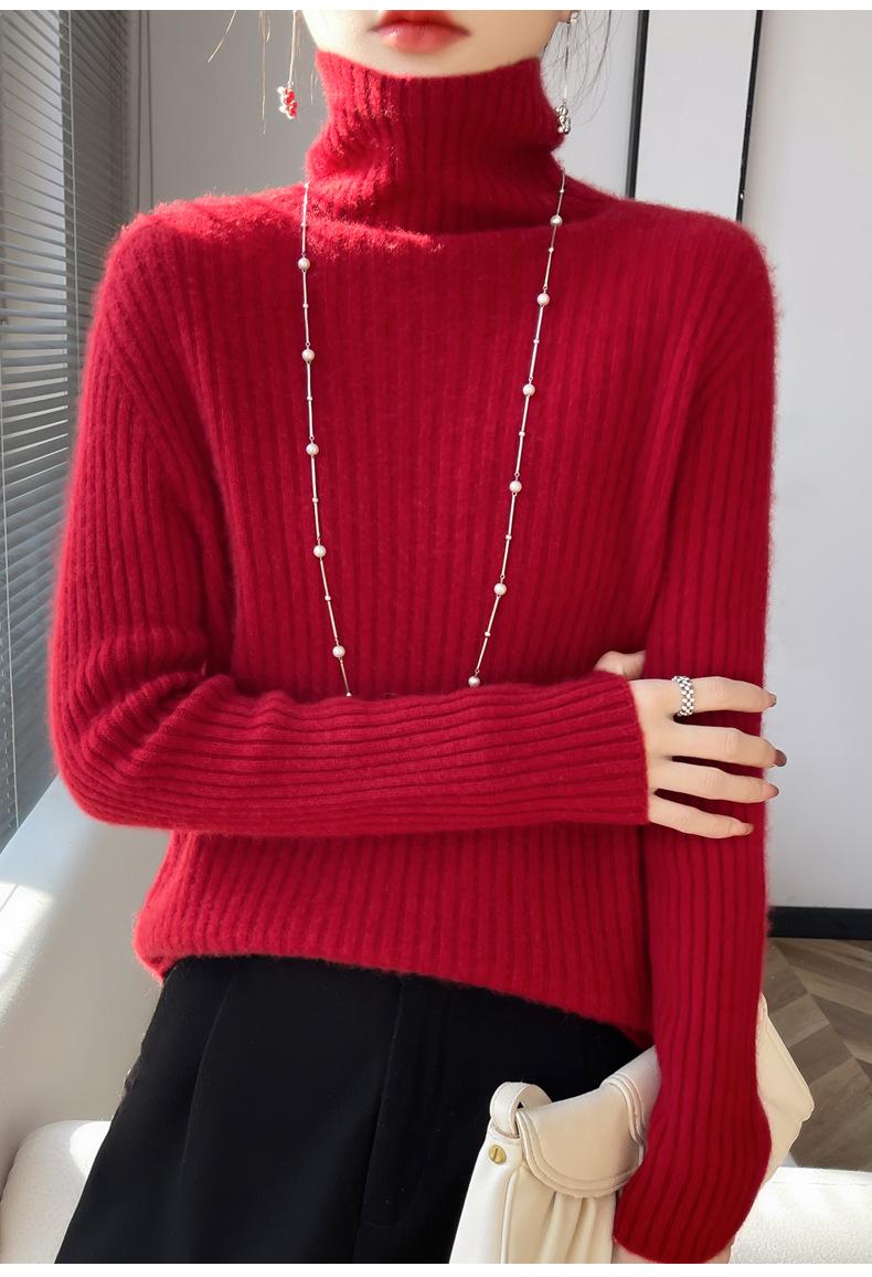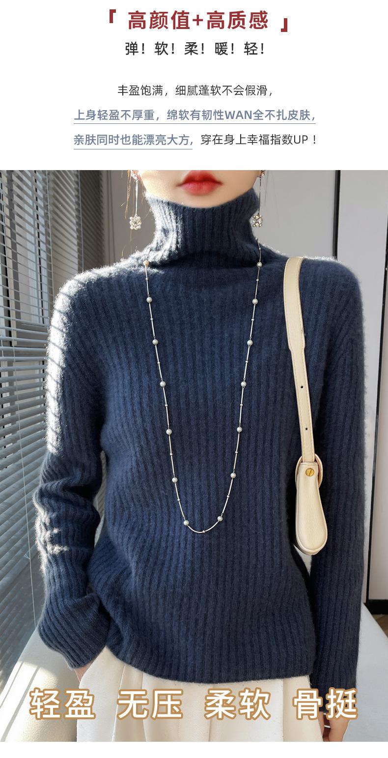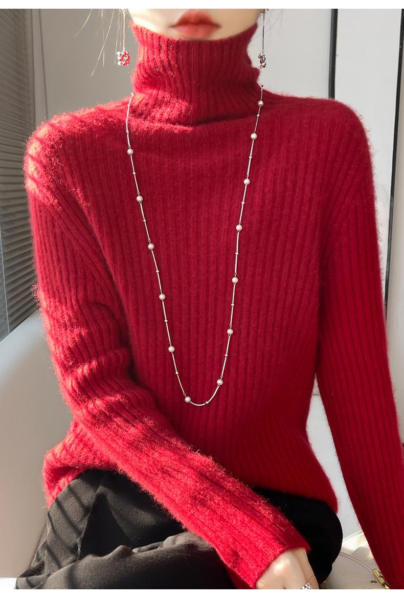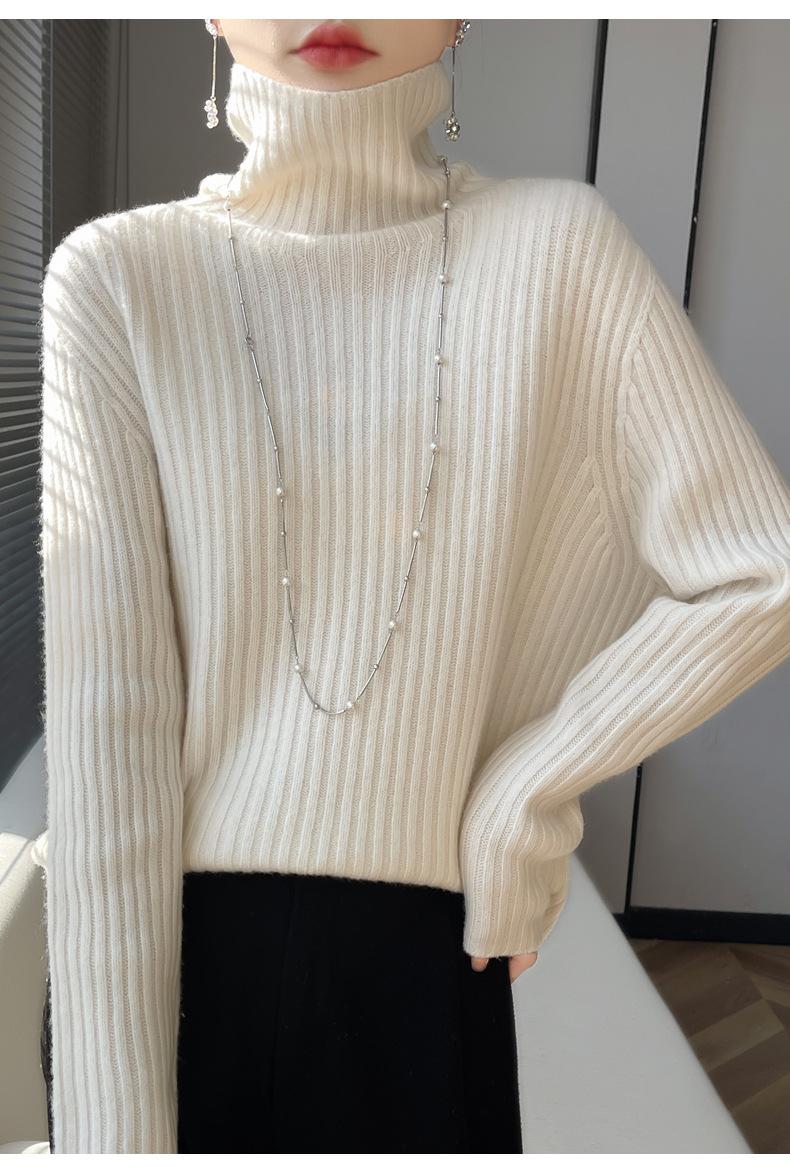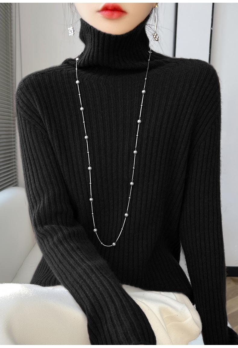 24 Nuevo Andy Terciopelo Tejido Camiseta Base para Mujer Cuello Alto Sisa a Rayas Jersey Manga Larga Color Sólido Casual Suelto Grueso Base