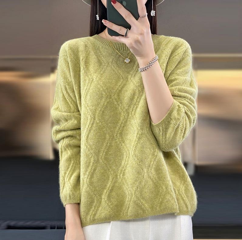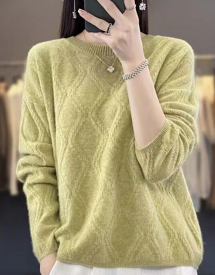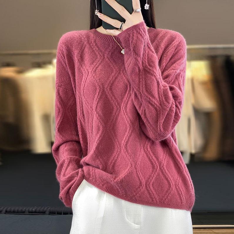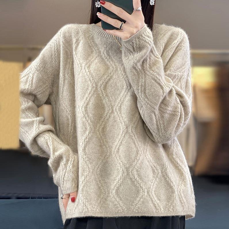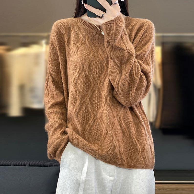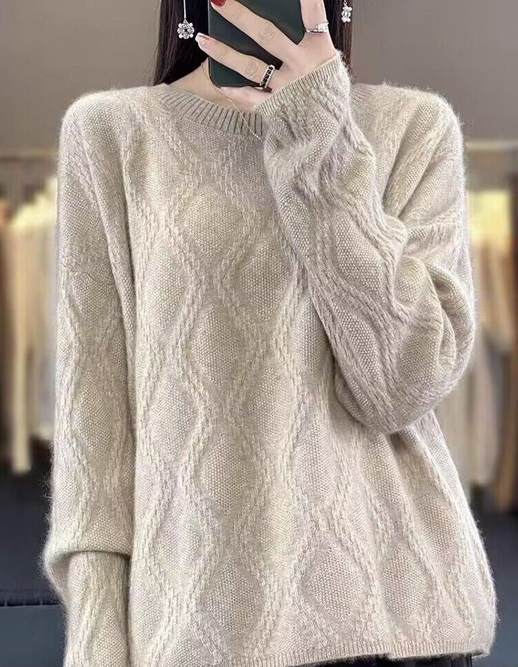 Nuevo Suéter de Punto de Cuello Redondo para Mujer Otoño/Invierno 2023, Suéter Pulóver de Cable de Diamante Estilo Lazy Top Versátil Tendencia